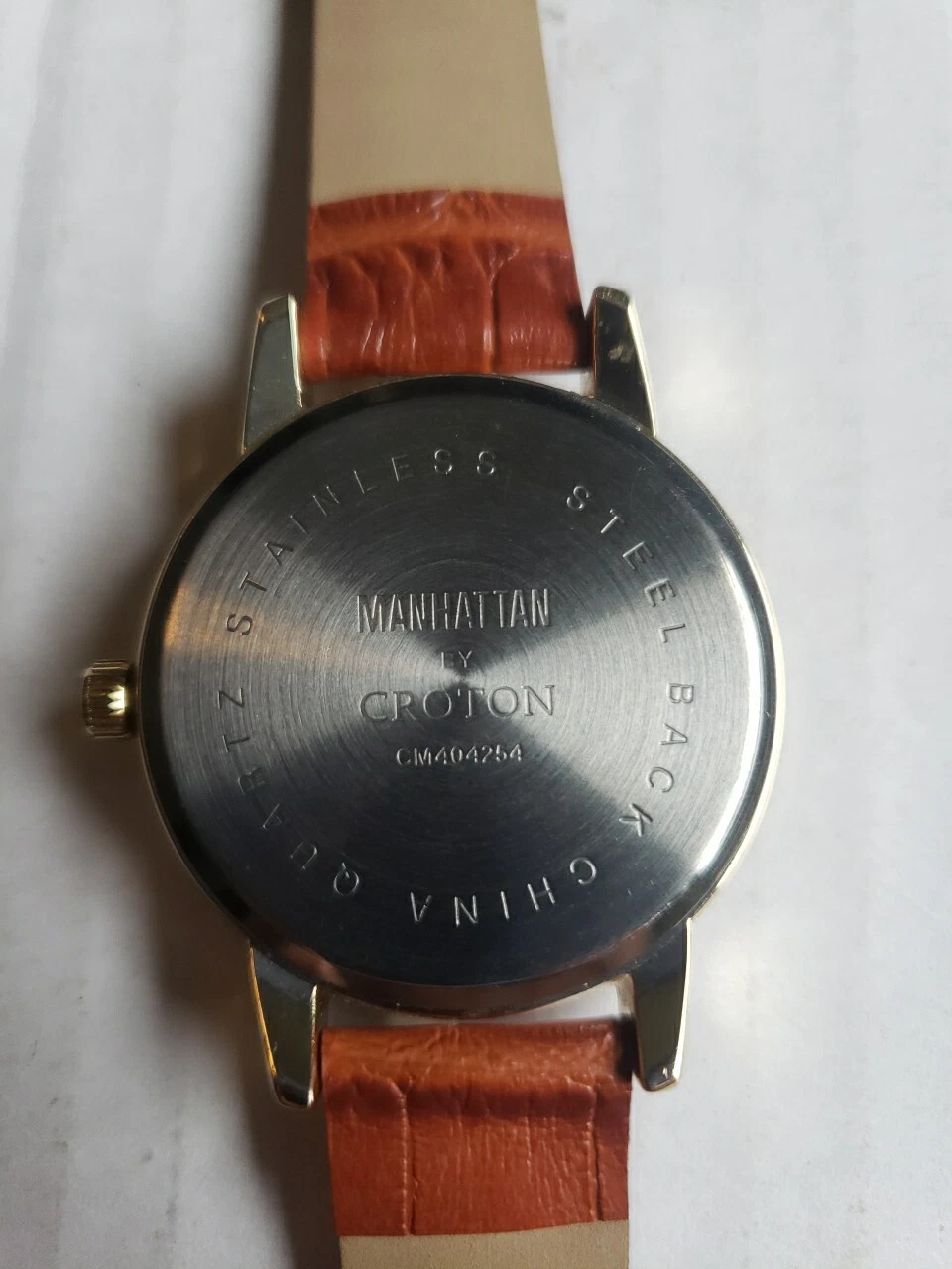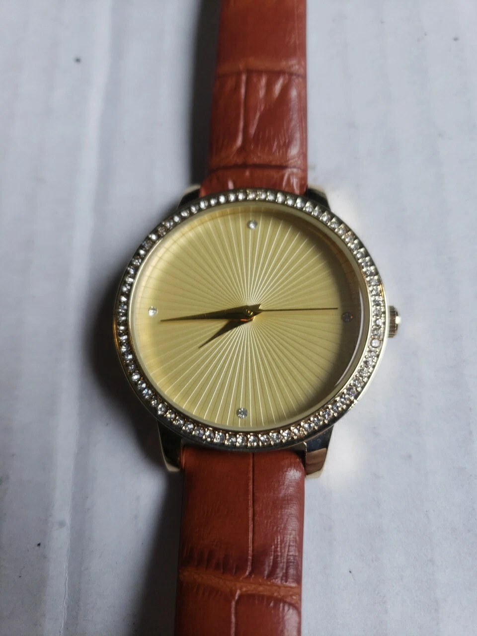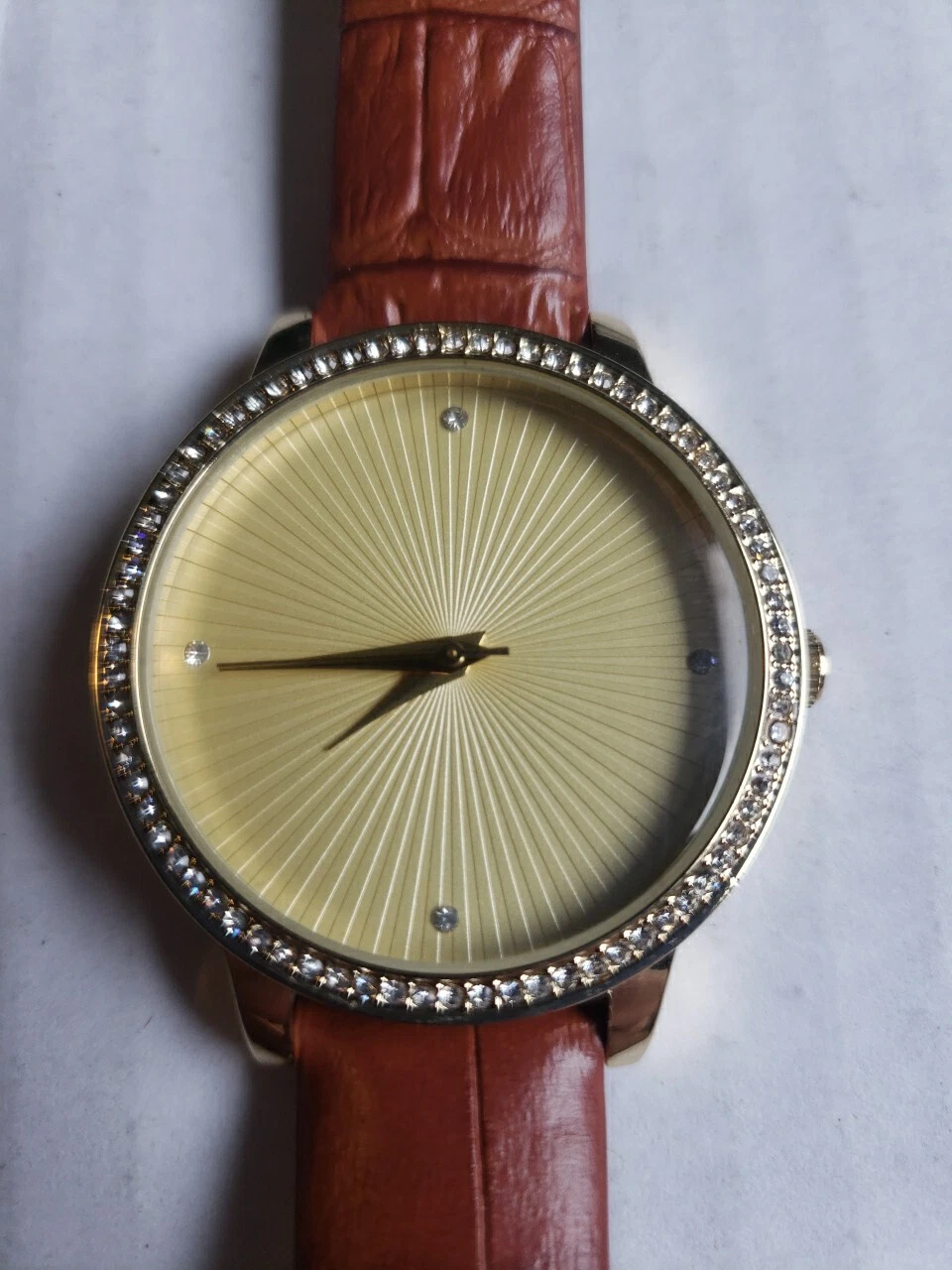 ✅ Manhattan By Croton Orange Goldtone Jeweled Ladies Watch New Battery Read!