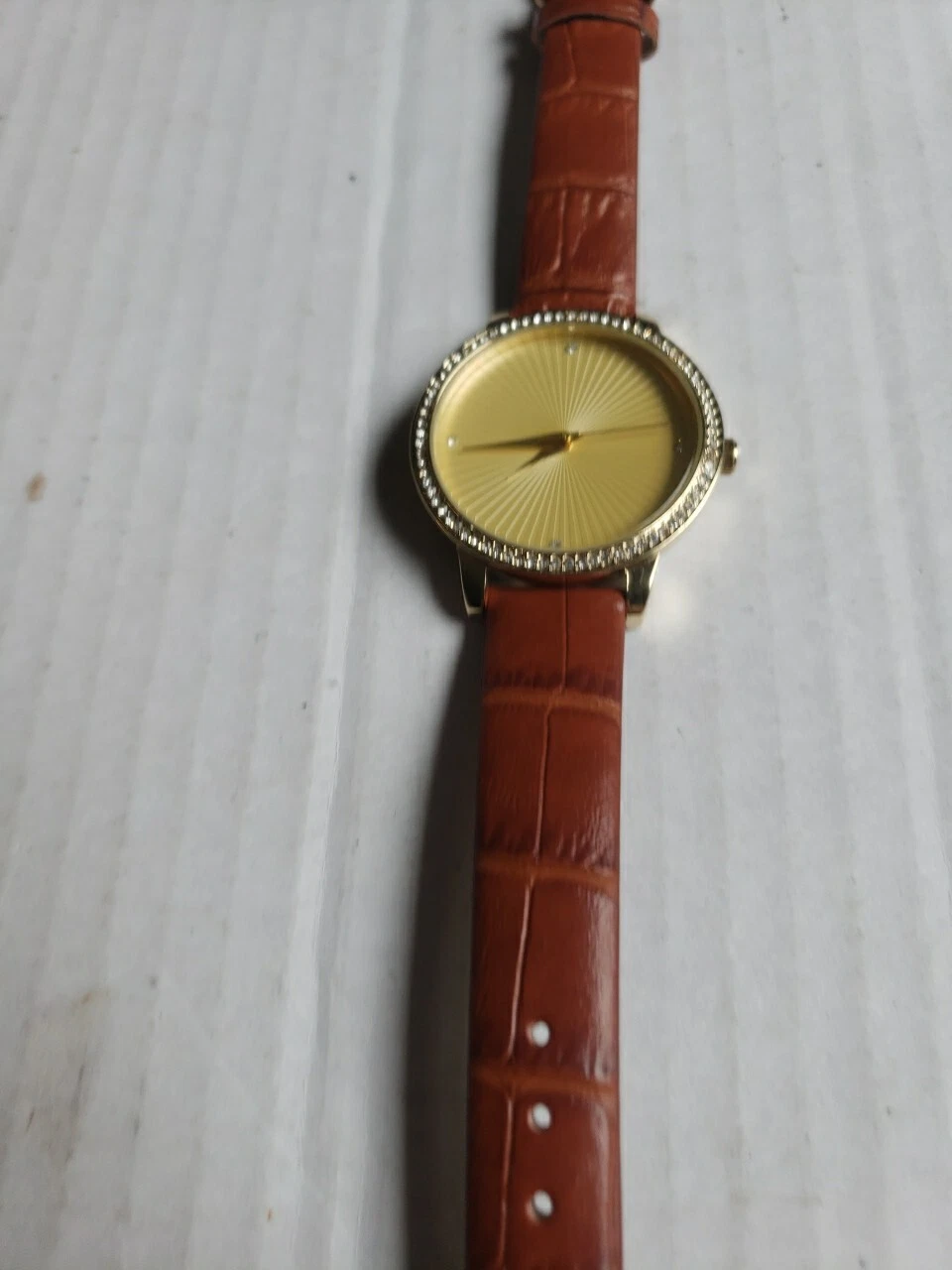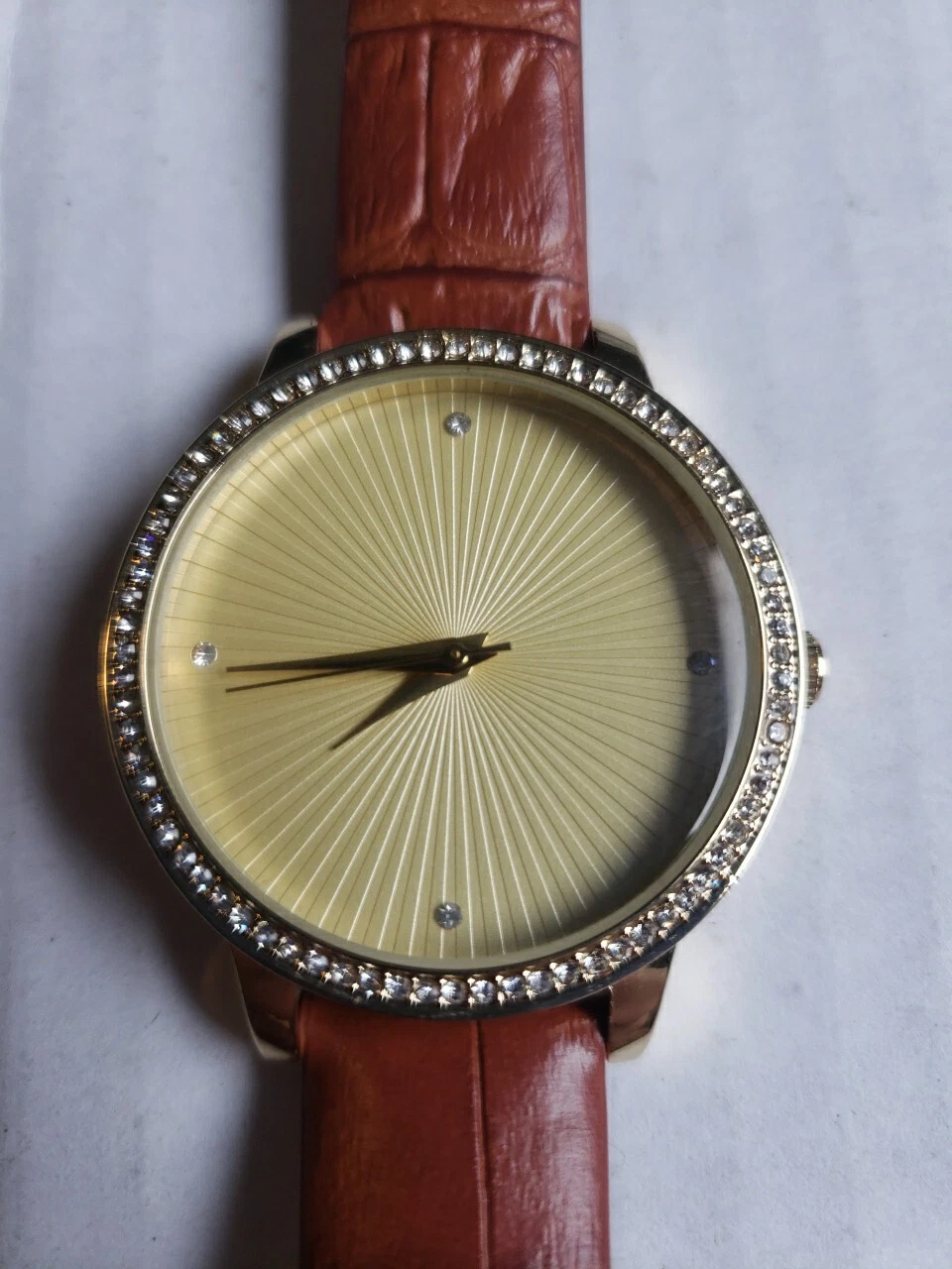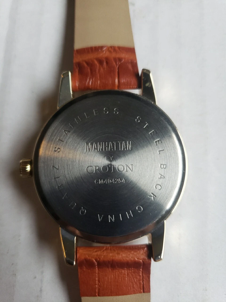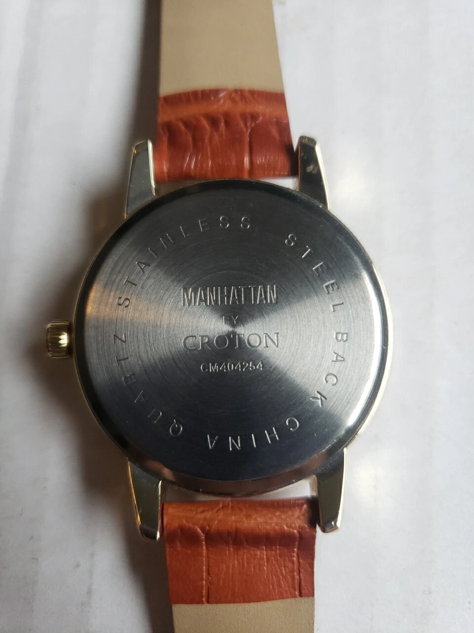 ✅ Manhattan By Croton Orange Goldtone Jeweled Ladies Watch New Battery Read!