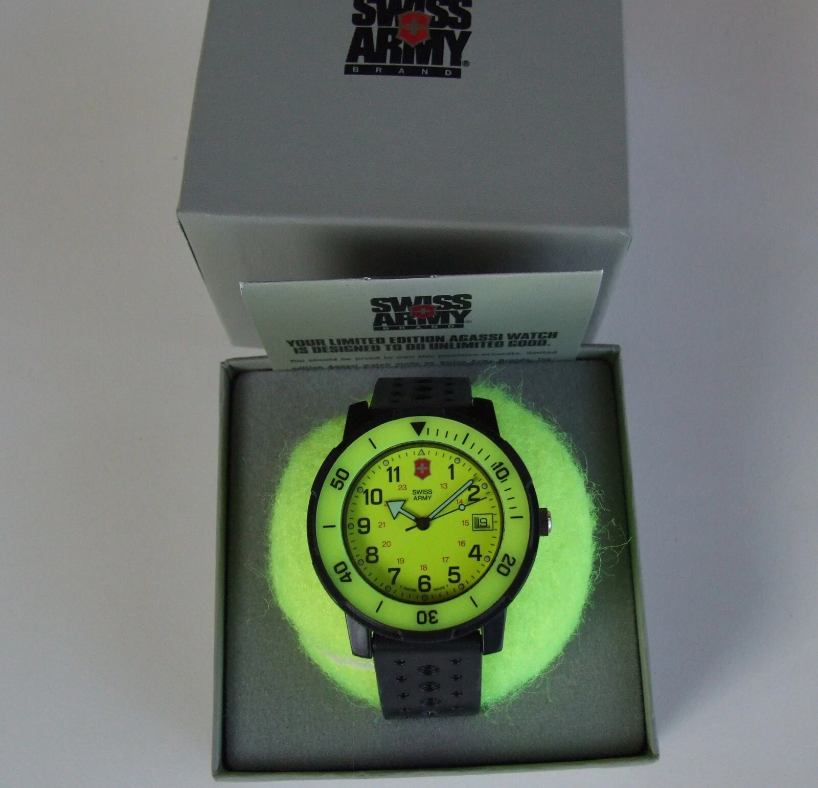 NOS SWISS ARMY~Men's Andre Agassi Pro STRIKER II 2 Tennis Ball Yellow~LIMITED ED
