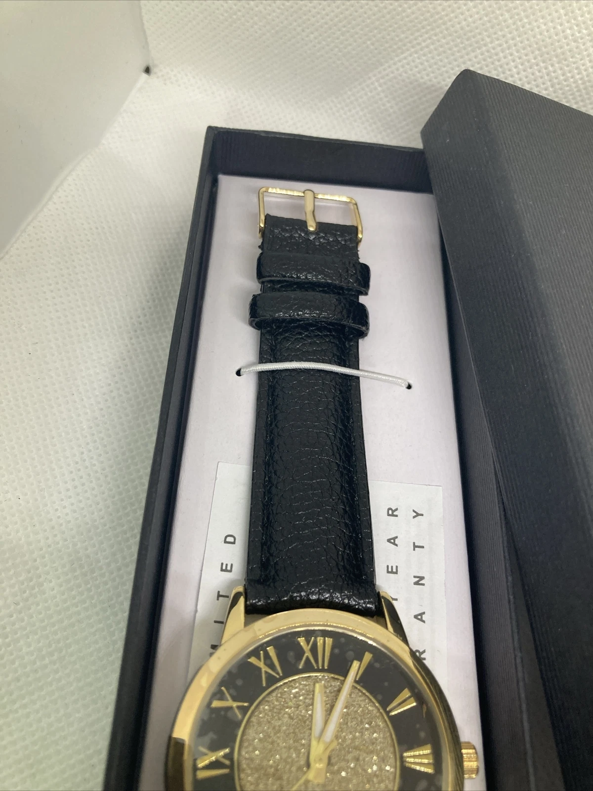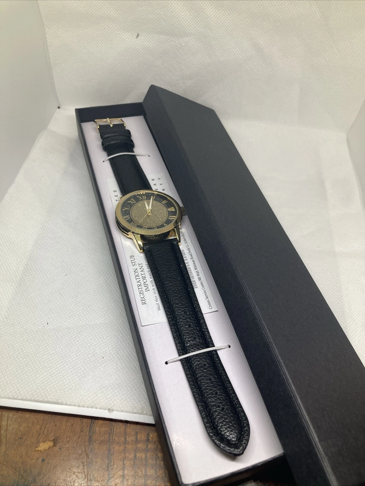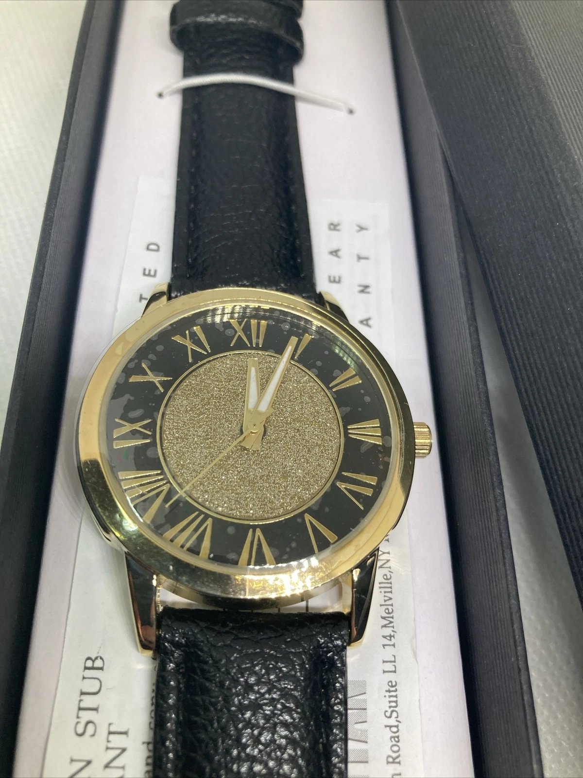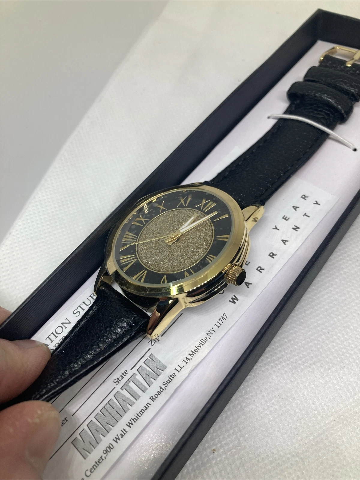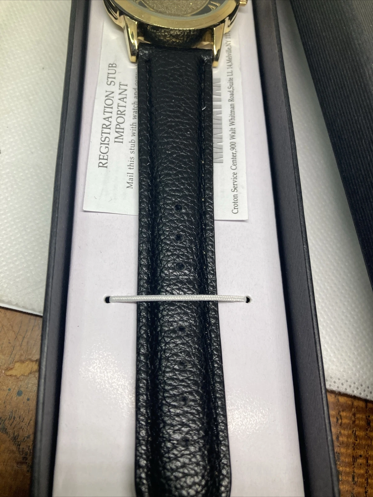 New Boxed Manhattan By Croton Black Goldtone Jeweled Ladies Watch