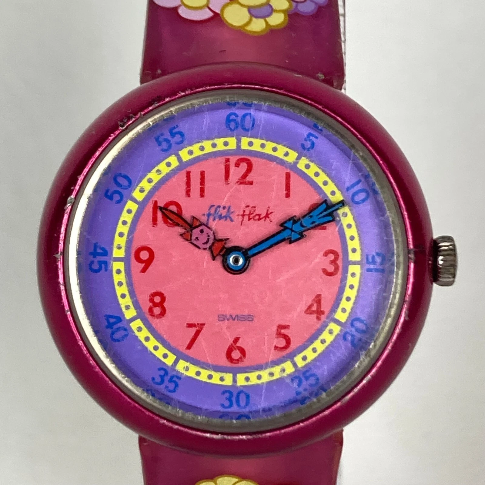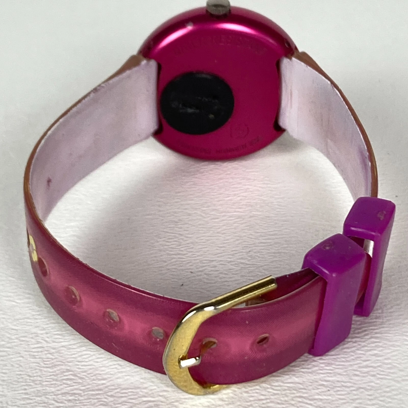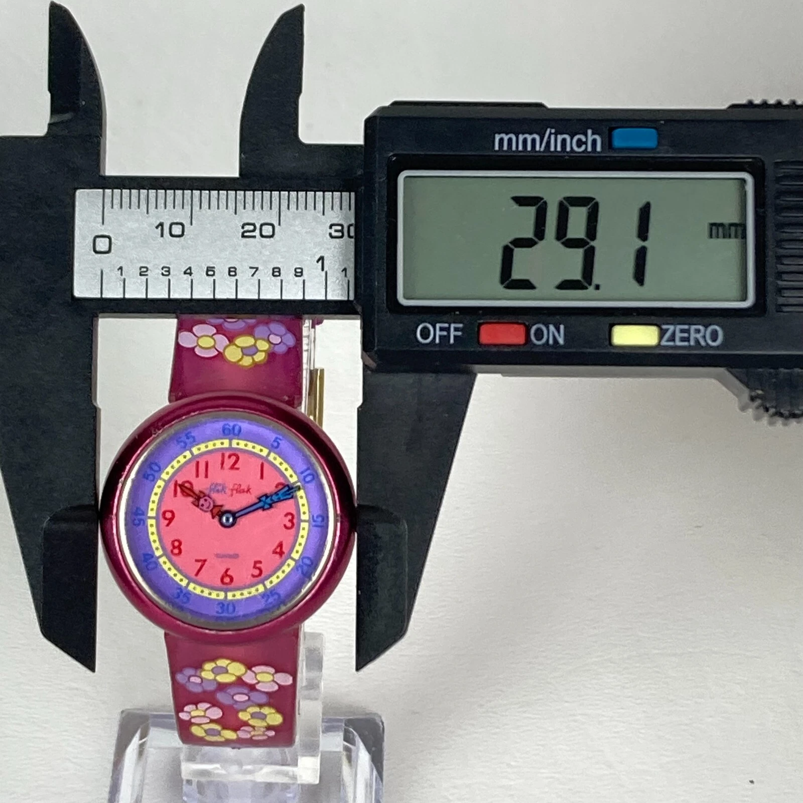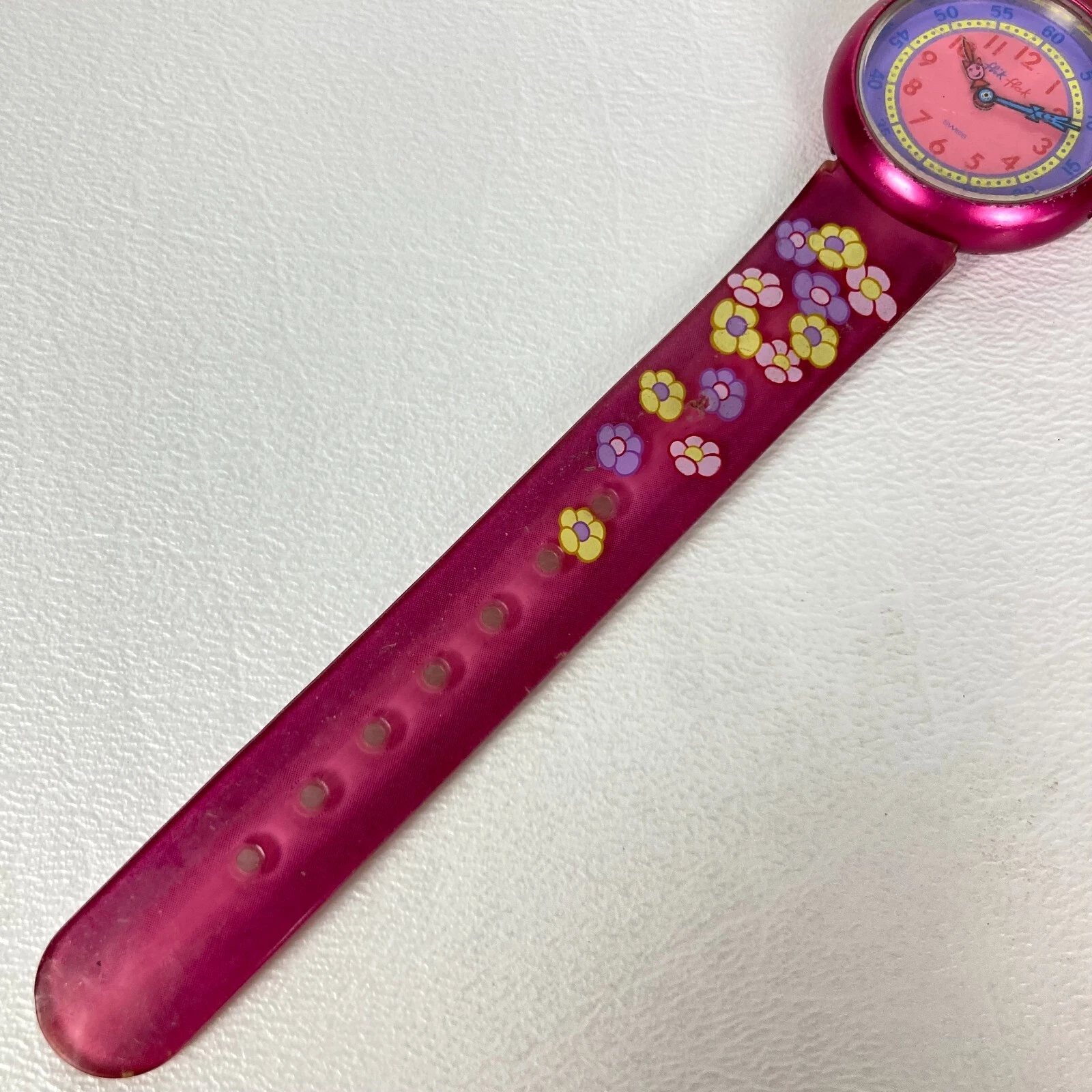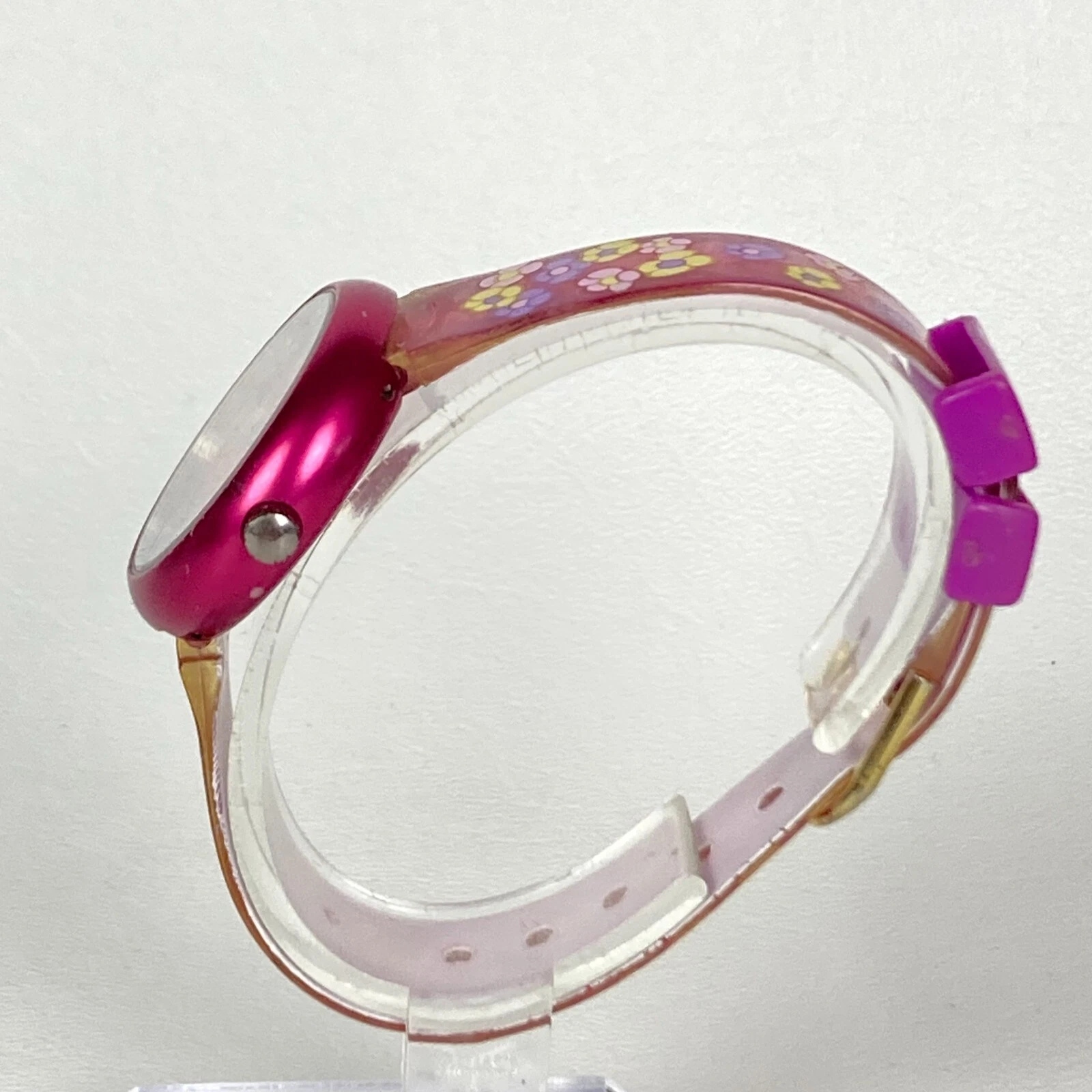 Vtg Flik Flak Swatch Watch Kids Youth Pink Purple Flowers New Battery 7.5" 1988