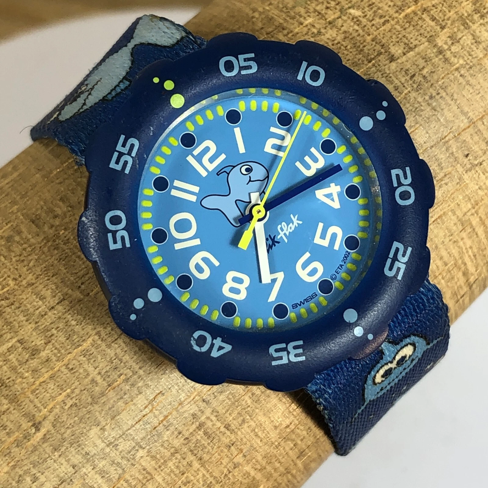 ETA 2002 Swiss Made Flik Flak Toy Watch Quartz Blue Strap Case Fish