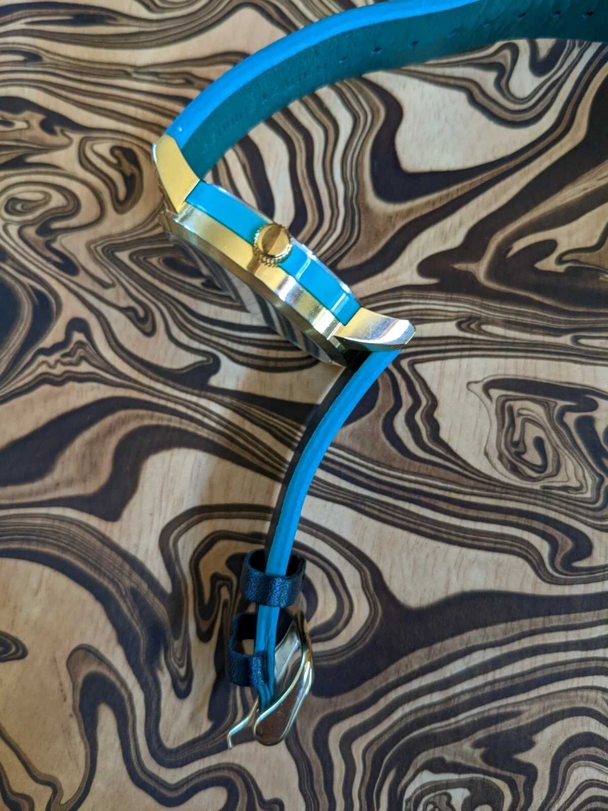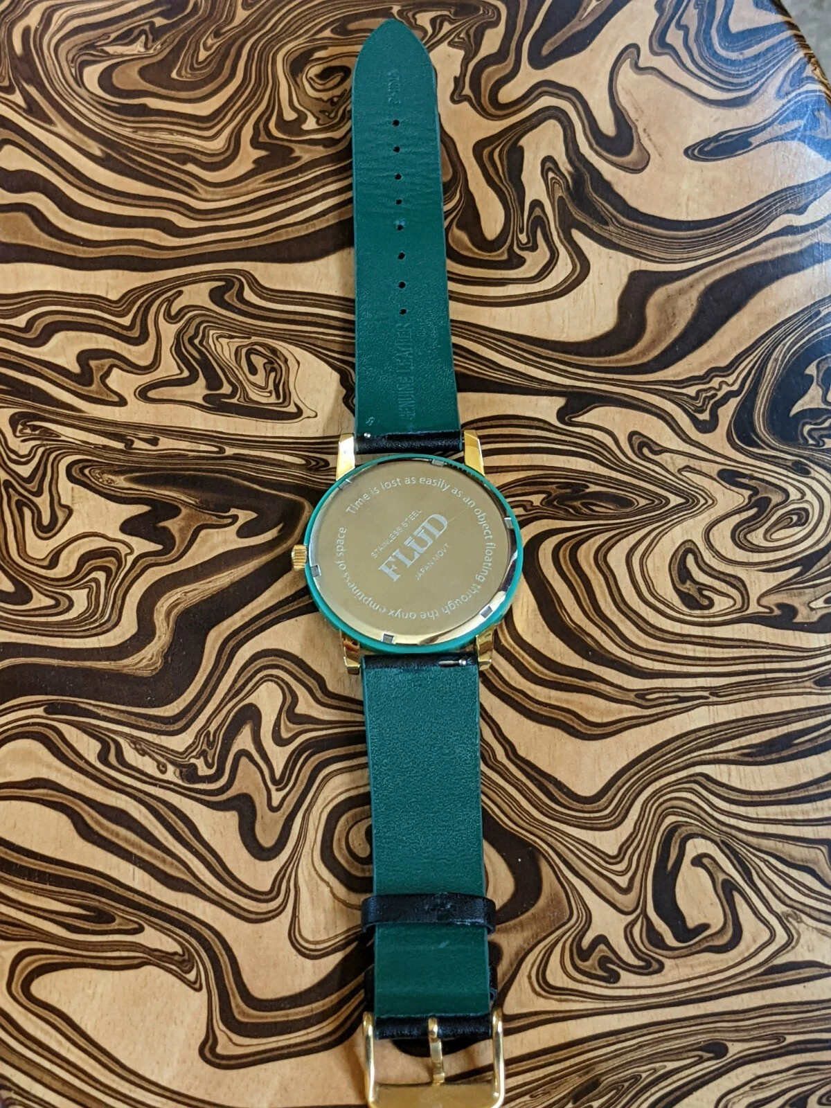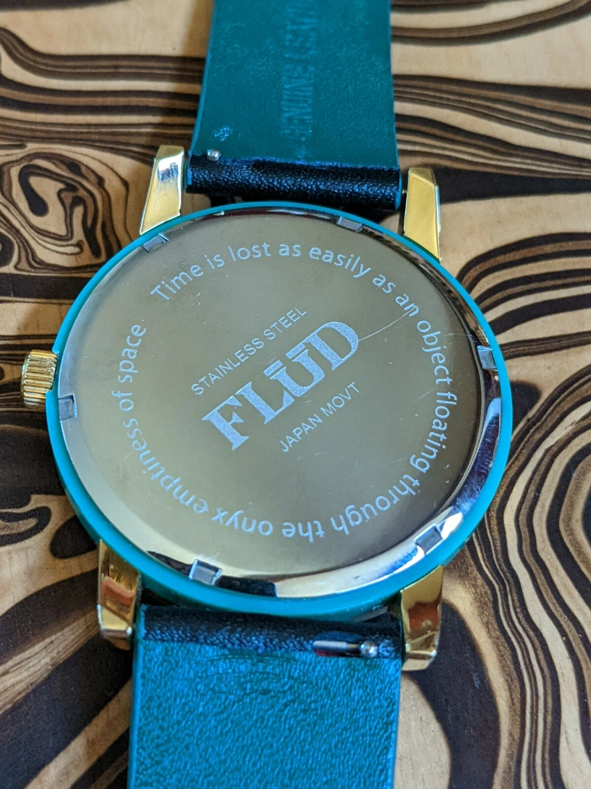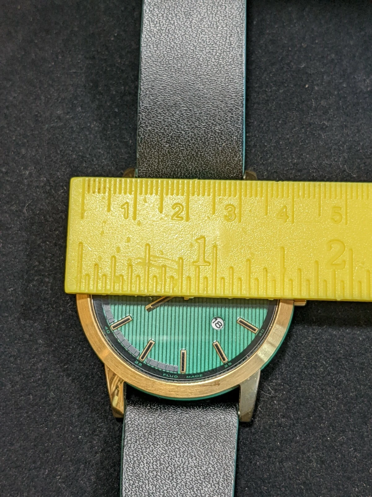 FLUD Green Face Watch, second hand, date window, stainless steel, japan mvmt