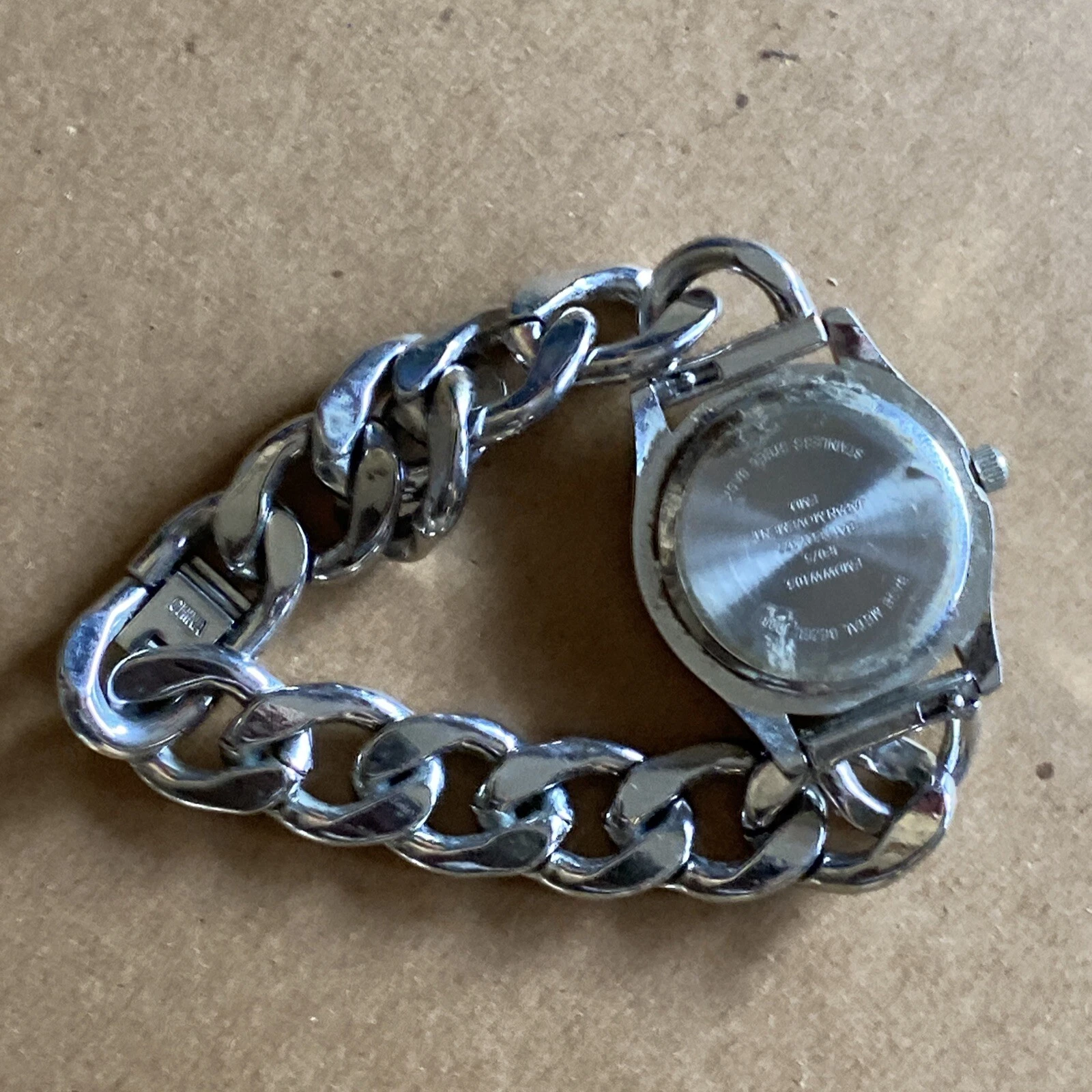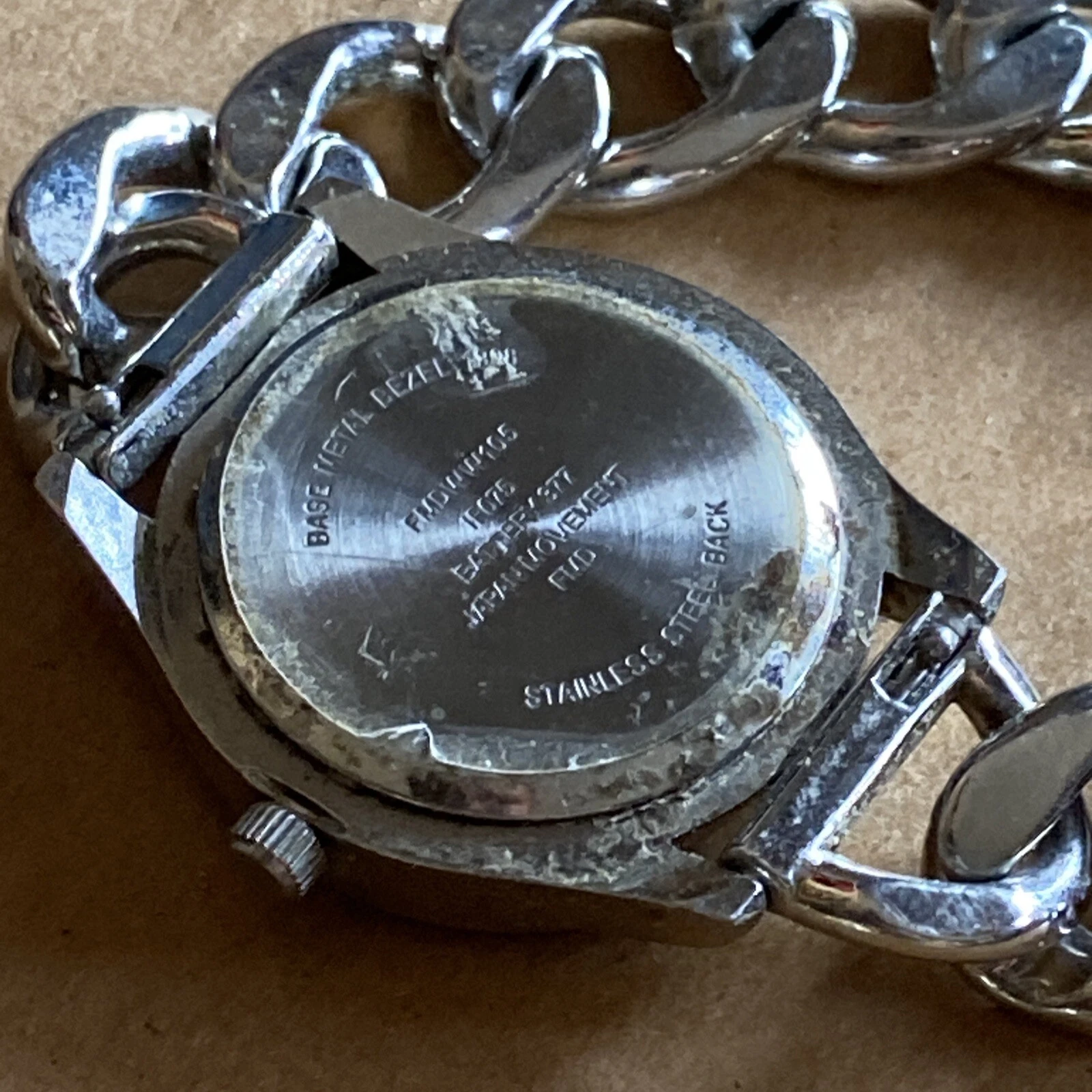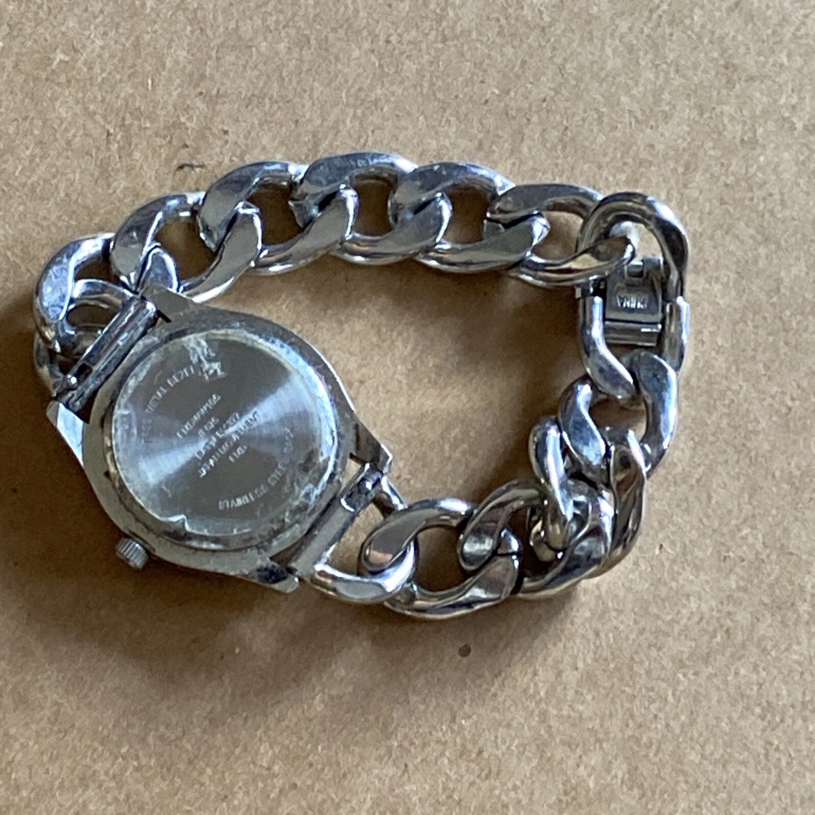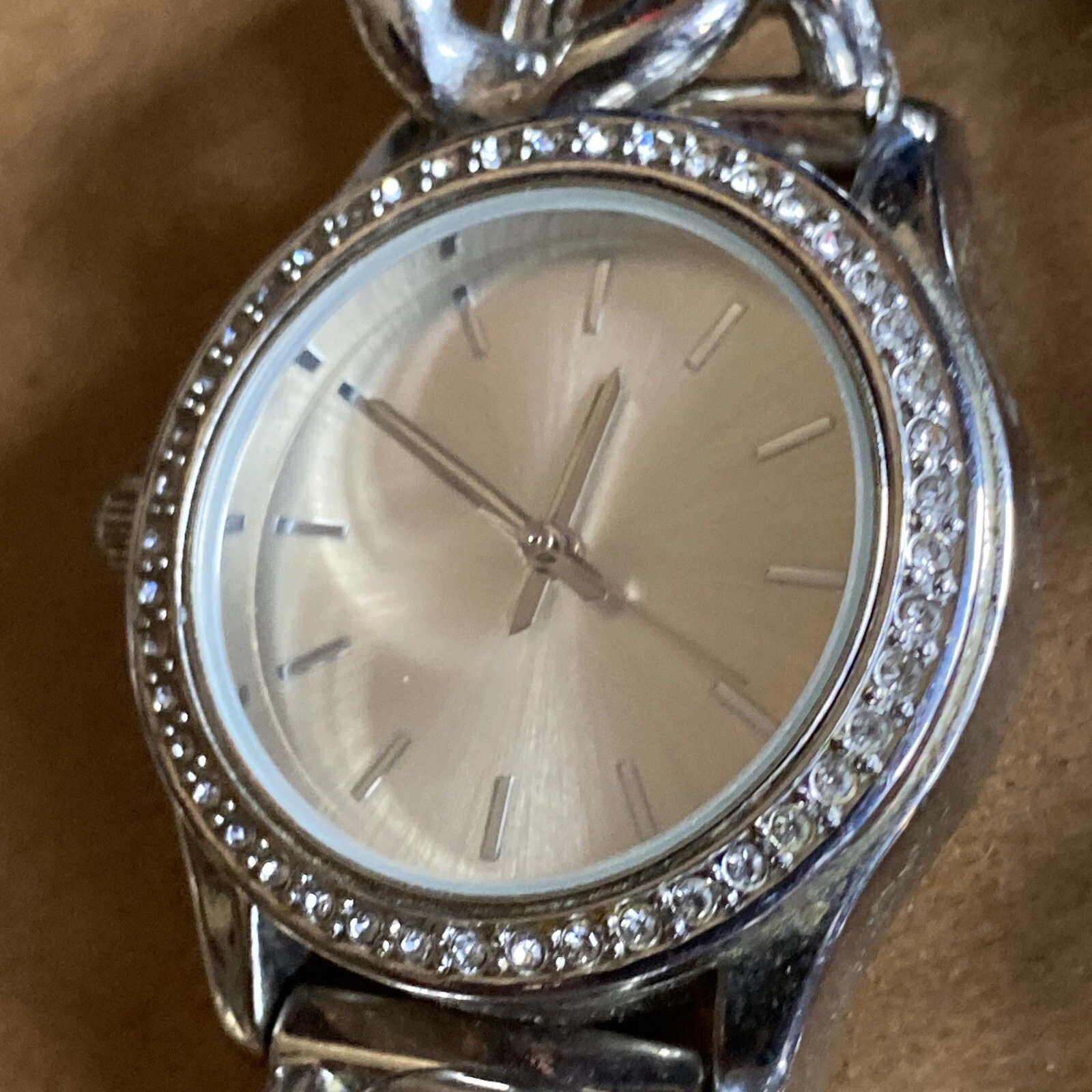 FMD Silver Tone Rhinestone Bezel Cuban Link Bracelet Women’s Quartz Watch