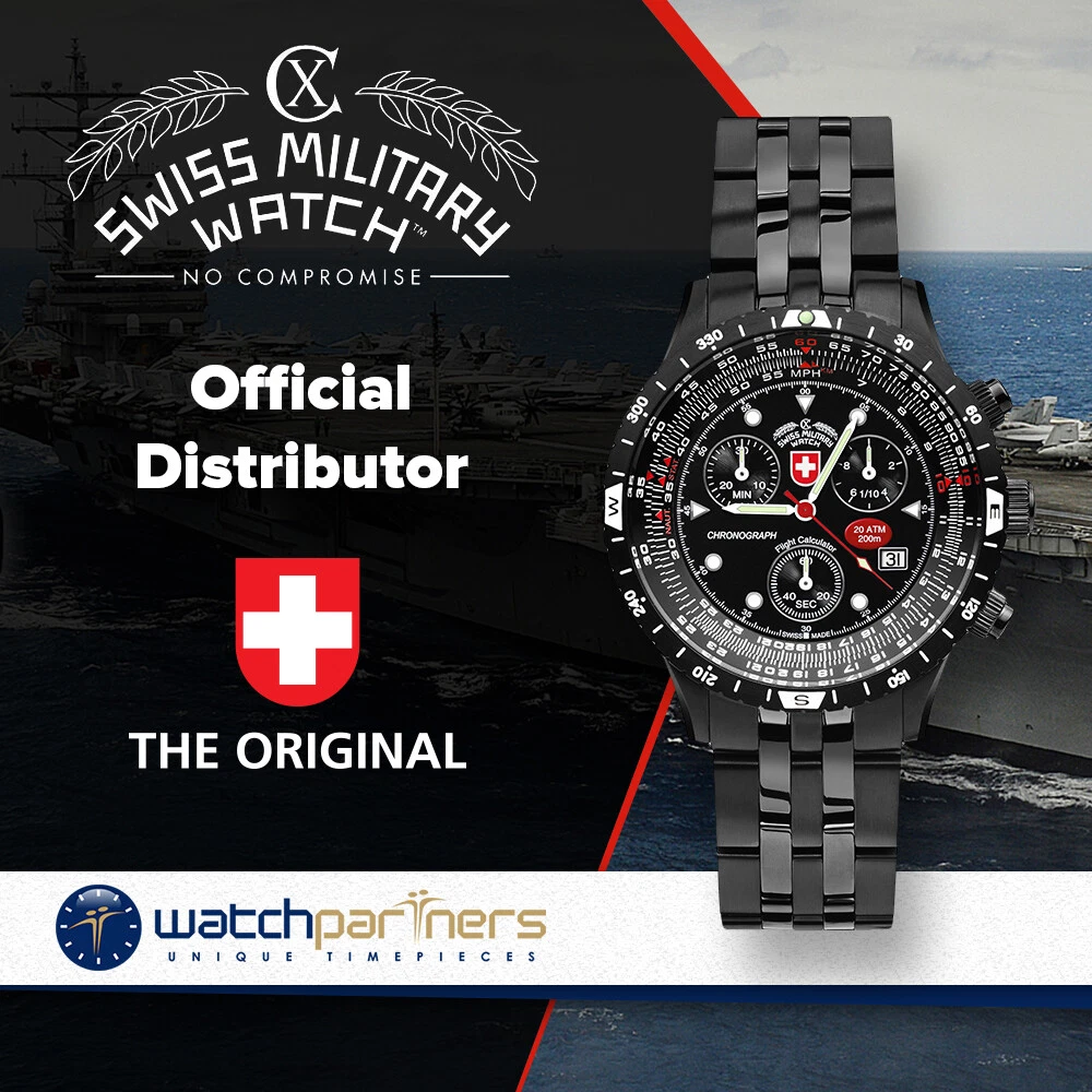 CX SWISS MILITARY AIRFORCE 1 EVO WATCH SWISS CHRONO FLIGHT CAL 200m WR BLACK