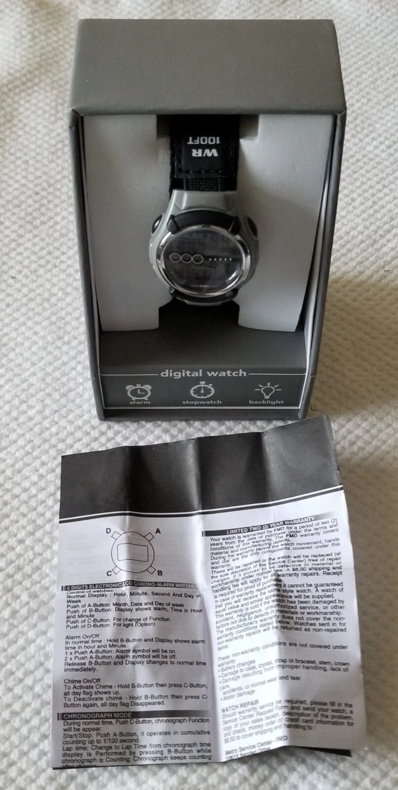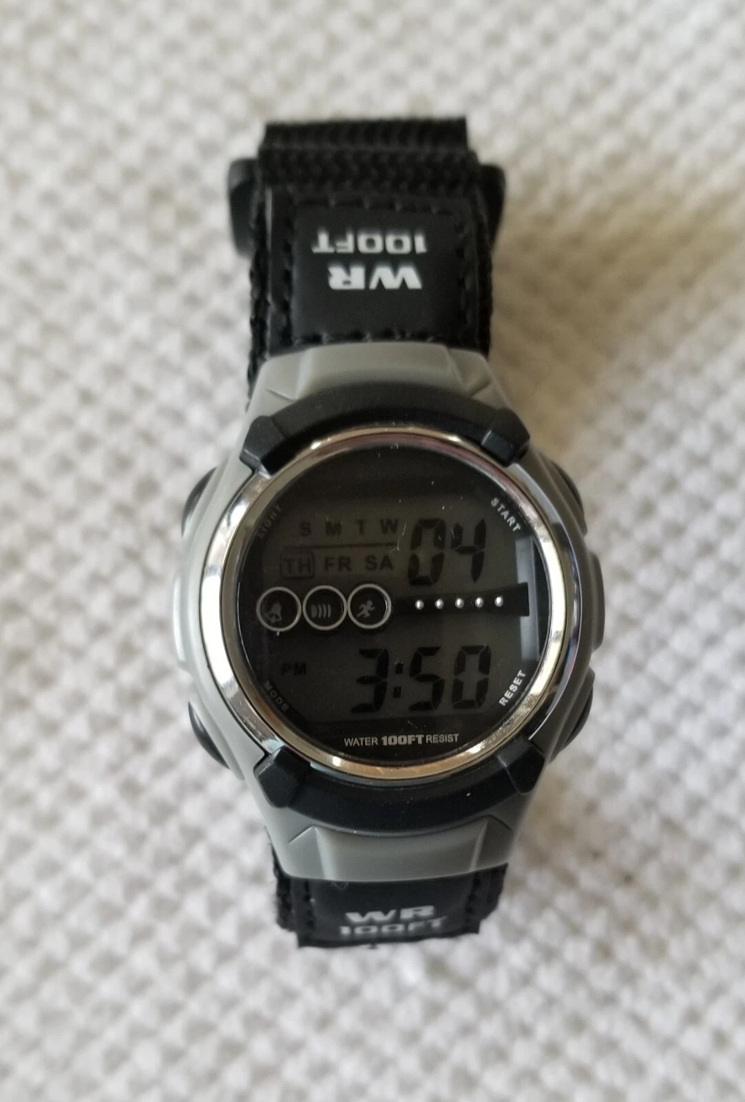 FMD Gray/Black Digital Watch FMDJA102A Canvas Band 5.5"-6.5" New Battery