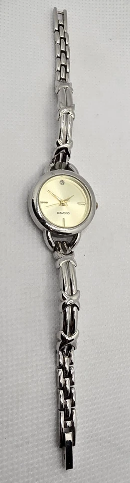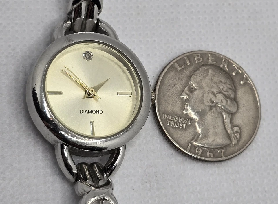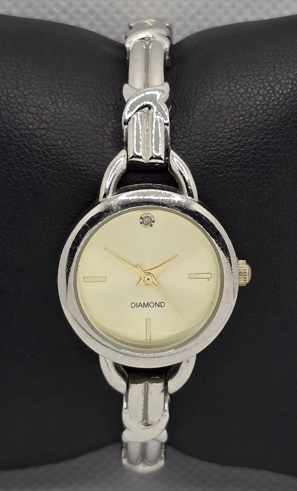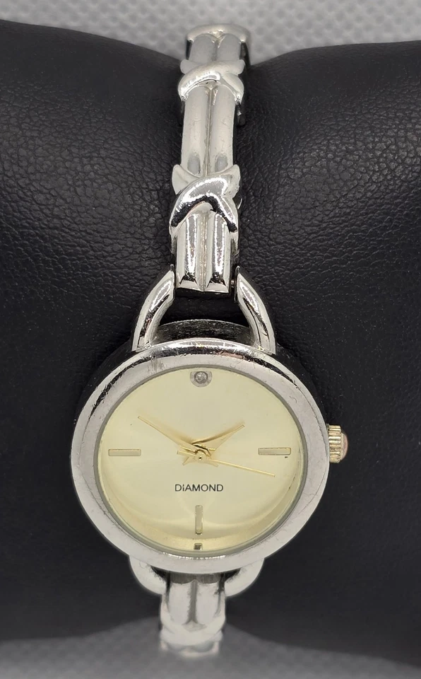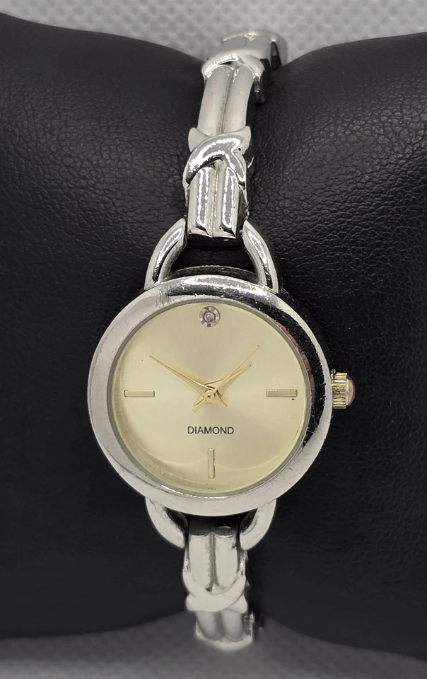 Women's Classic Dress Diamond Round Champagne Dial Silver Tone Bangle Watch 04