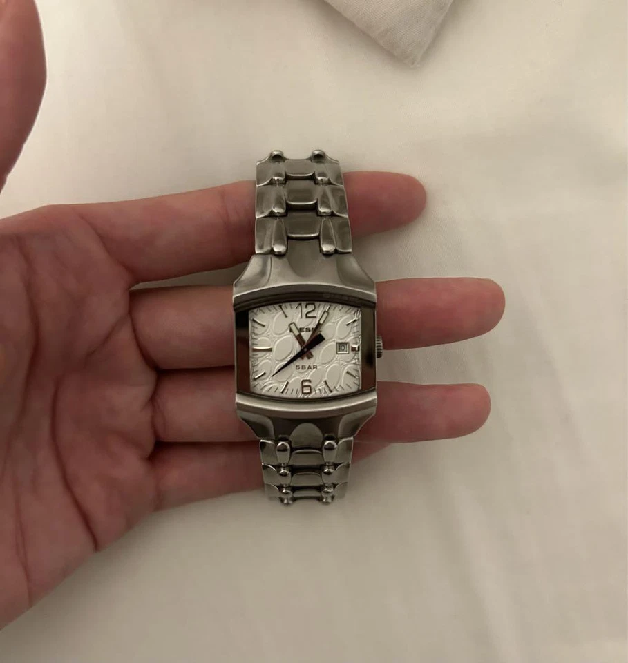 Diesel 00s Silver Watch Y2K Design Bracelet 5BAR Water Resistant Date Display