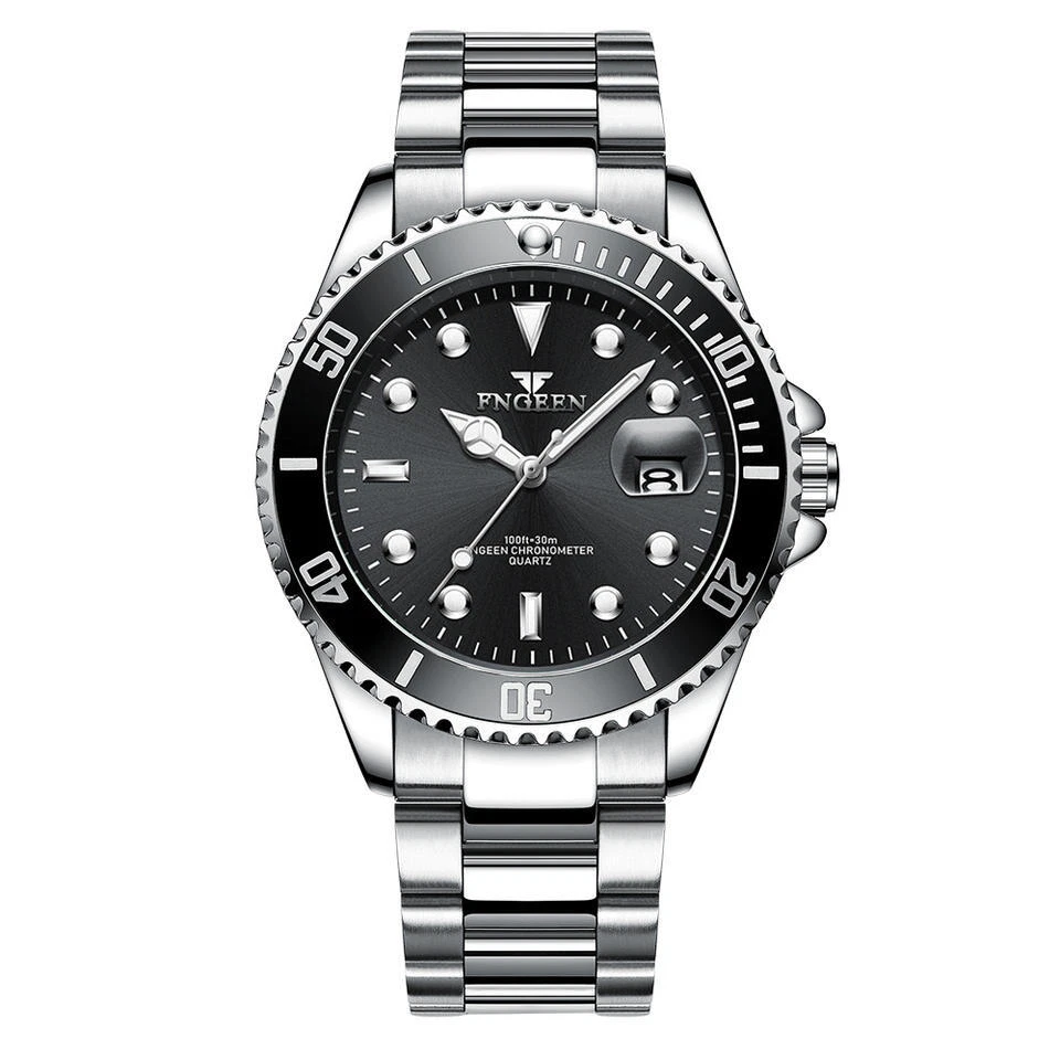 FNGEEN Classic Mens Stainless Steel Watch Business Calendar Quartz Wrist Watches
