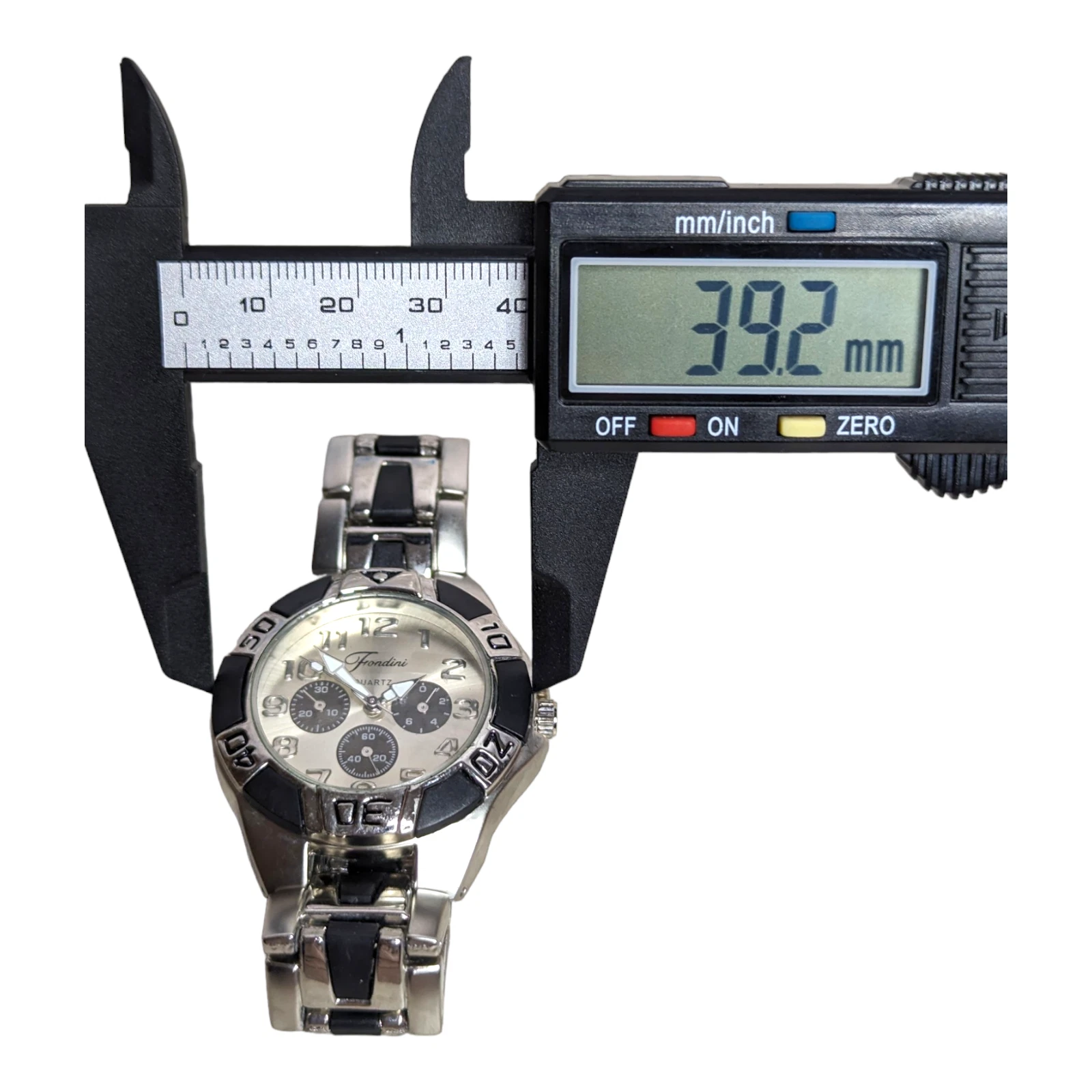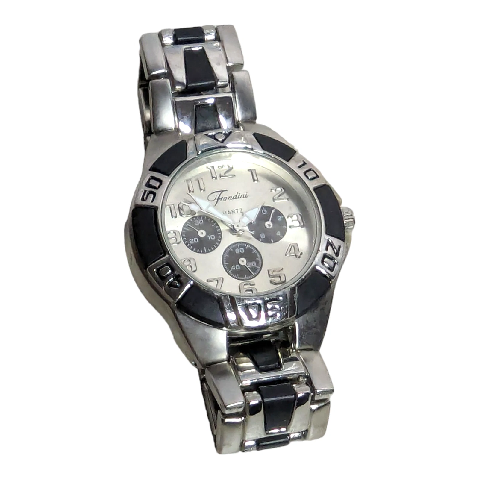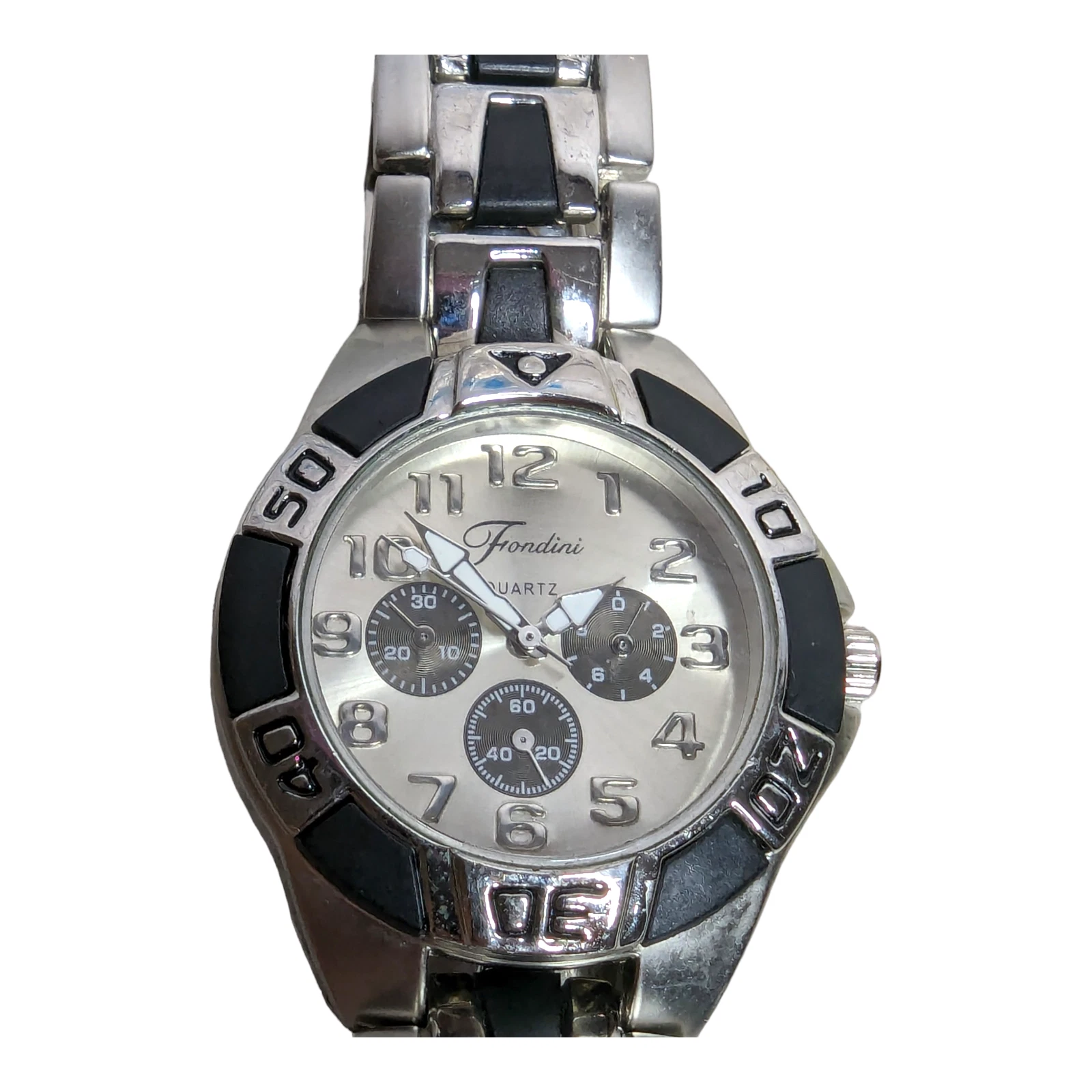 Men's Fondini Quartz Swiss Made Silver Stainless Steel Metal & Black Band Watch