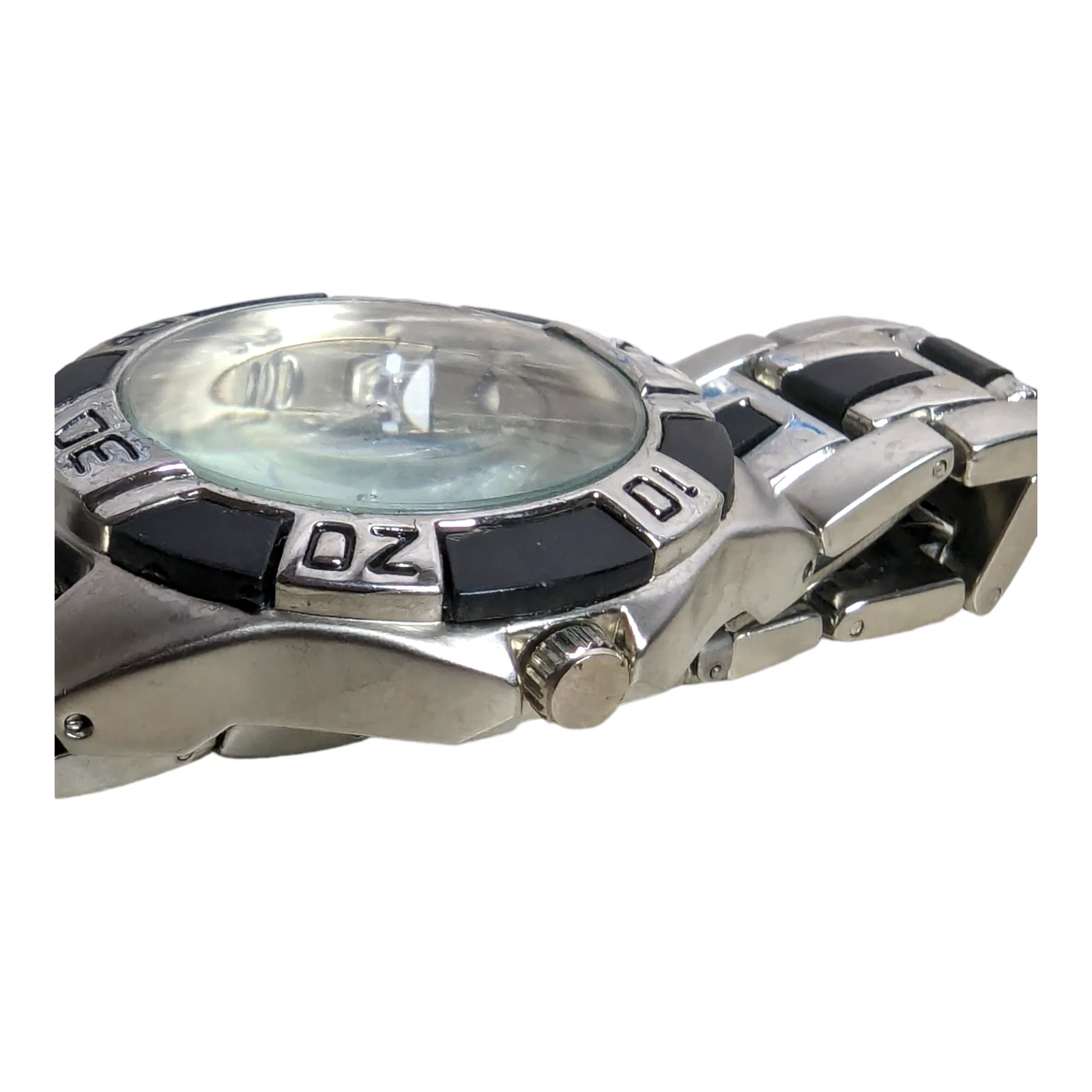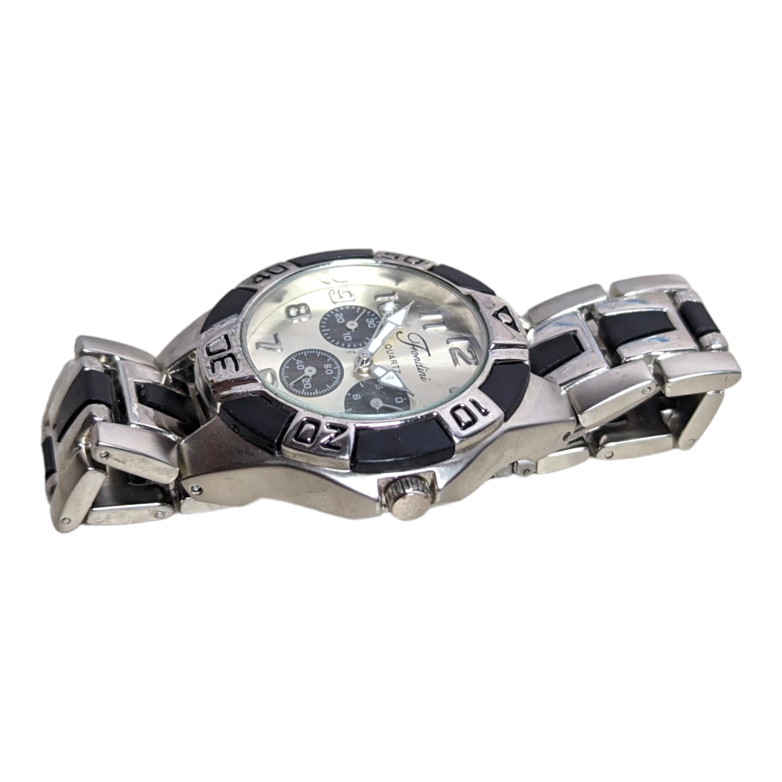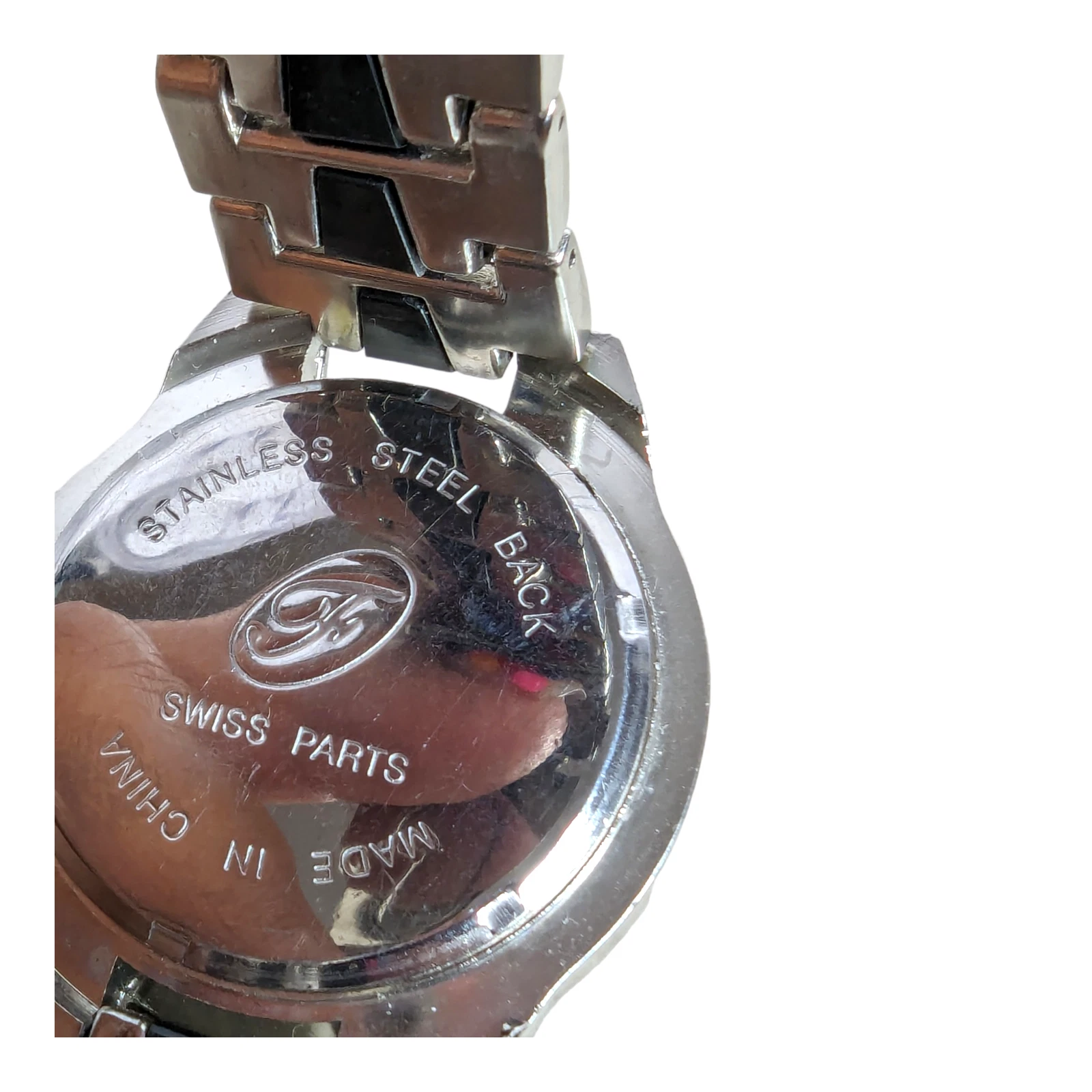 Men's Fondini Quartz Swiss Made Silver Stainless Steel Metal & Black Band Watch