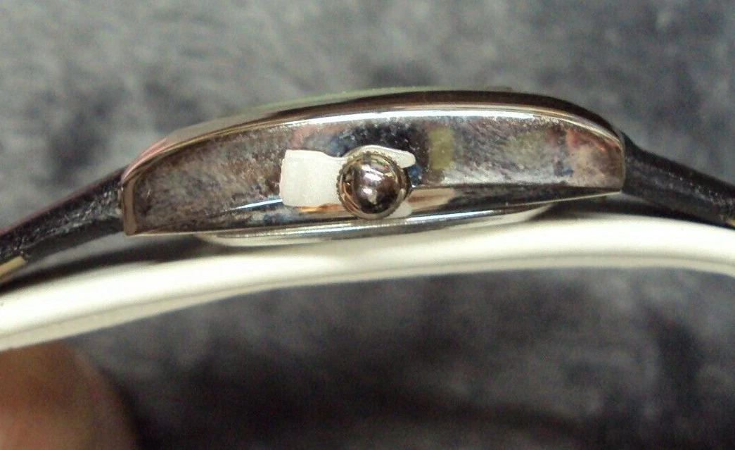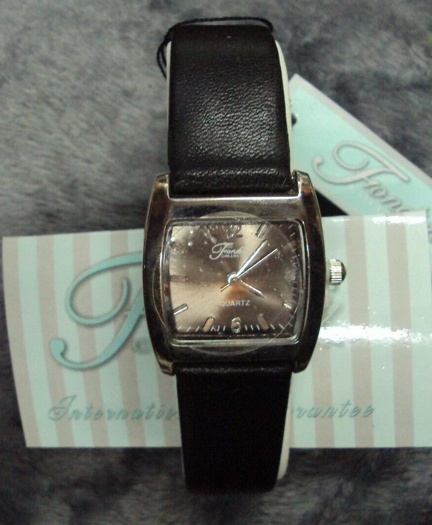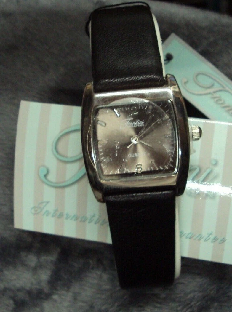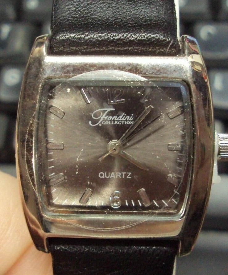 Vtg FONDINI Quartz Wrist Watch GENUINE LEATHER Black Band, Swiss Parts, SS Back