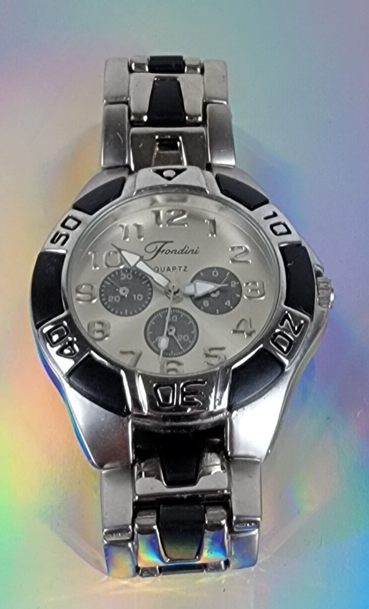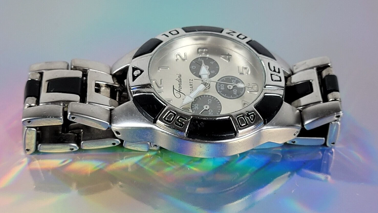 Fondini Watch Quartz Silver And Black Stainless Steel Men's Wristwatch