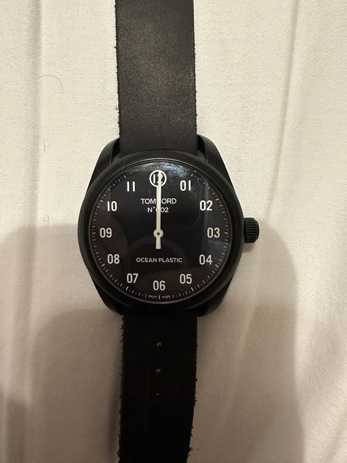 TOM FORD N 002 Ocean Plastic Timepiece Men's Black-Steel Smooth Bezel Wristwatch