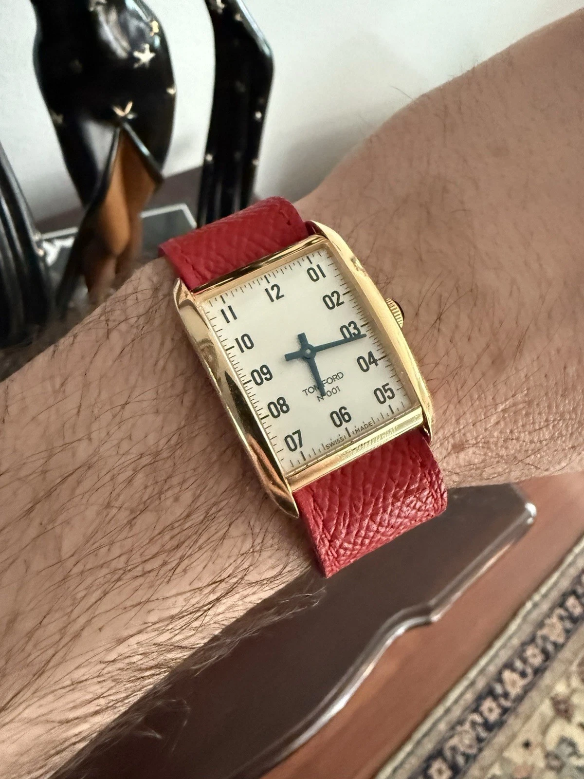 Shinola Tom Ford 001 Tank Watch, Solid Gold 18k, 27mm, Box, Papers, MSRP $7190