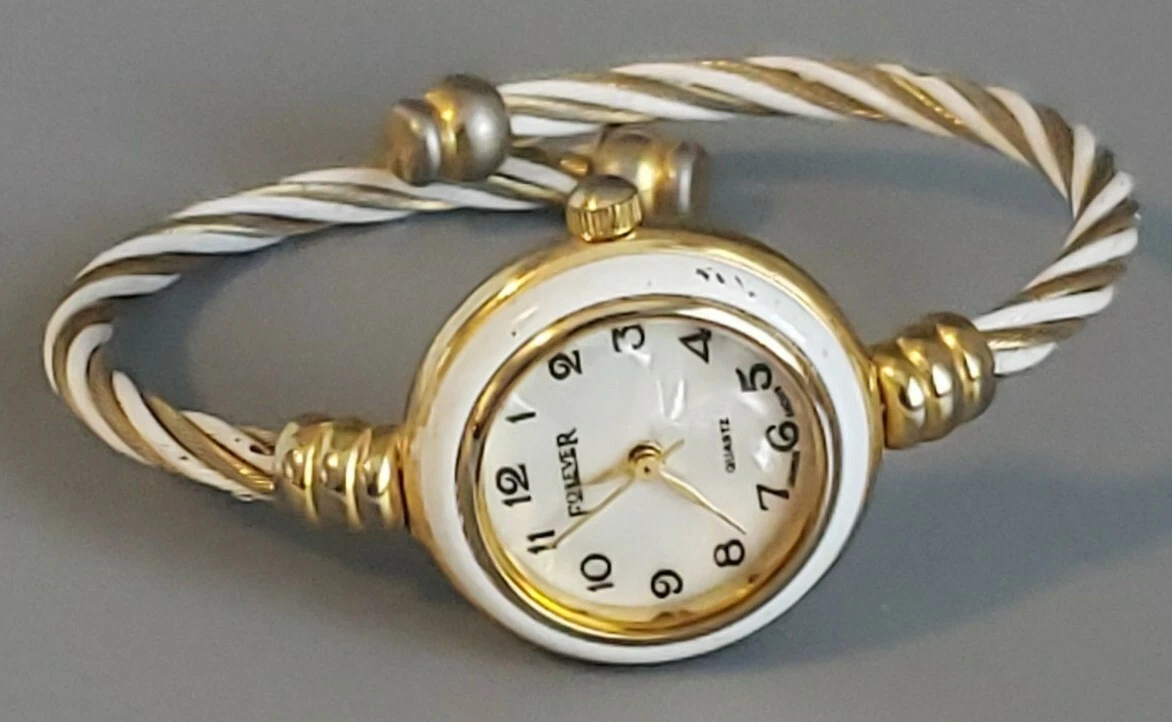 Forever Wristwatch, Quartz, Japan Movement Adjustable Gold White Band Super Cute
