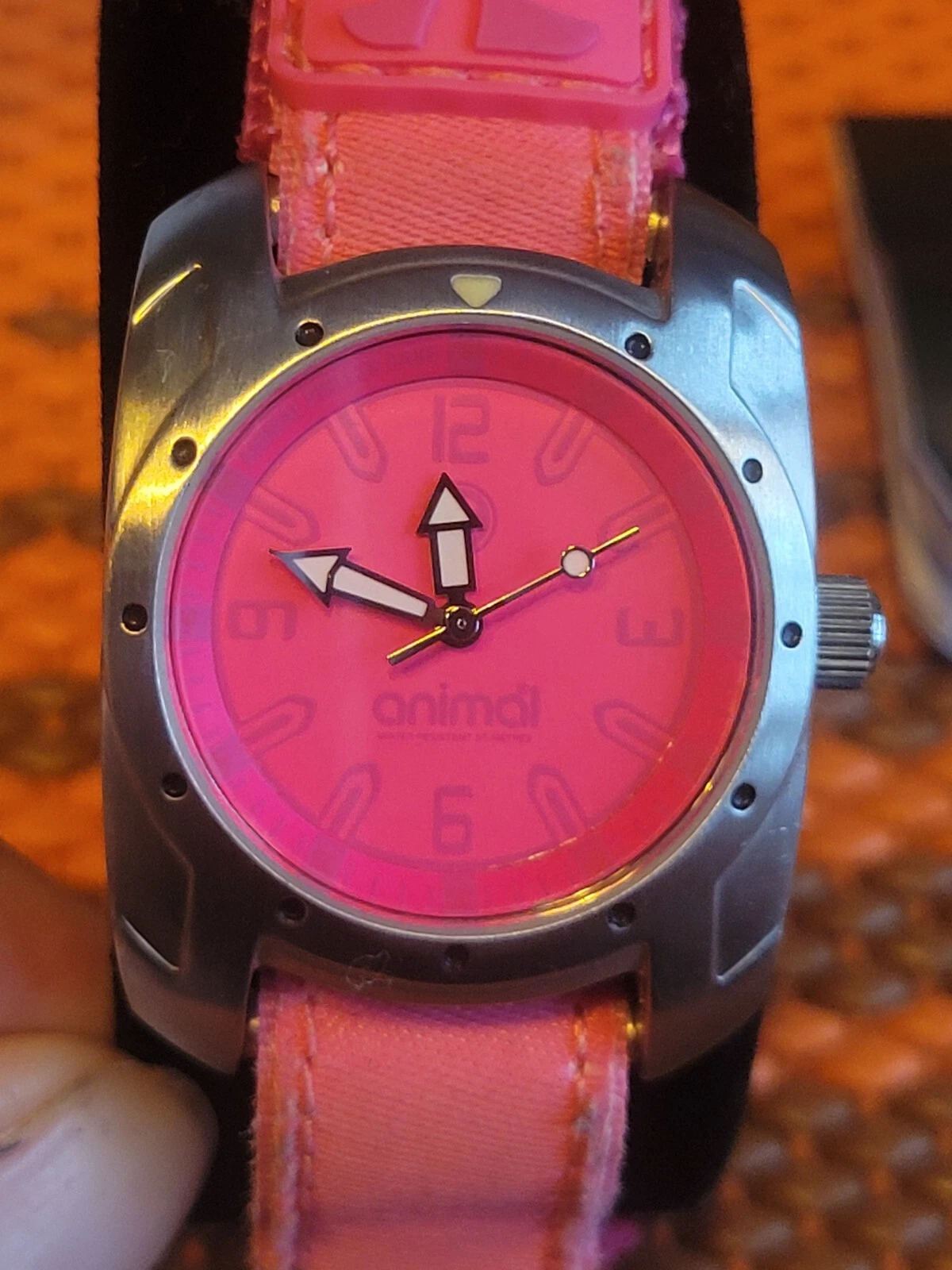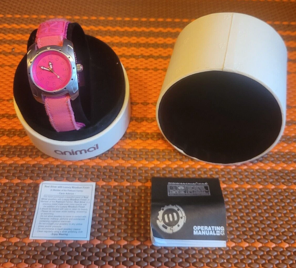 Vintage Animal ' Side Shore Watch Pink ' Women's Surf Divers Strap RARE Y2K NEW