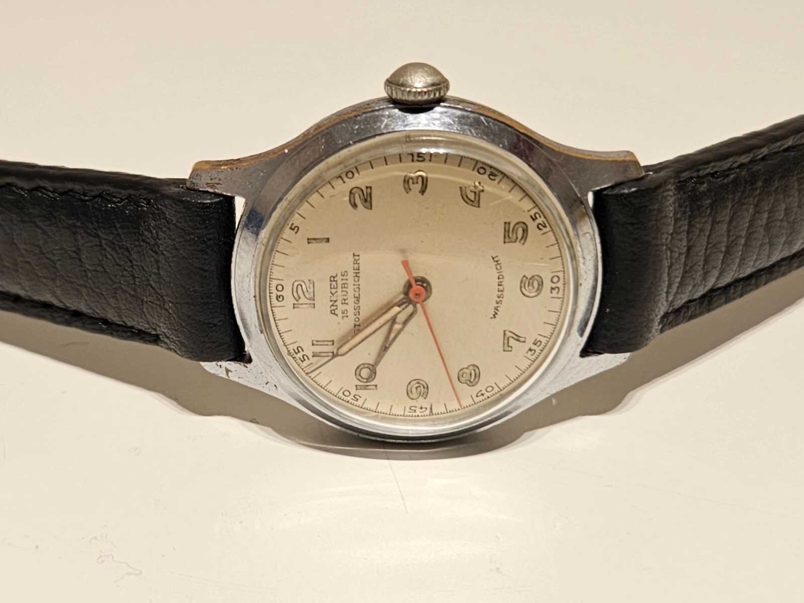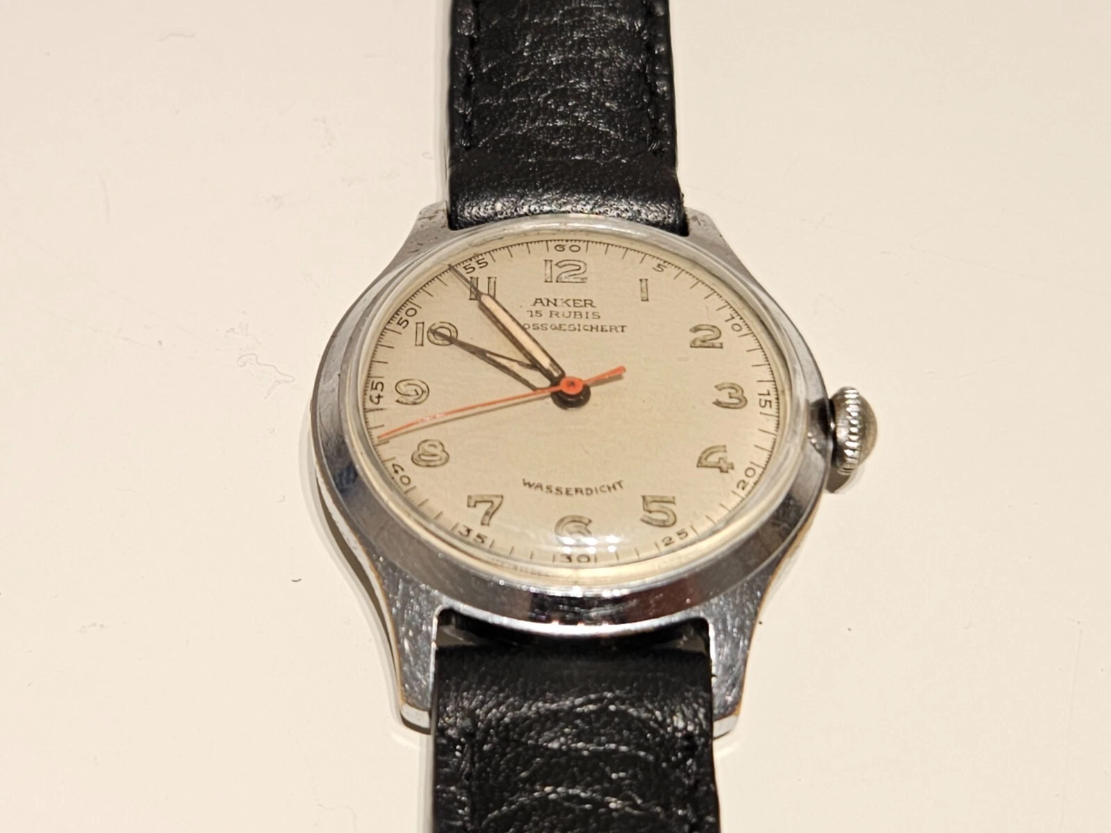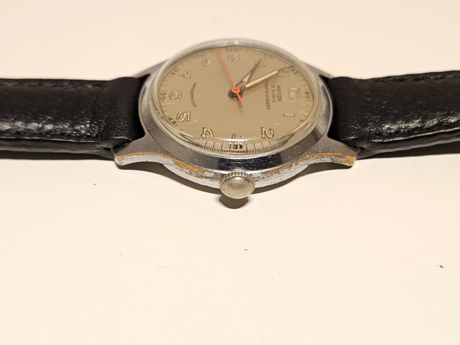 VINTAGE WW2 GERMANY RARE CHROMED WASSERDICHT MEN'S MECHANICAL WATCH"ANKER" 15j.