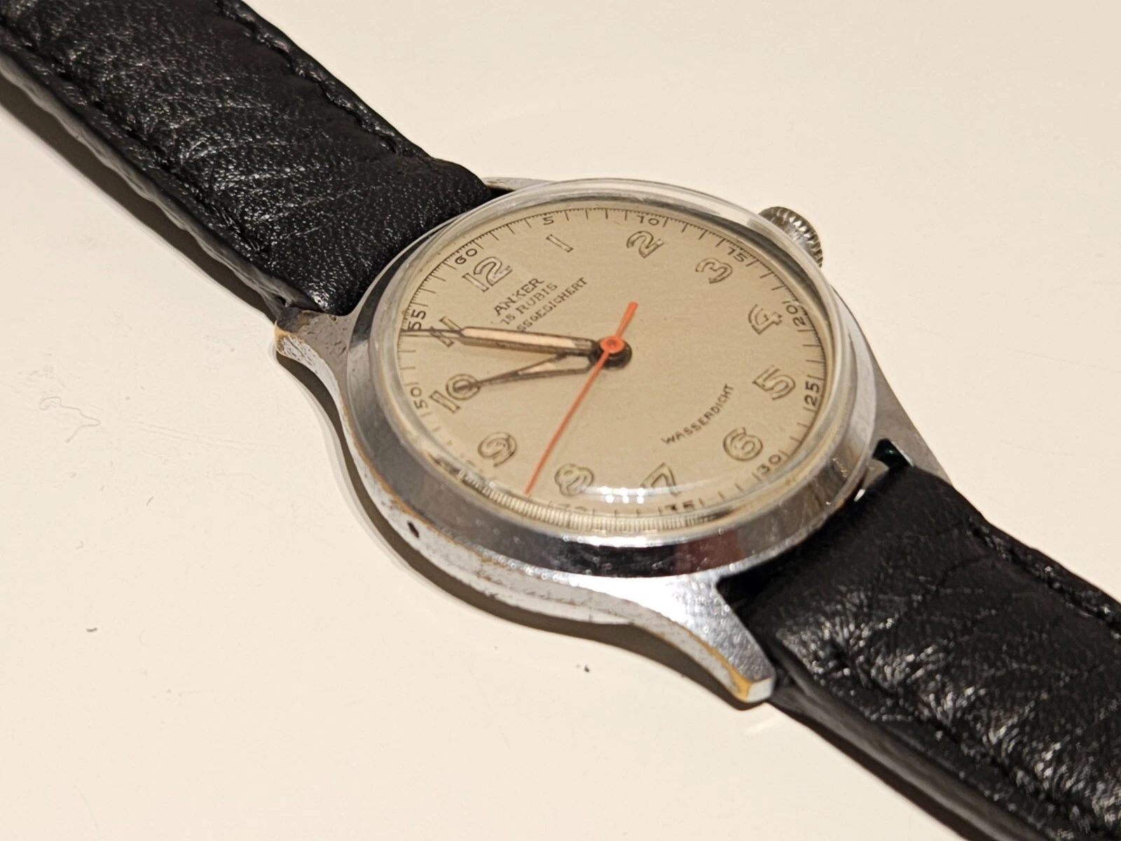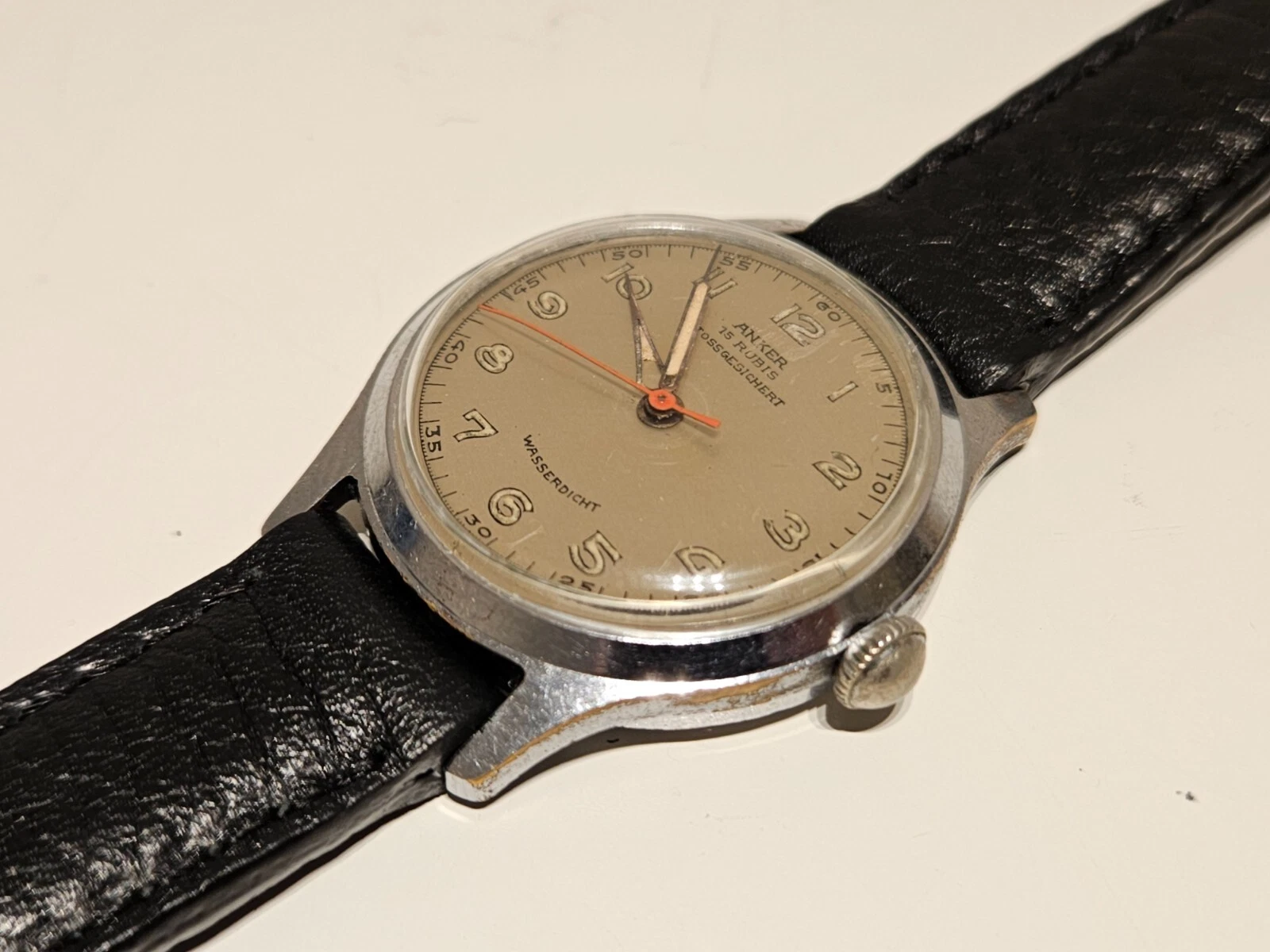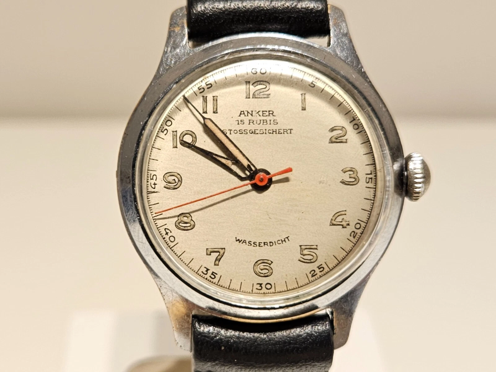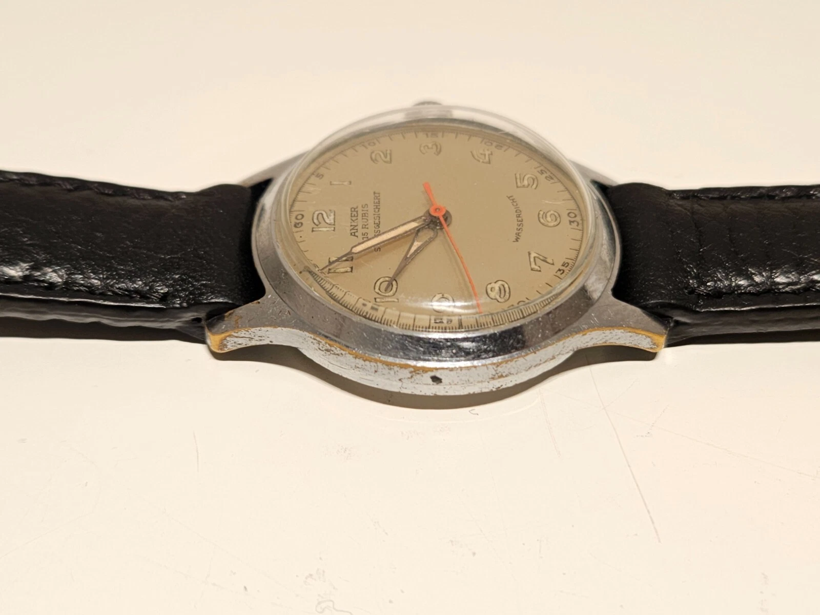 VINTAGE WW2 GERMANY RARE CHROMED WASSERDICHT MEN'S MECHANICAL WATCH"ANKER" 15j.