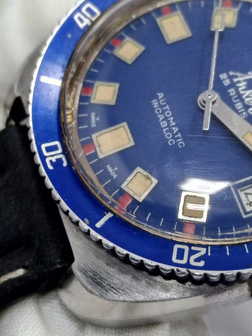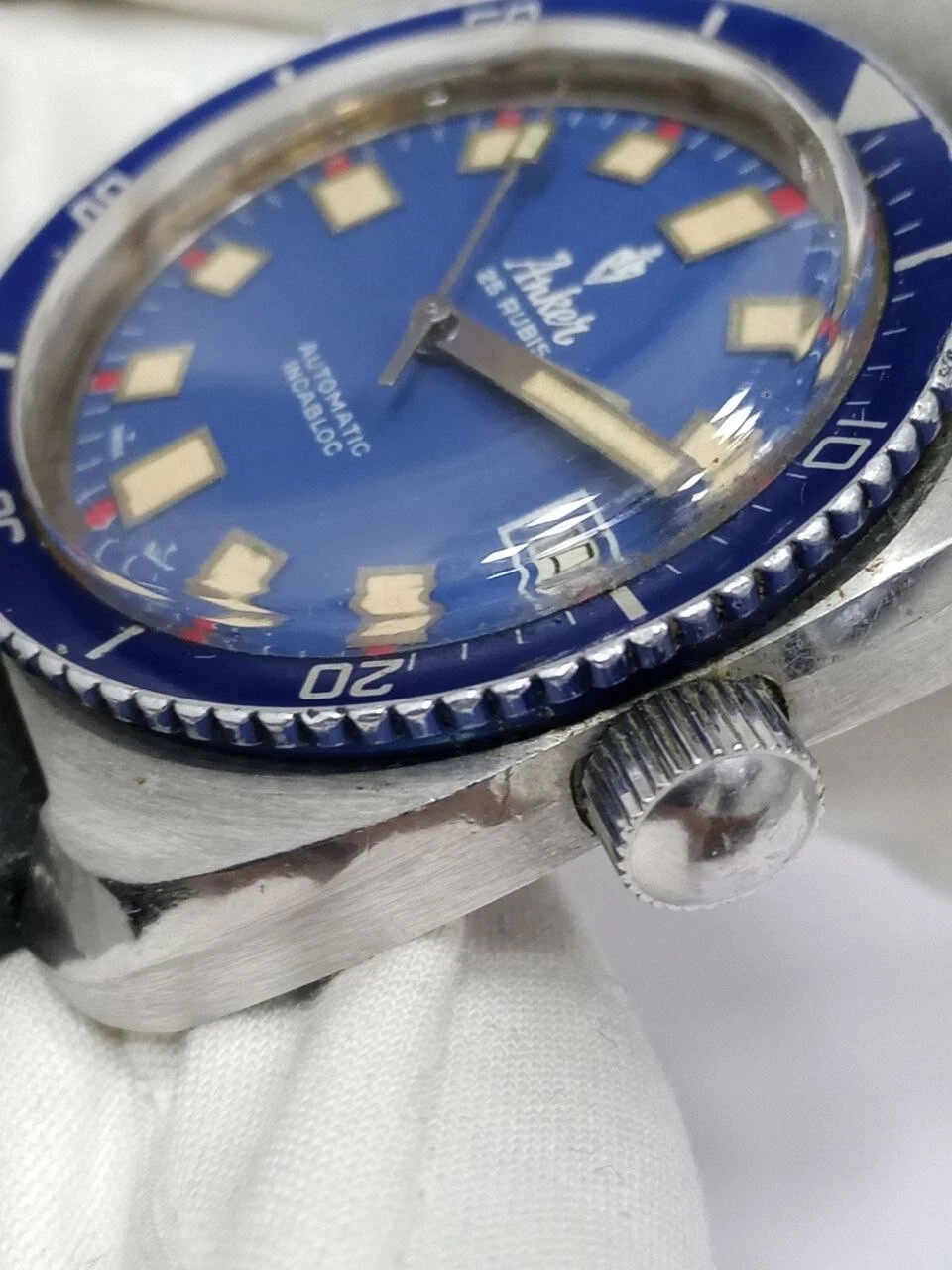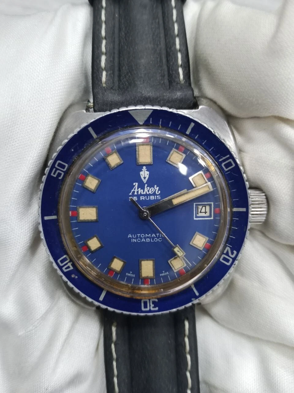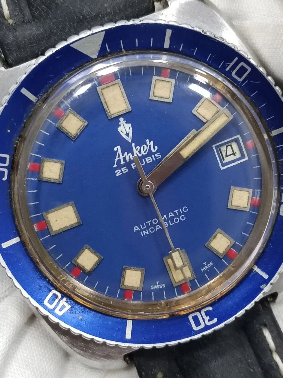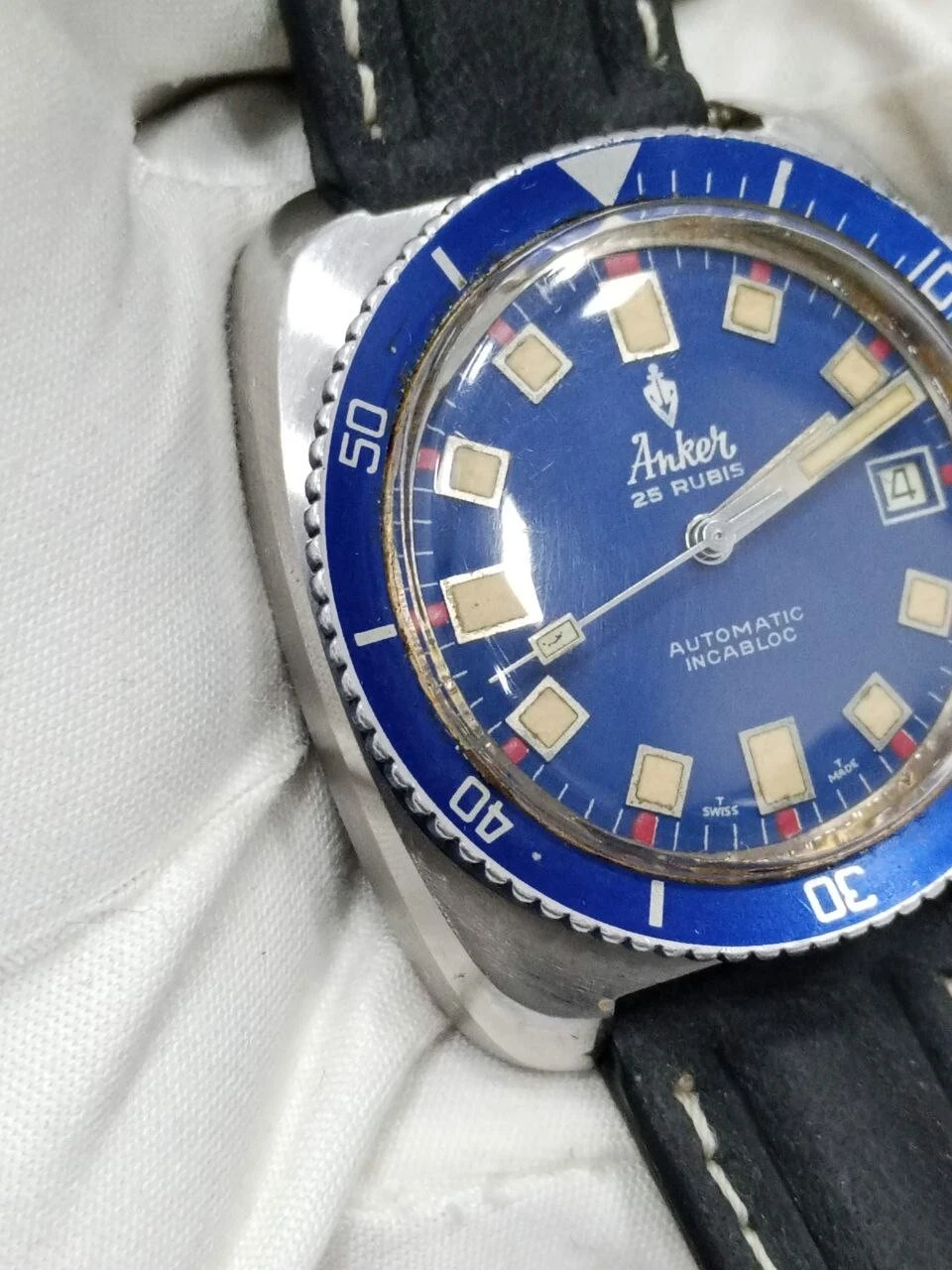 Rare Vintage Anker Diver 25 Rubis Blue Dial