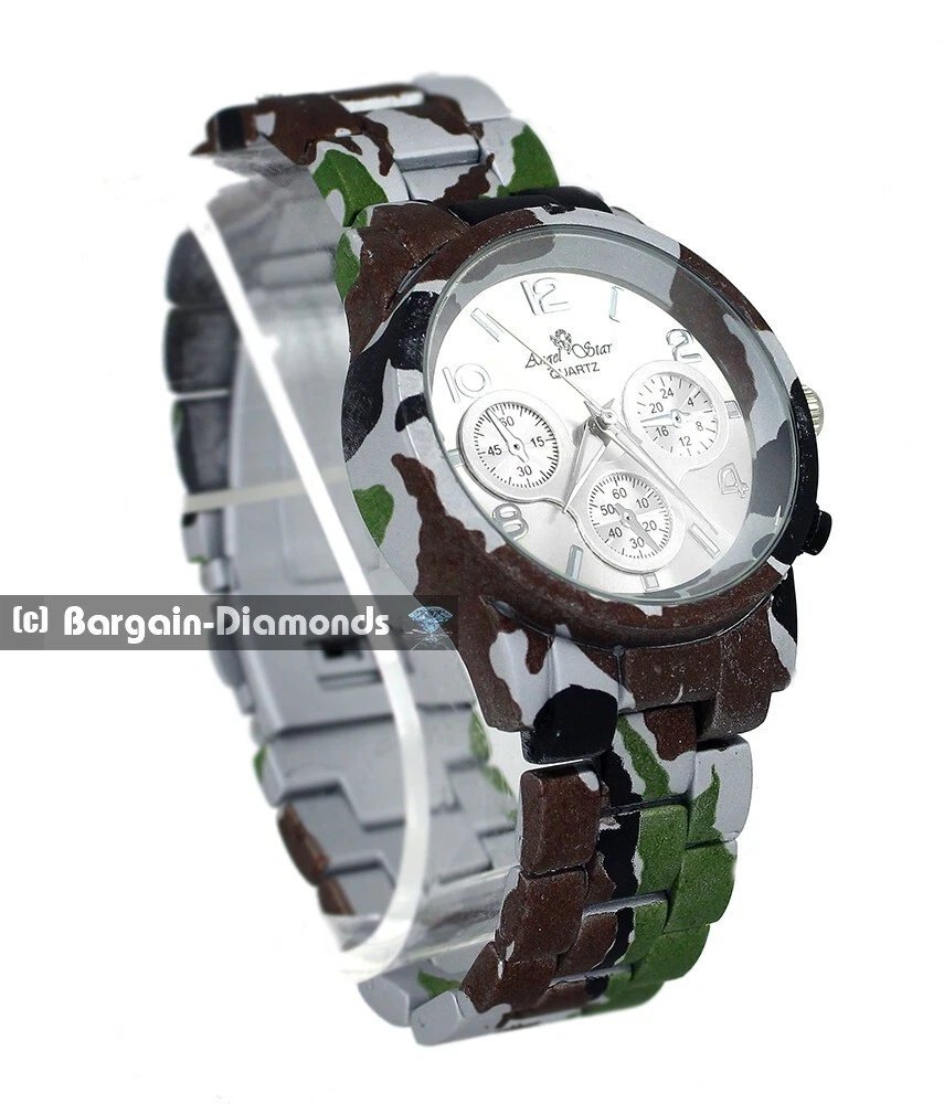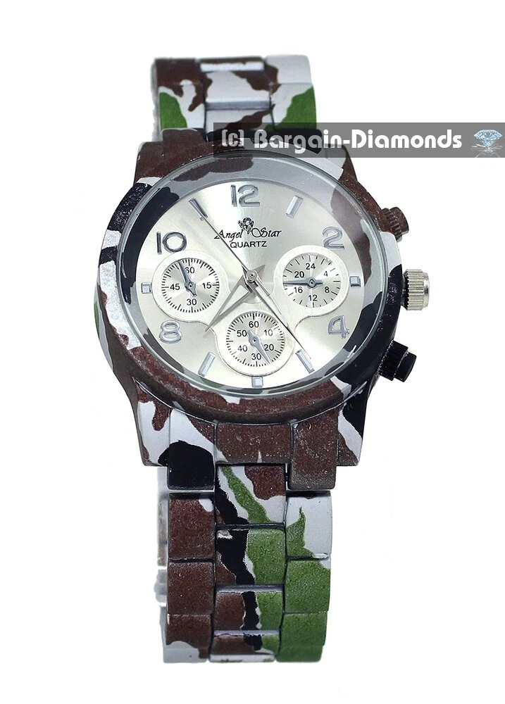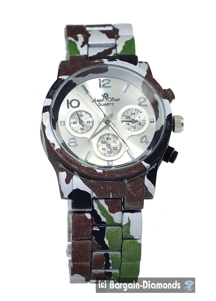 Ladies Camo Clubbing Watch Silver Dial/Hours/Hands, Camo Bracelet up to 7" Wris