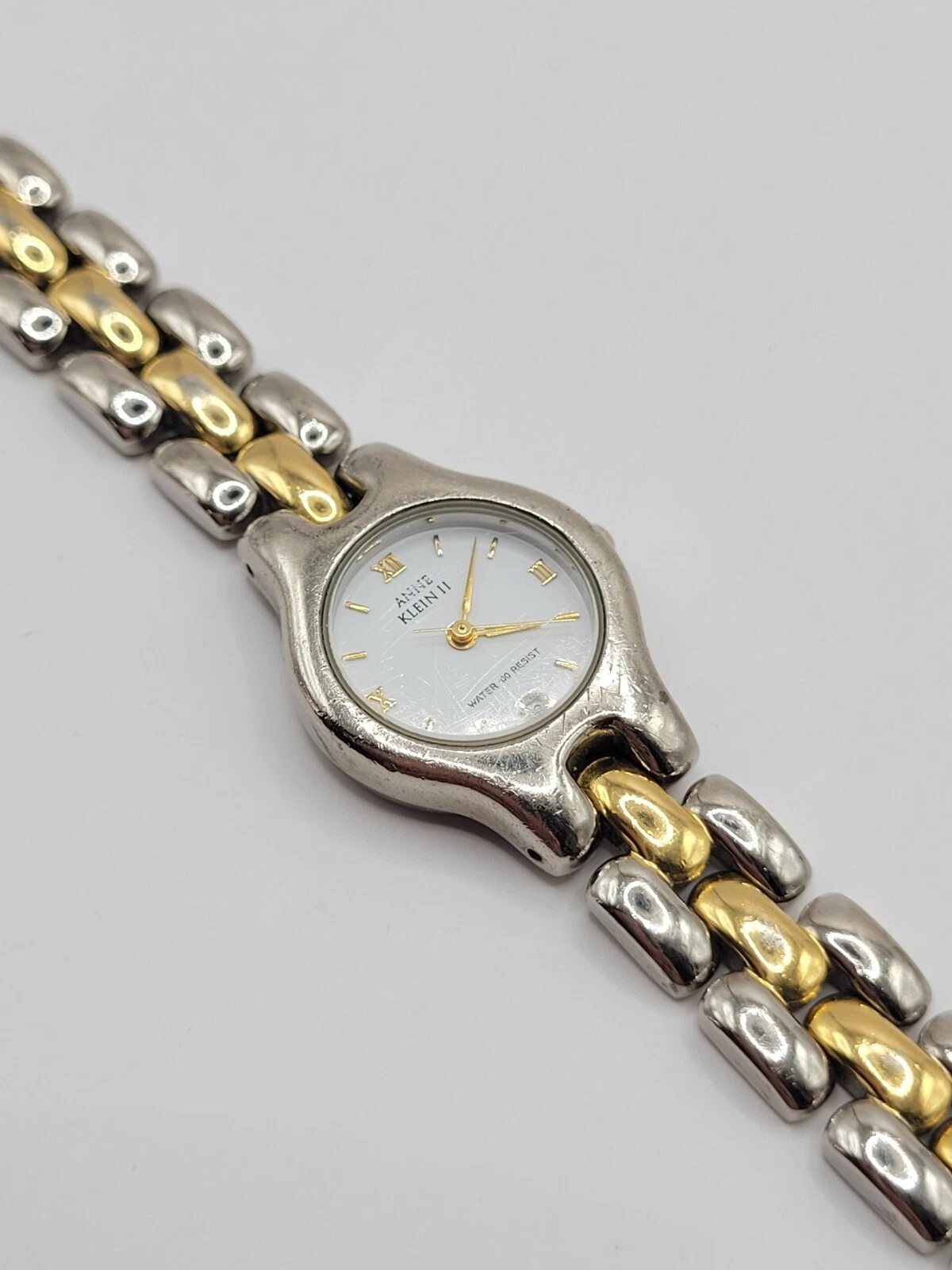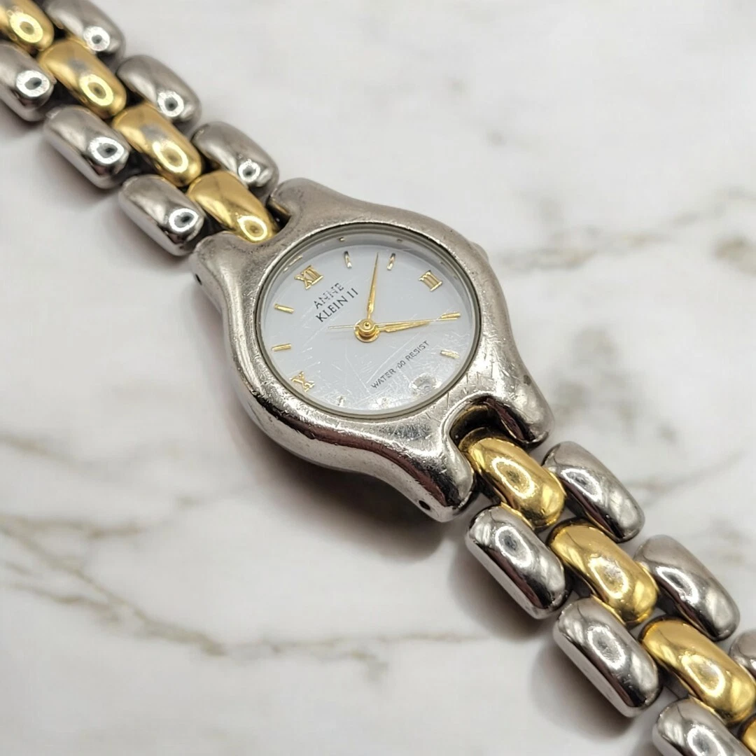 Vintage Two Tone Anne Klein II Ladies Wristwatch 7.25" Bracelet Link Band Works