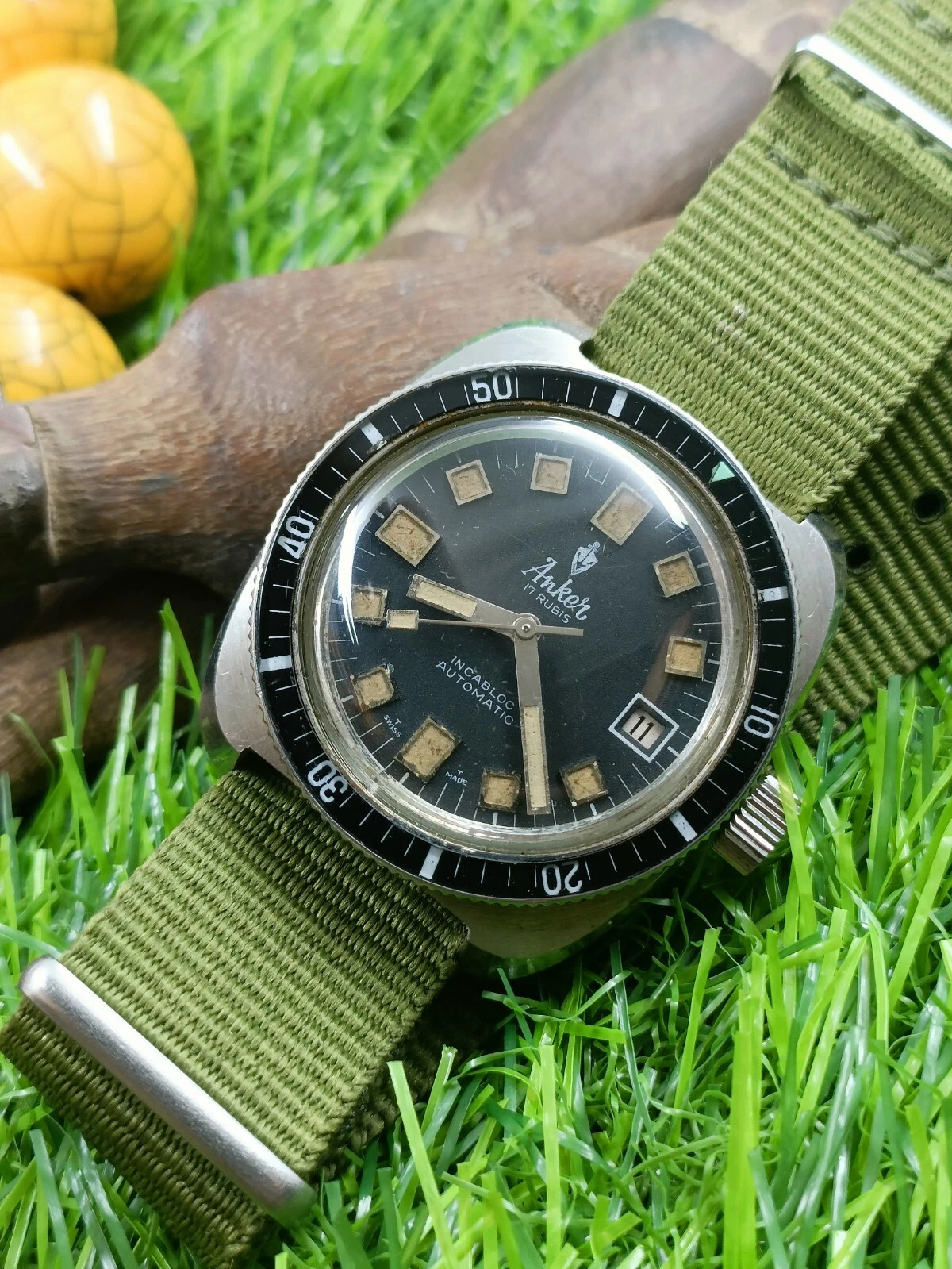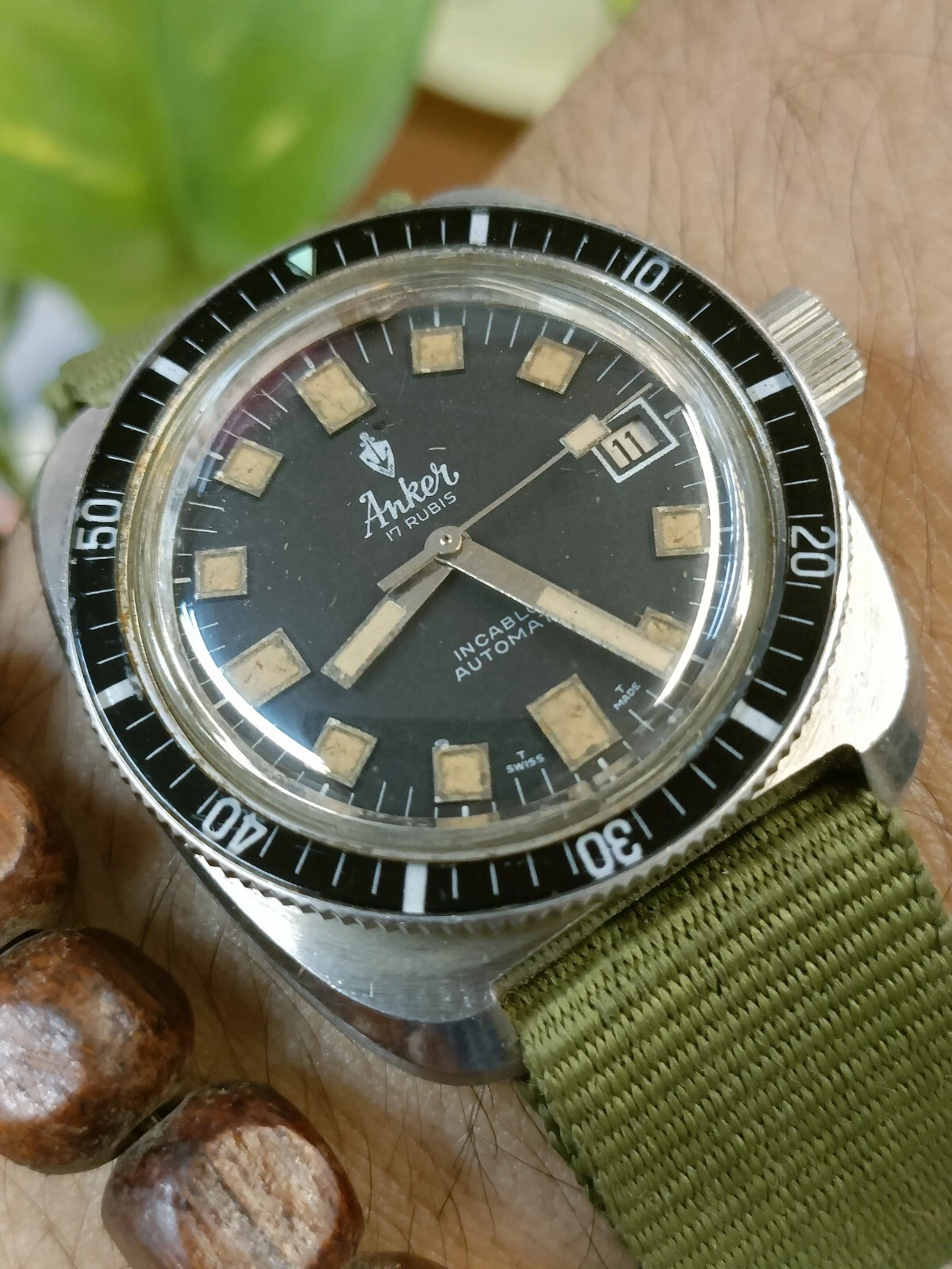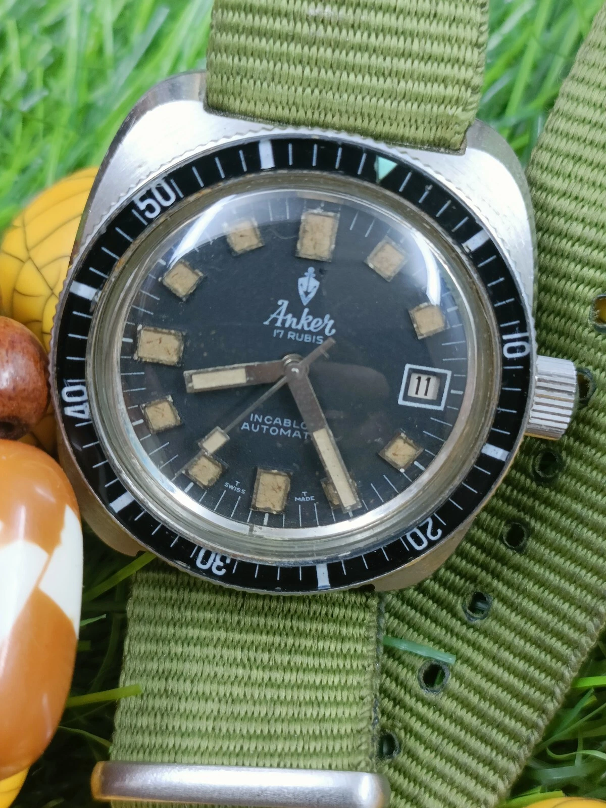 AUTHENTIC ANKER 17 RUBIS AUTOMATIC DIVER'S DATE SWISS MEN'S 2782 ETTA VINTAGE