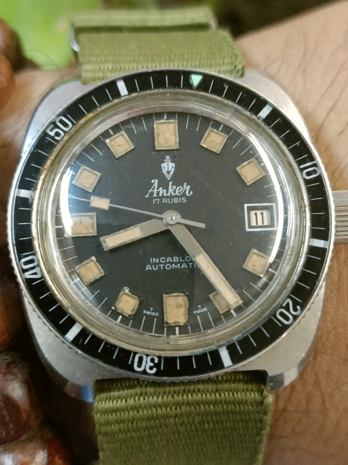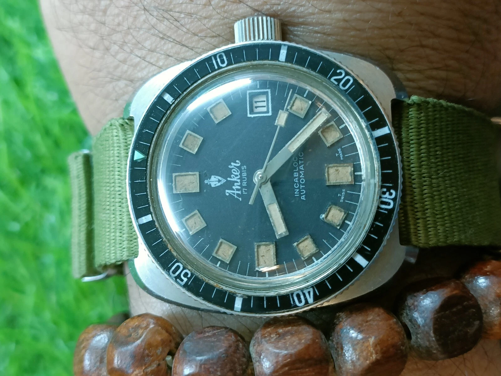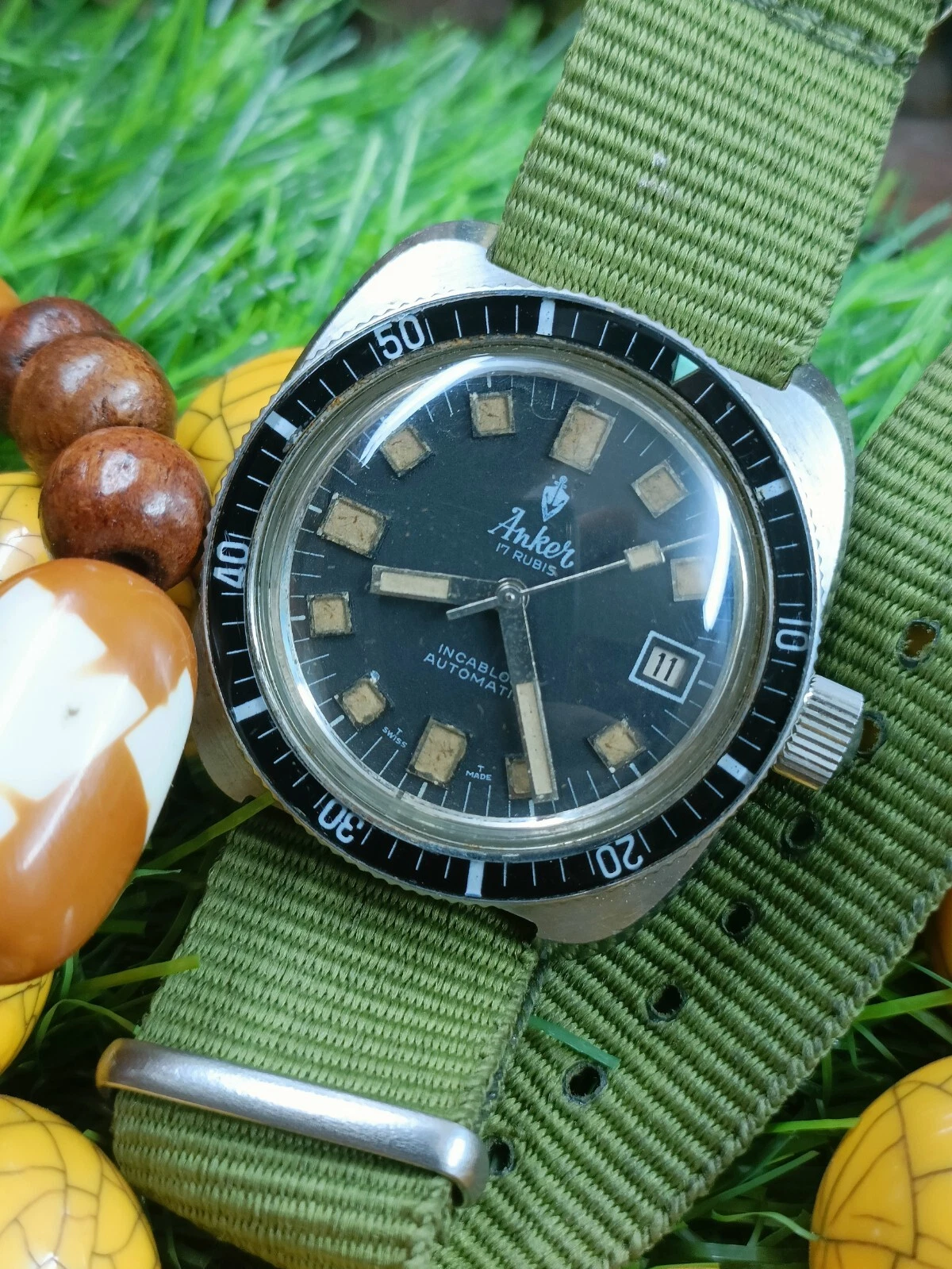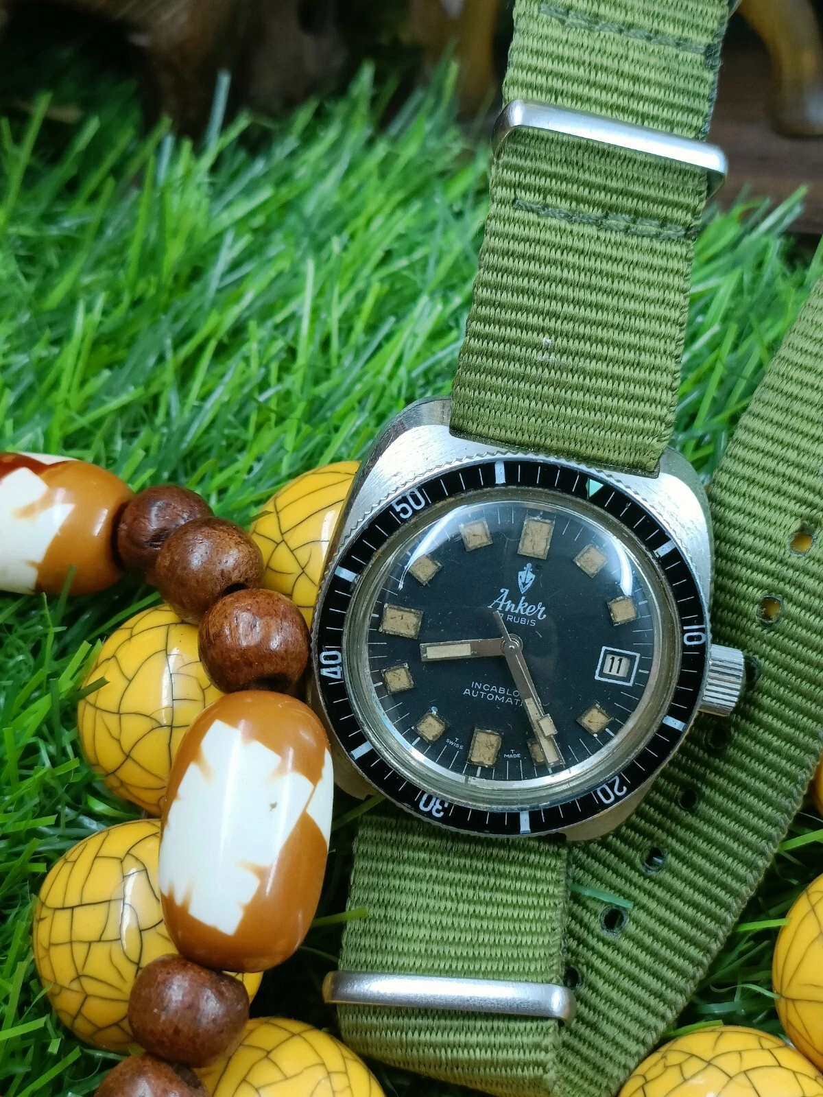 AUTHENTIC ANKER 17 RUBIS AUTOMATIC DIVER'S DATE SWISS MEN'S 2782 ETTA VINTAGE