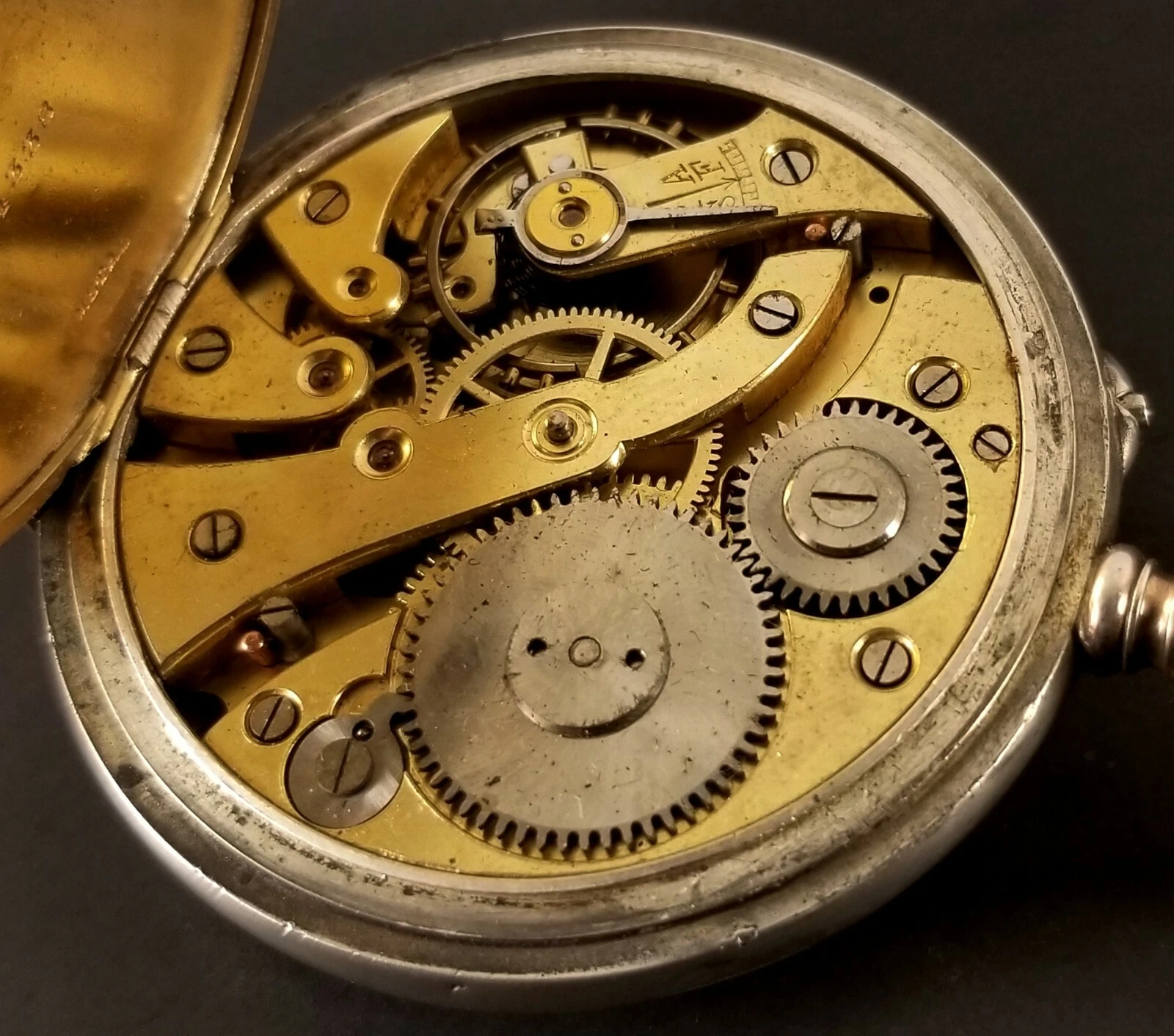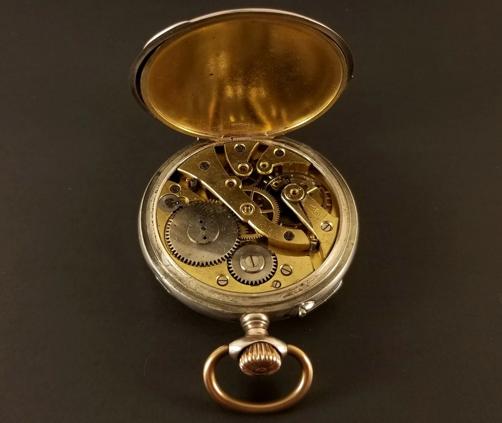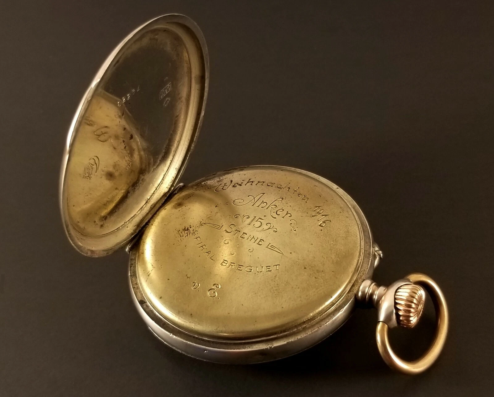 Antique Weihnachten Anker Pocket Watch 15 Jewels 1916 Pin Set .800 Silver Case
