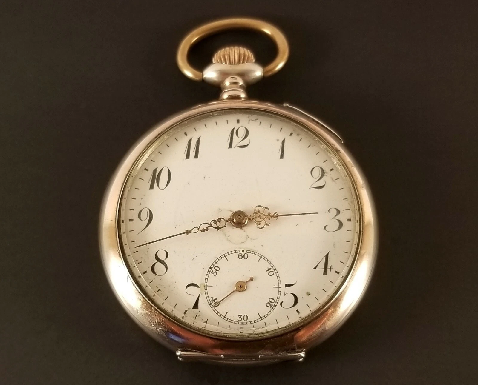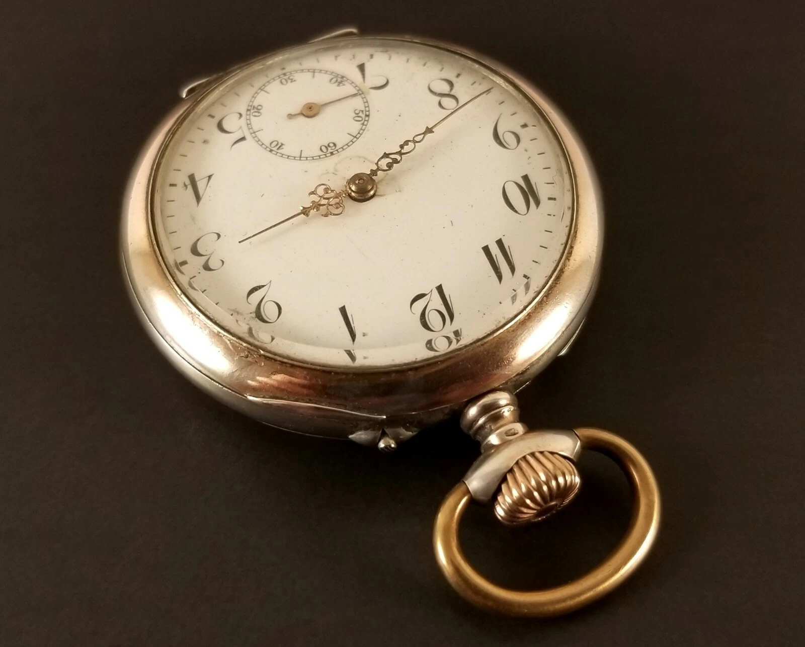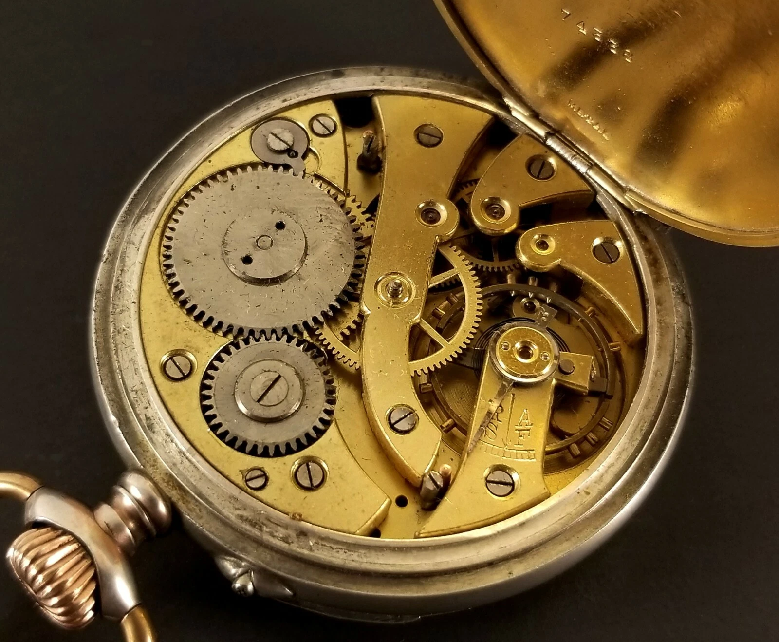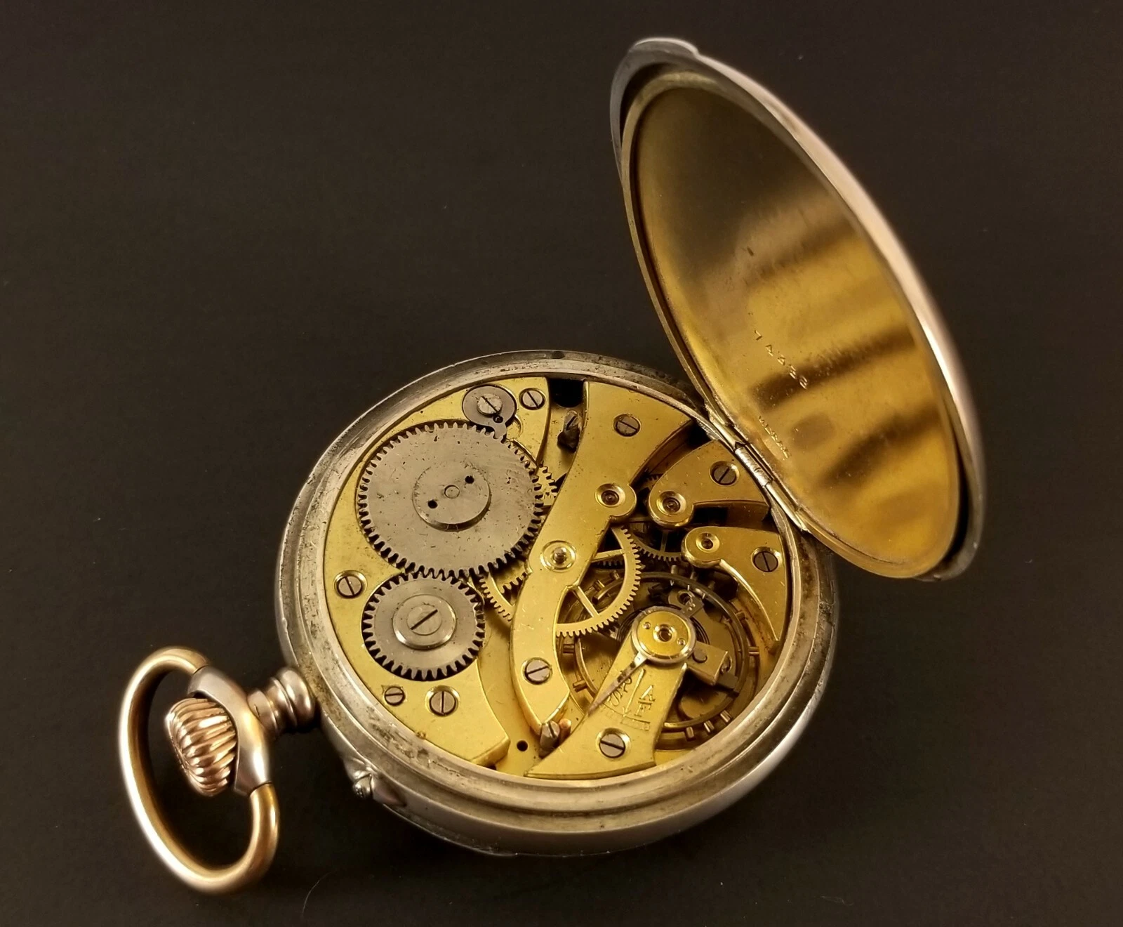 Antique Weihnachten Anker Pocket Watch 15 Jewels 1916 Pin Set .800 Silver Case
