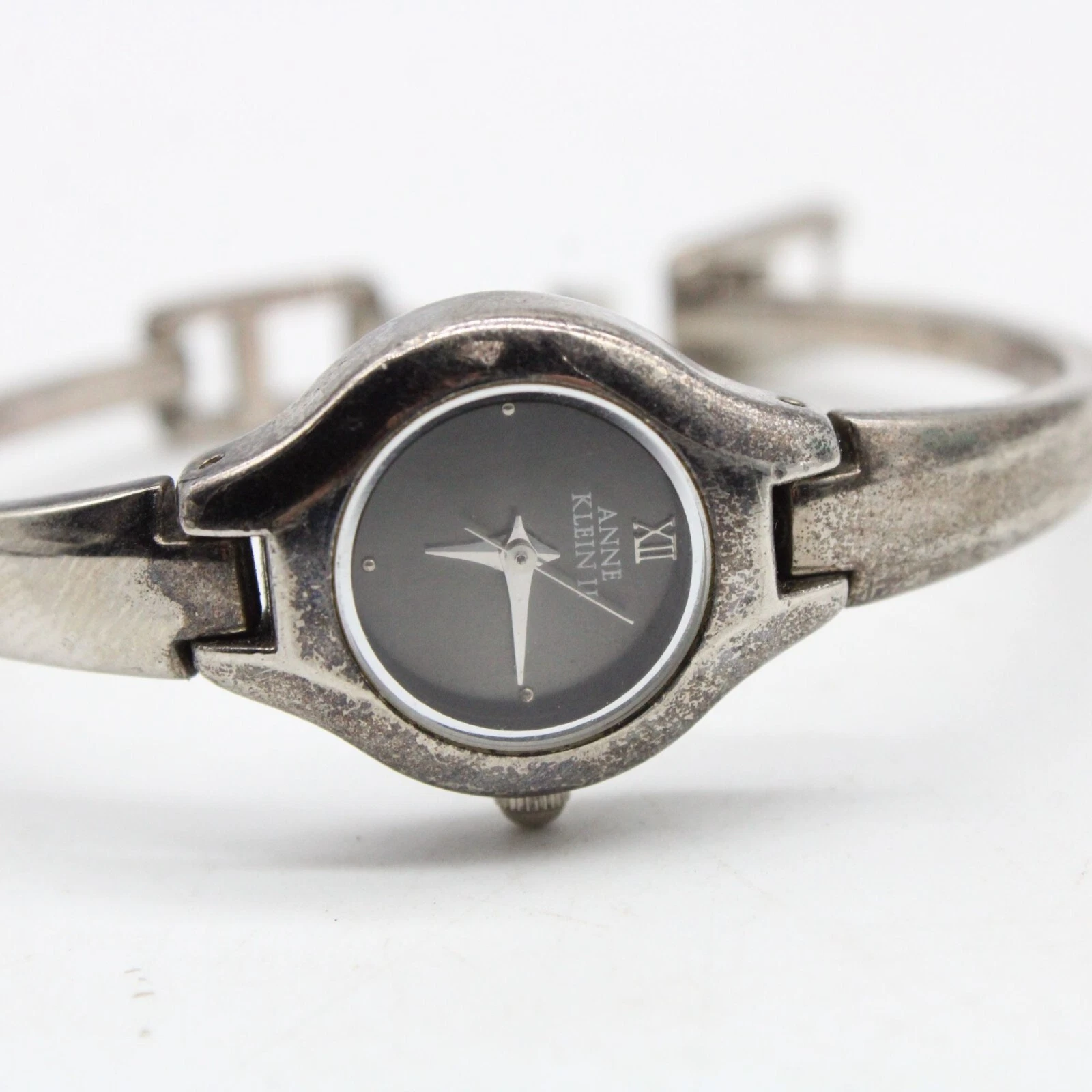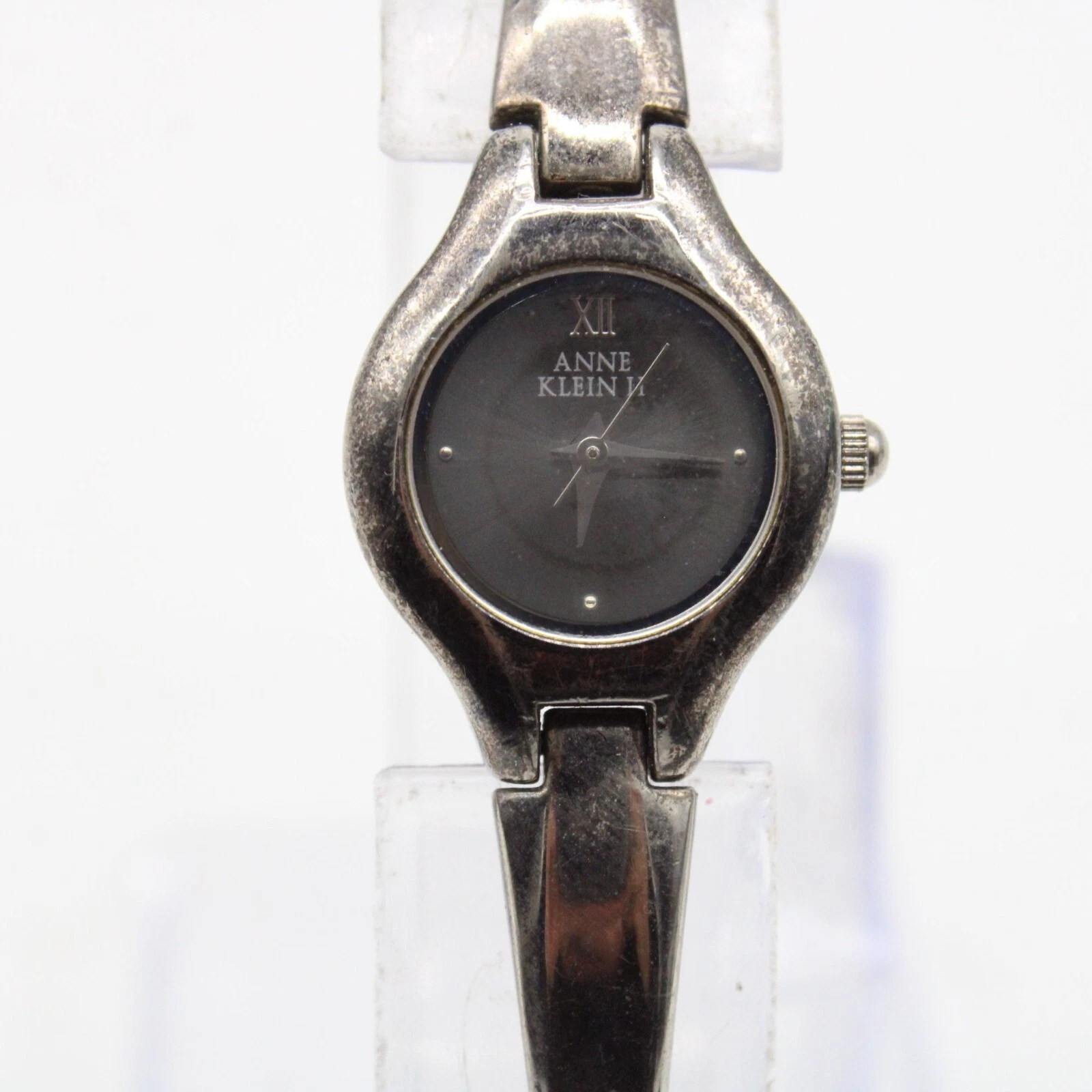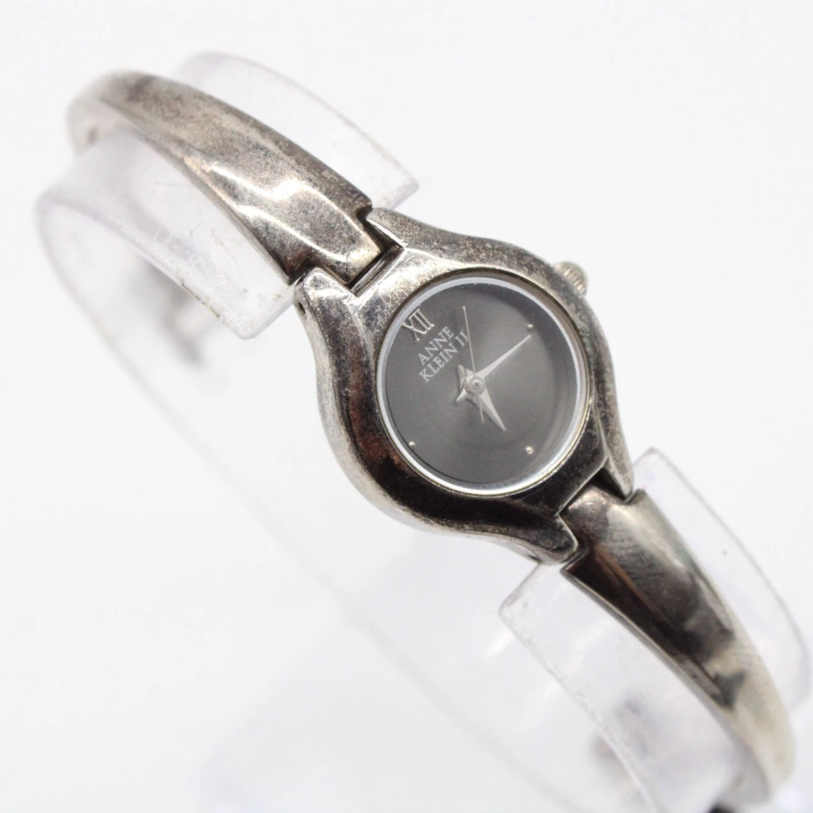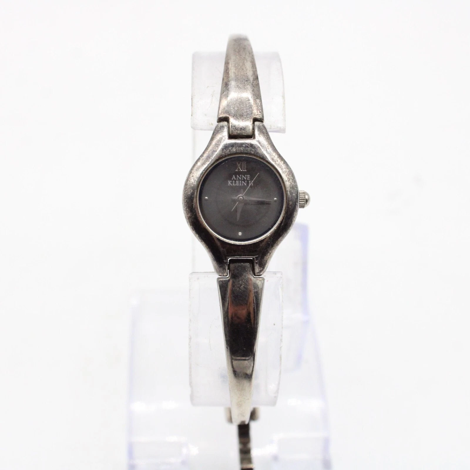 Vintage Anne Klein II Watch Womens Silver Tone Steel Classic Round Black Dial