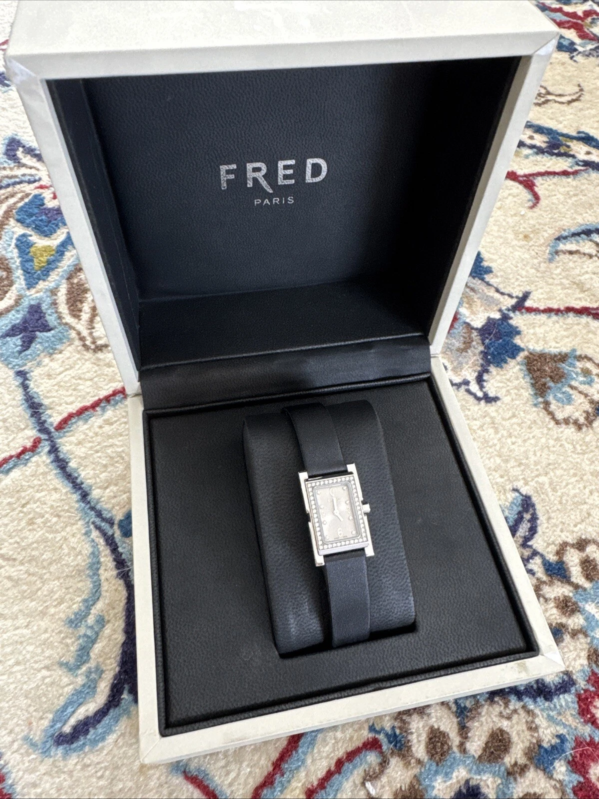 FRED Paris Steel Watch, Baby 36 Full Pavée – Diamond-Set Rectangular Bezel