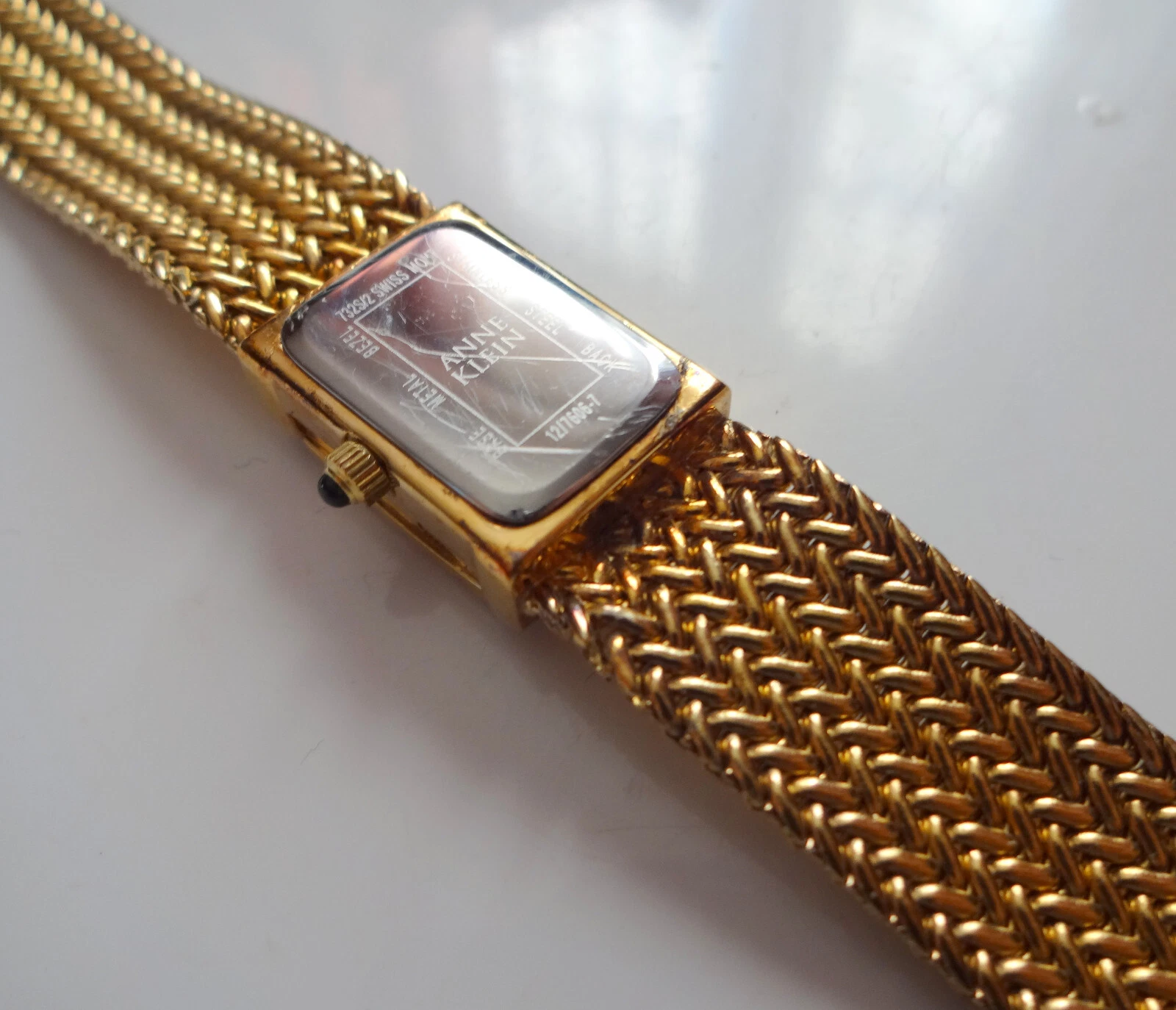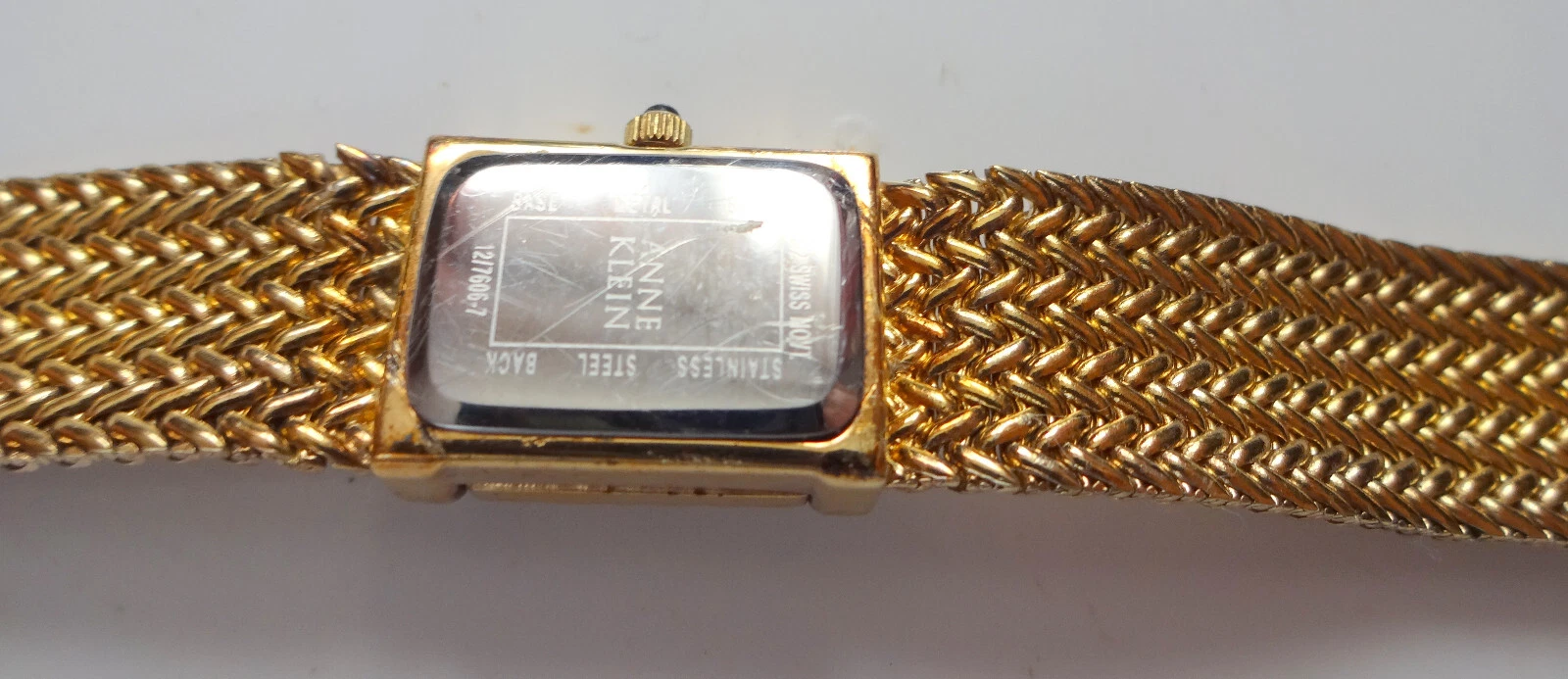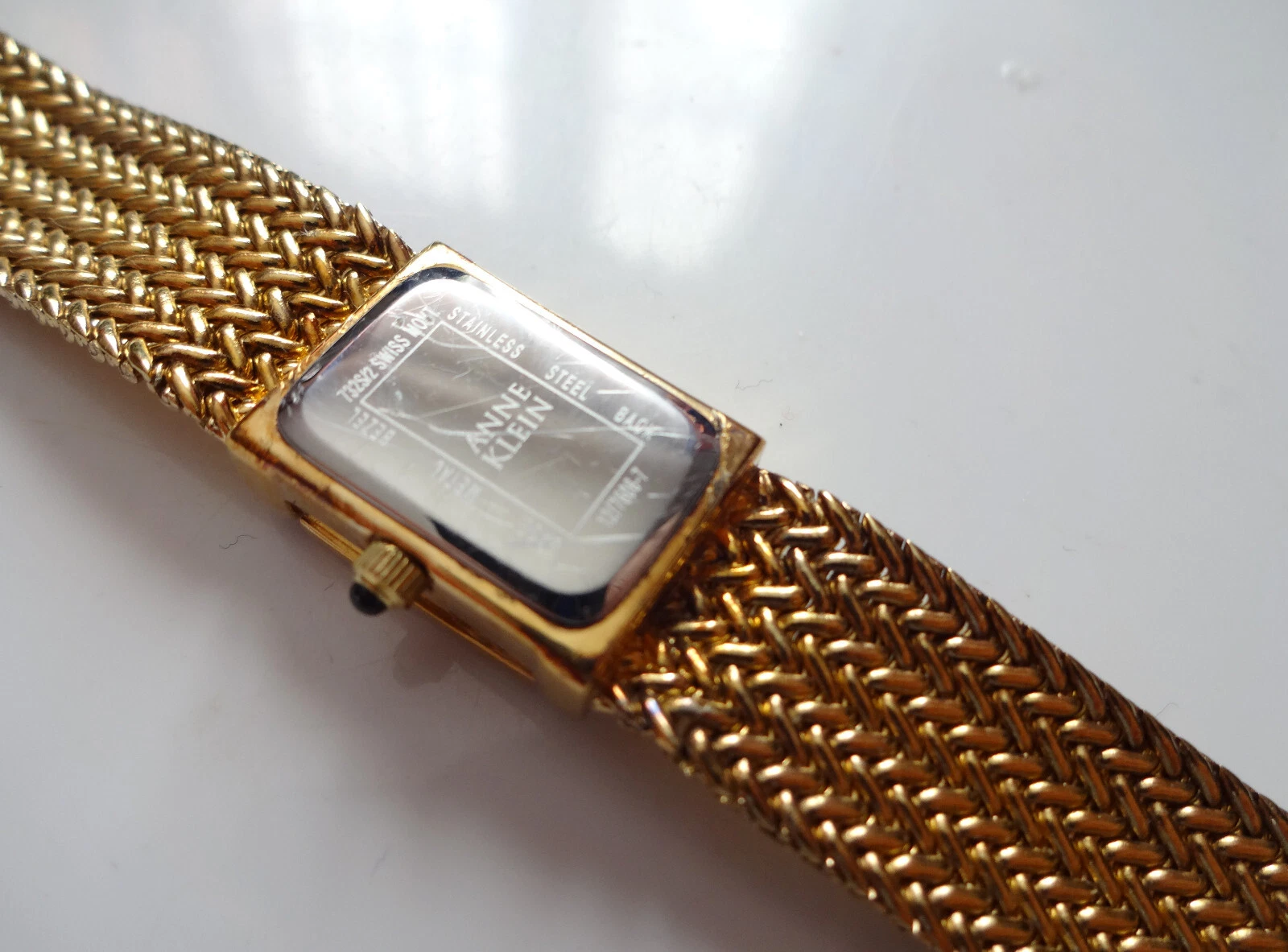 Anne Klein Diamond Swiss Watch Gold Plated Mesh Bracelet Hiden Face