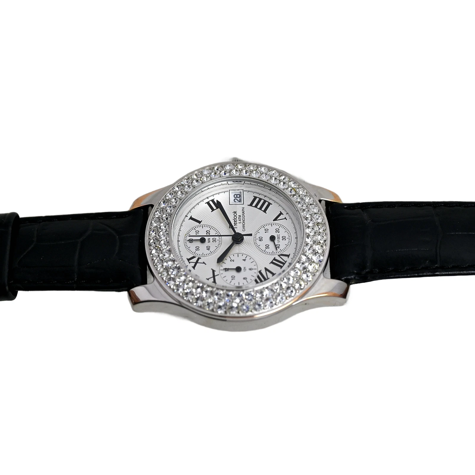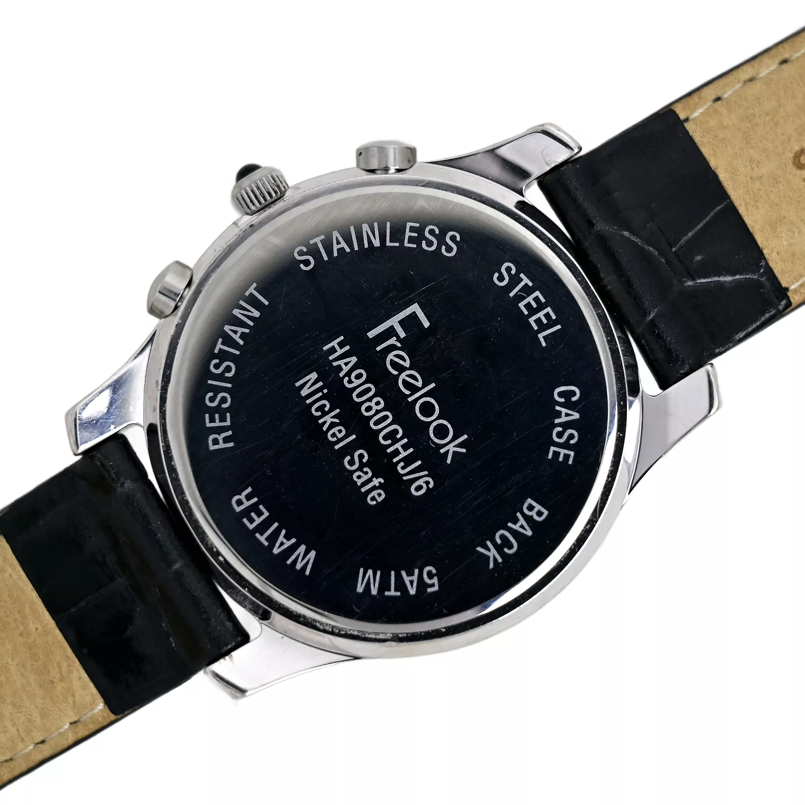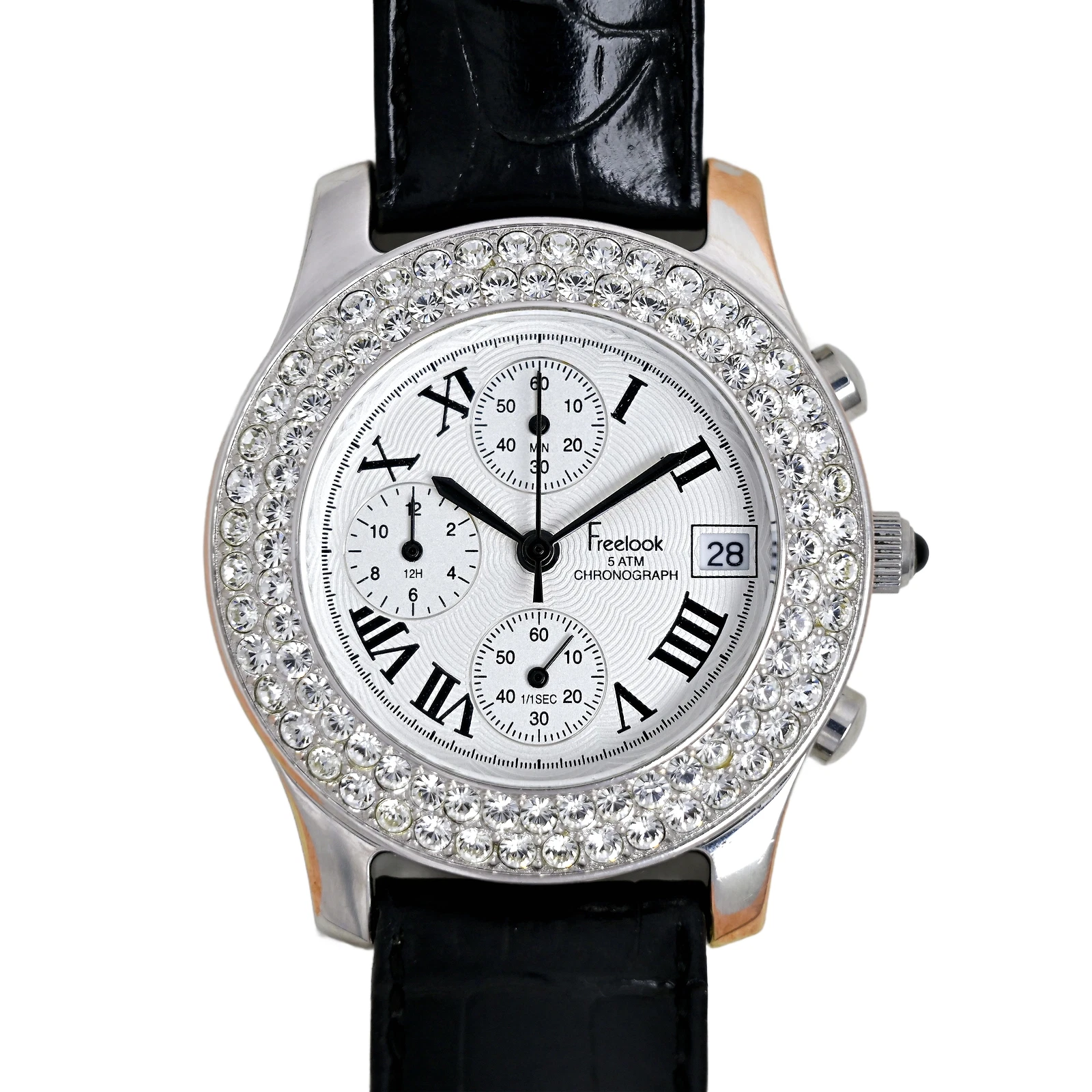 Freelook Chronograph Diamond Bezel 36mm Wrist Watch Genuine Black Leather