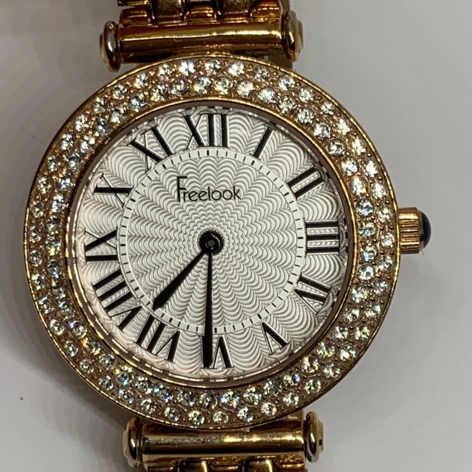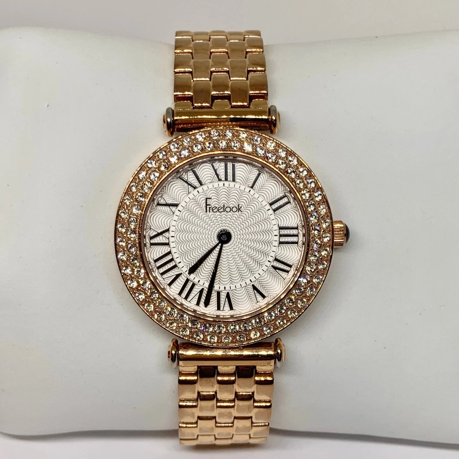 Freelook rose gold tone rhinestones women’s quartz analog watch 36mm running