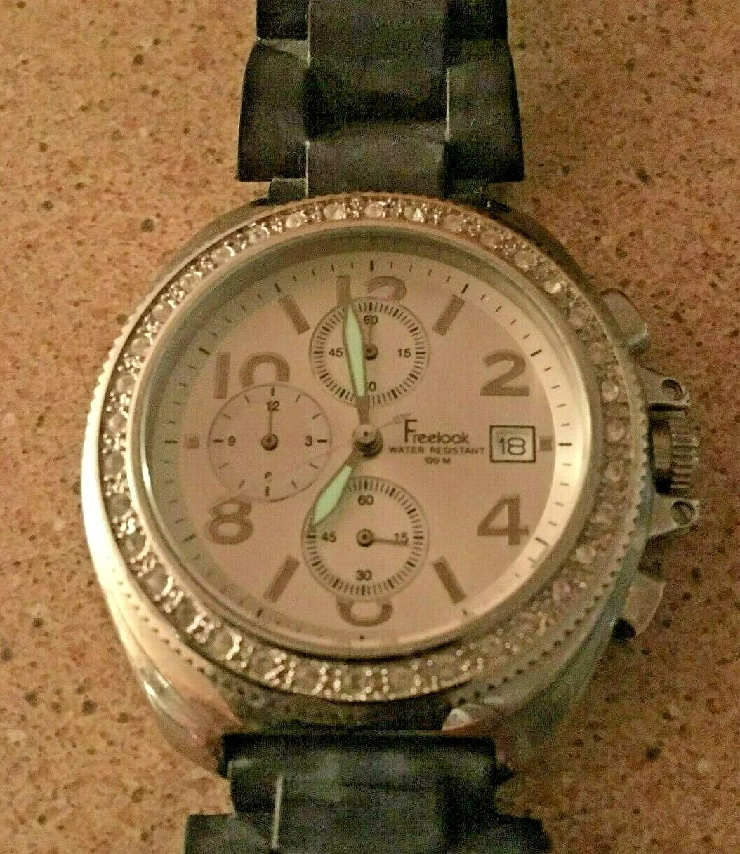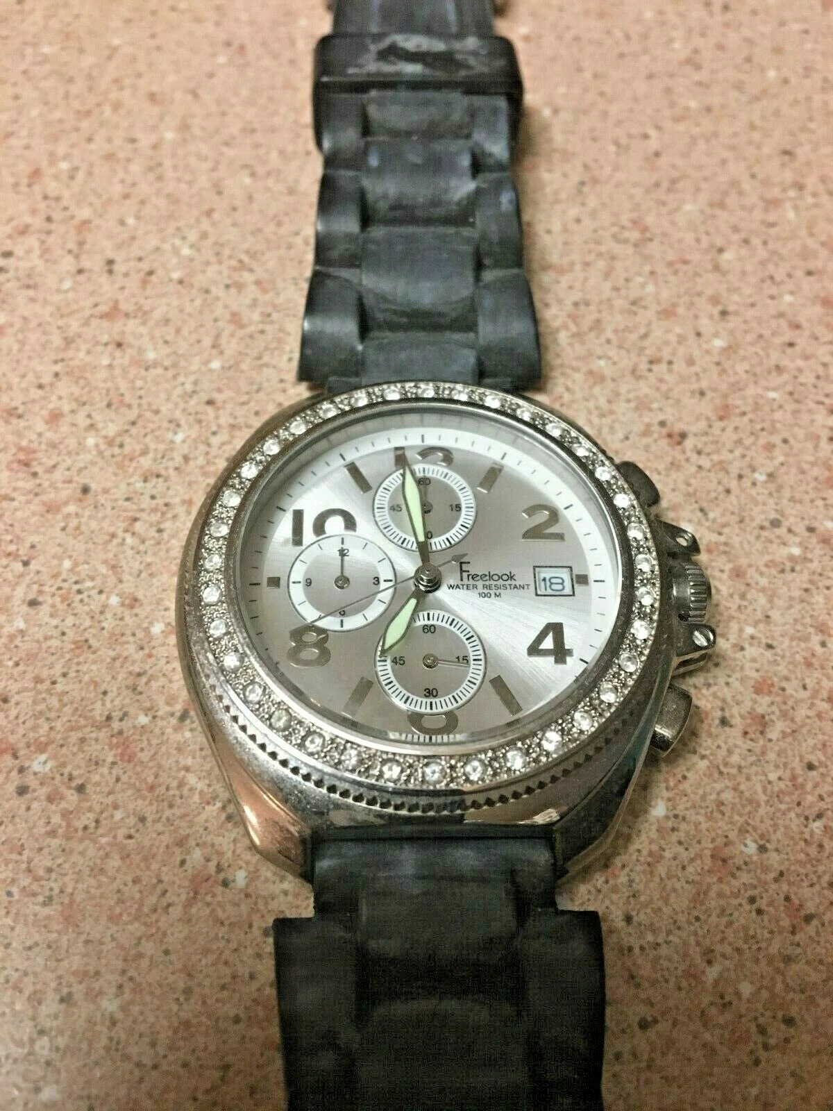 VINTAGE FREELOOK WATCH HA1137-4 AQUAMARINA STAINLESS W/ WHITE DIAL NEEDS BATTERY