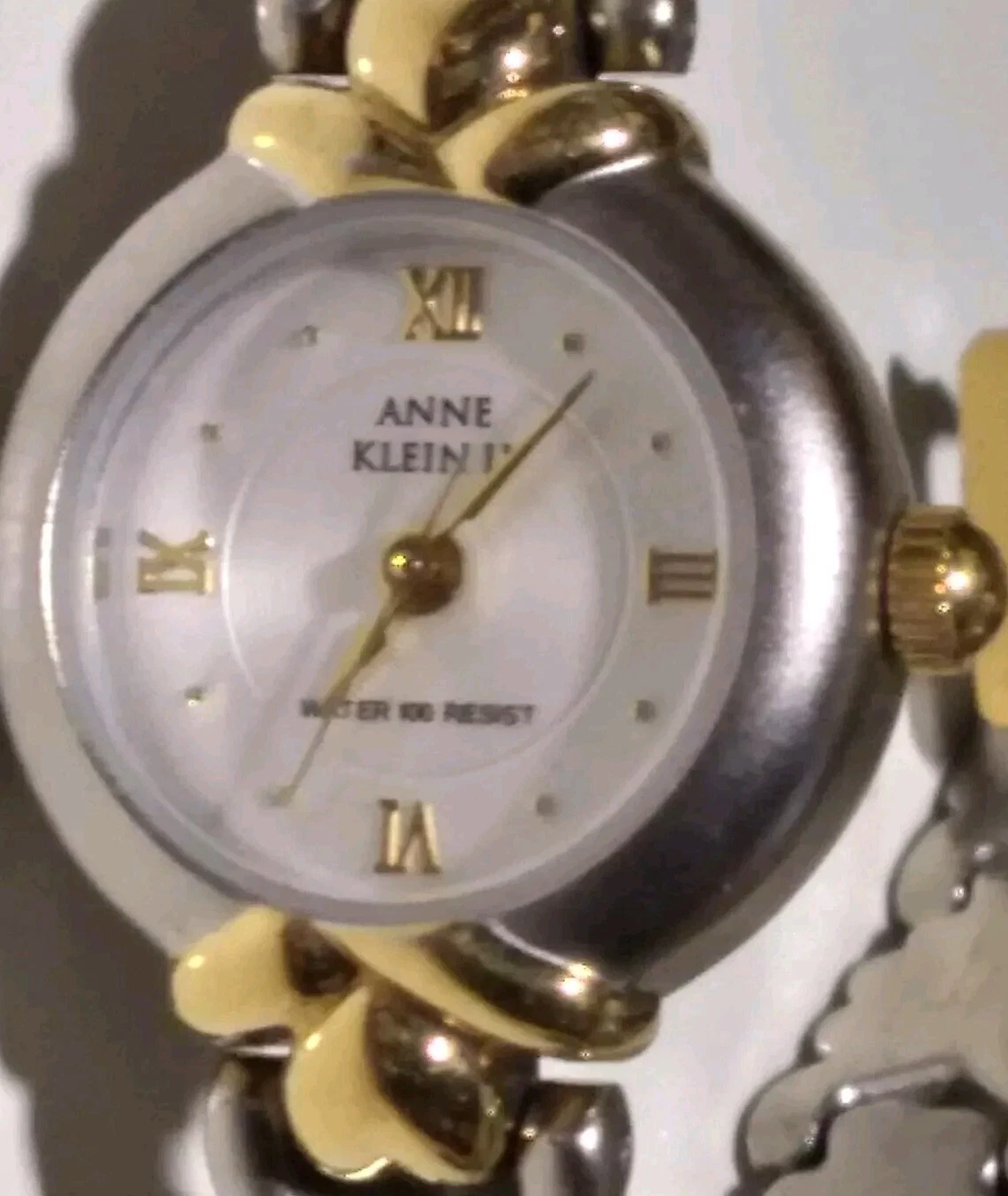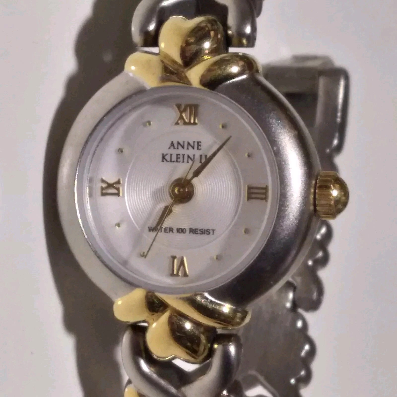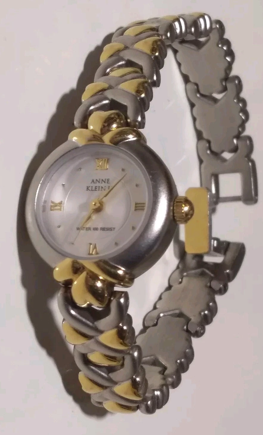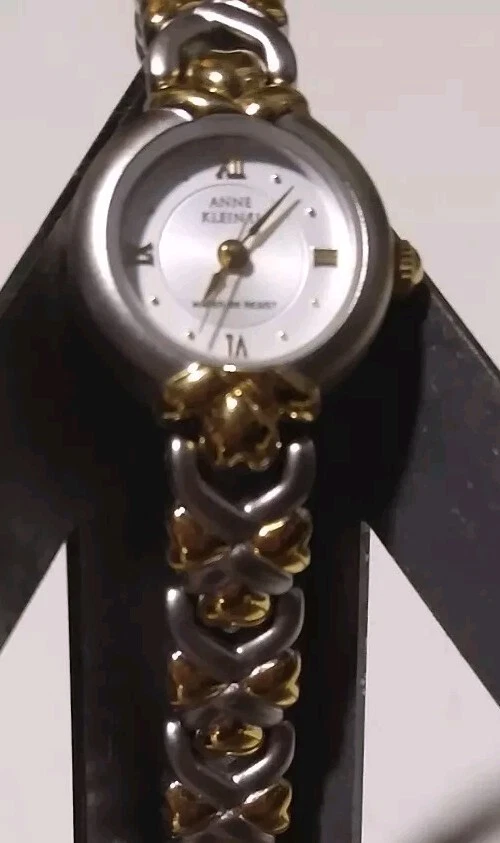 ANNE KLEIN II Luxe Womens Love And Hugs 2 Tone Hearts And Criss Cross Link Watch