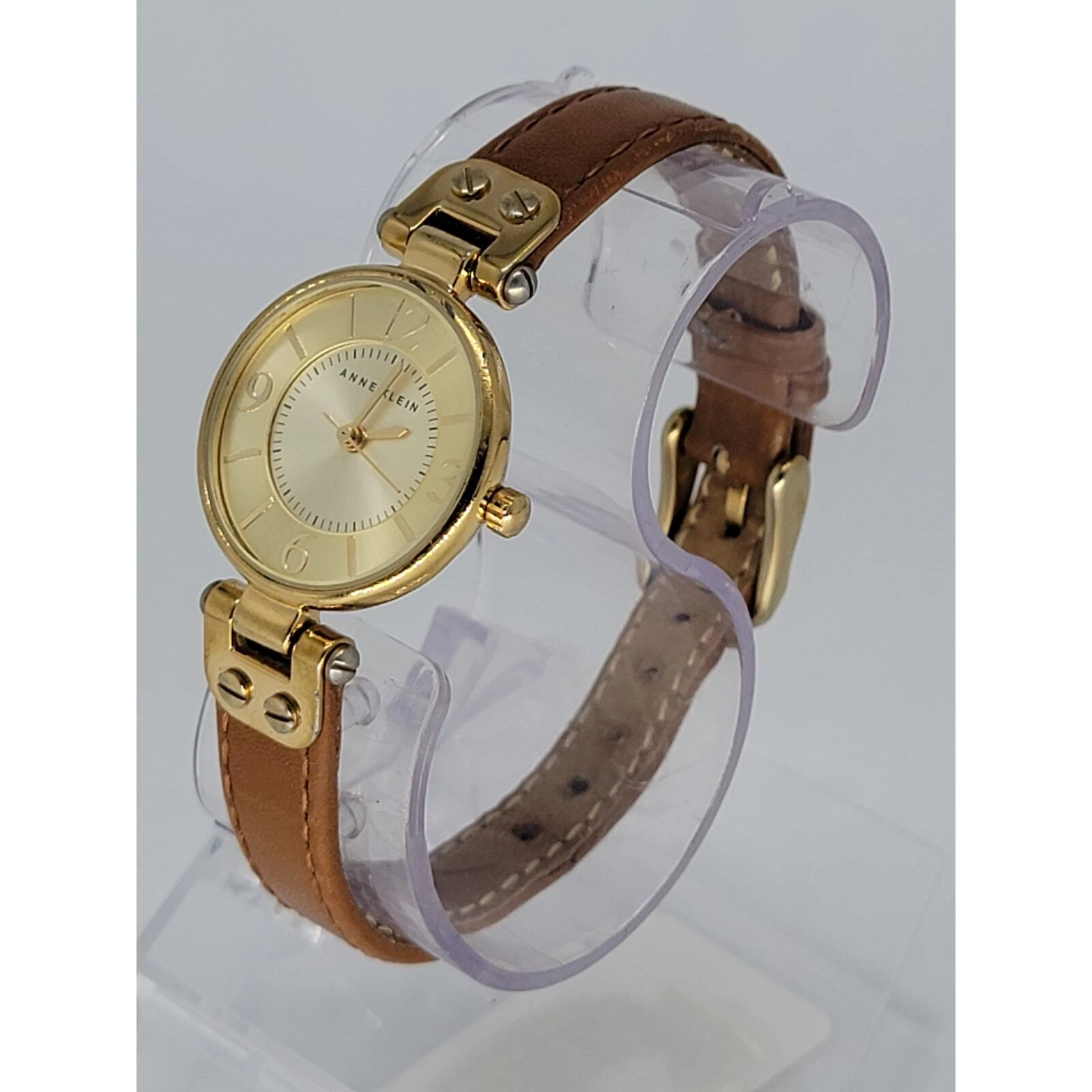Anne Klein Watch Womens Round Gold Toned Link Bracelet Band Dial Y121e