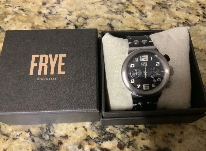 Frye Men's Moto Engineer Chronograph Black Leather Strap 48mm Watch