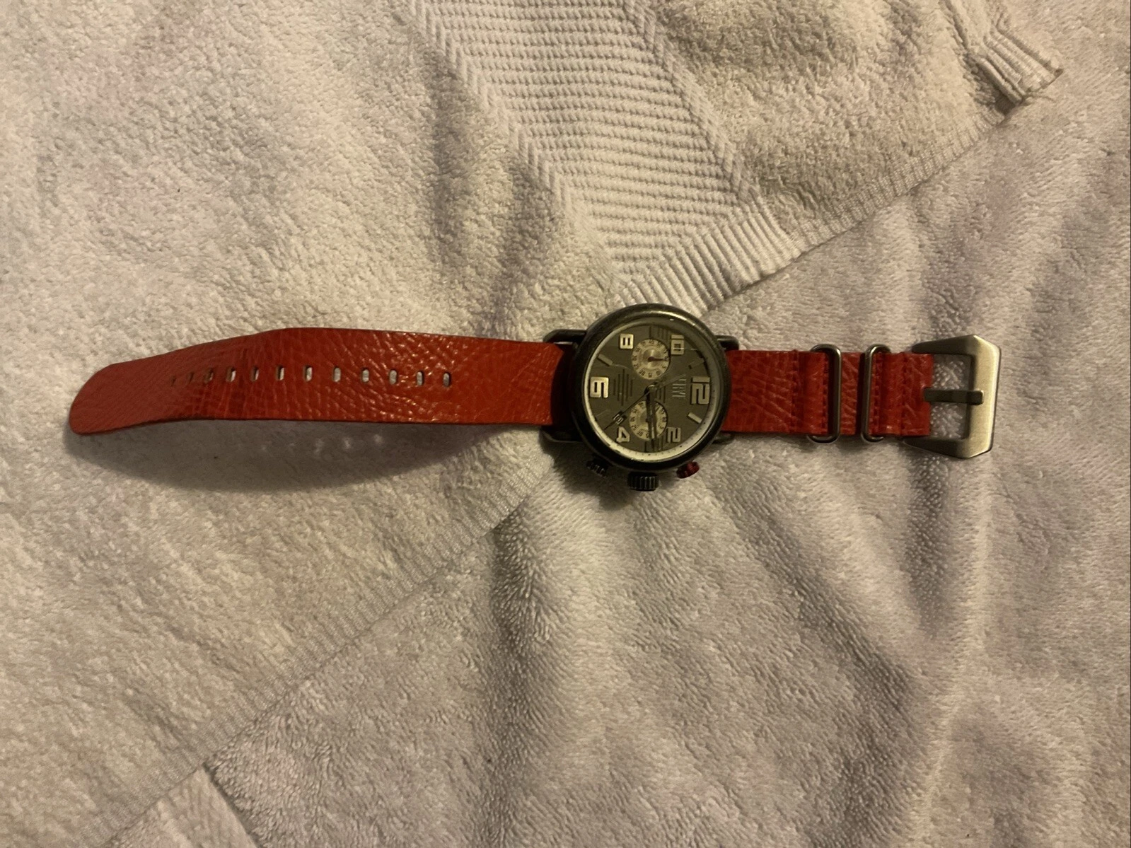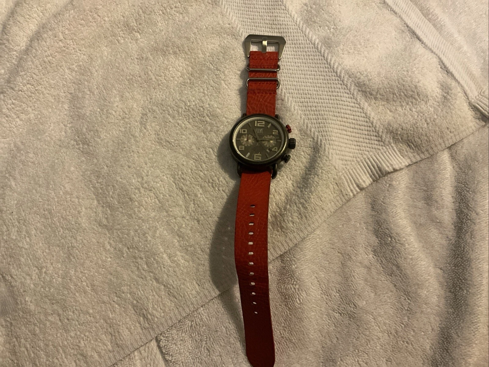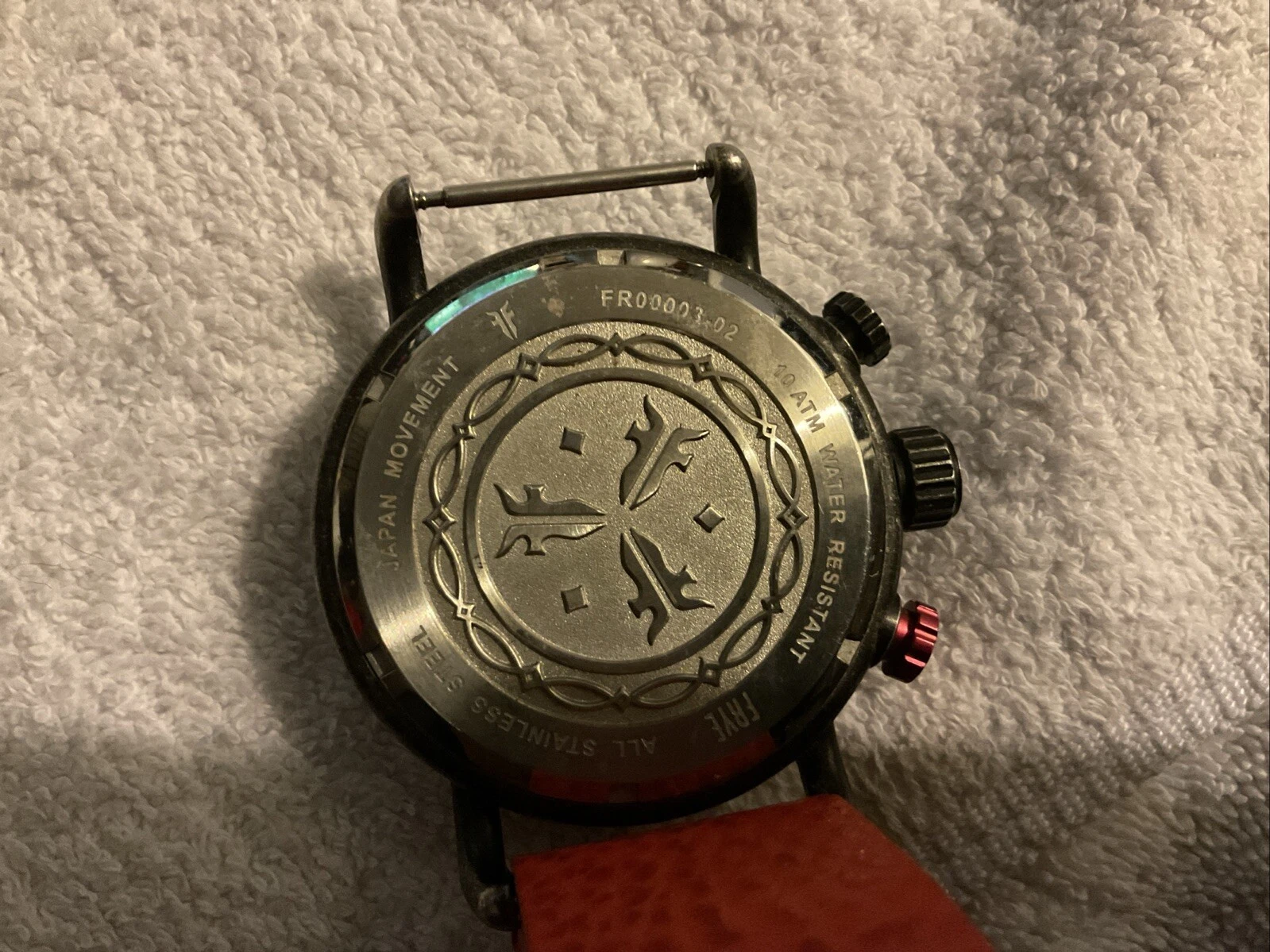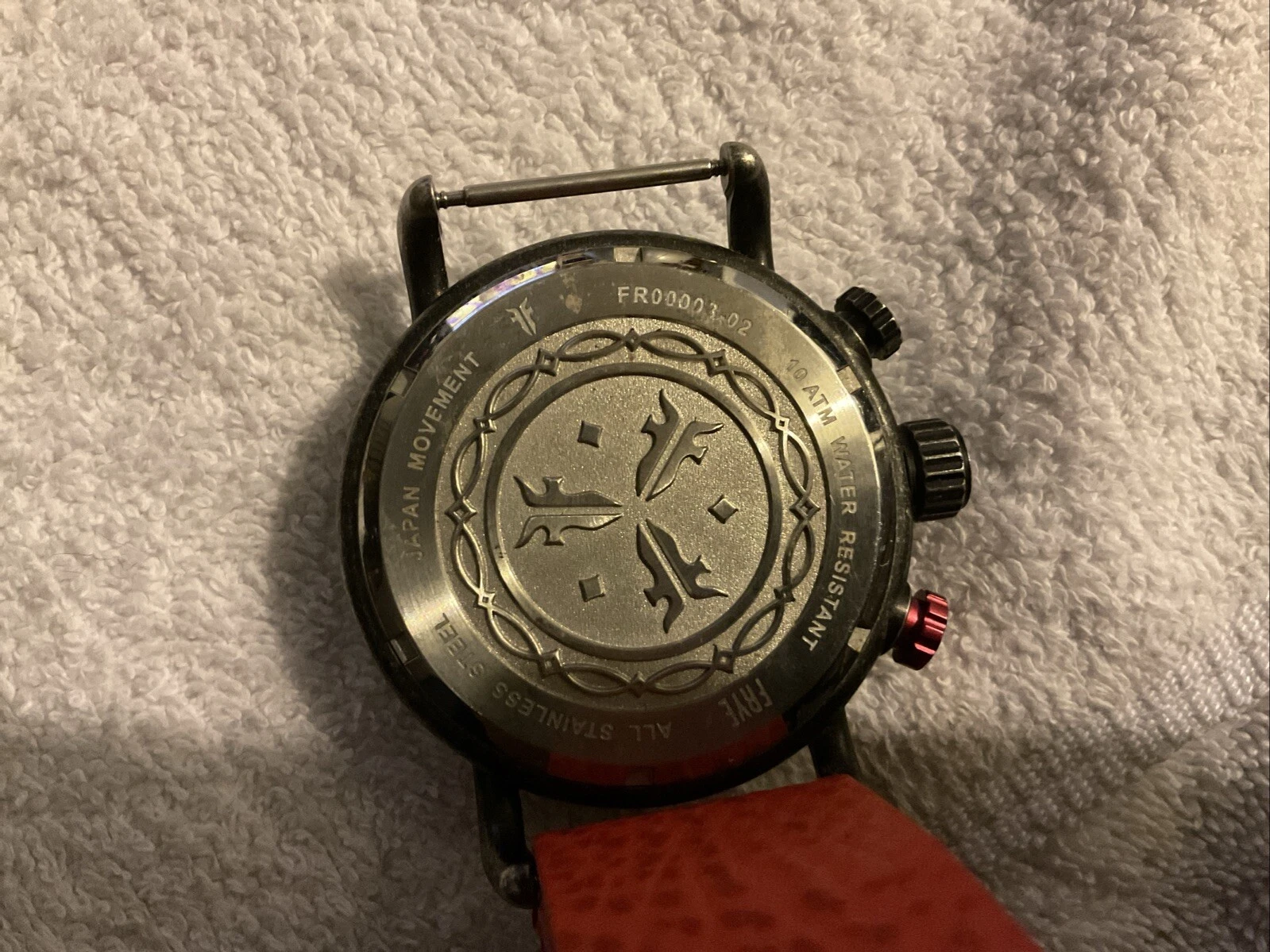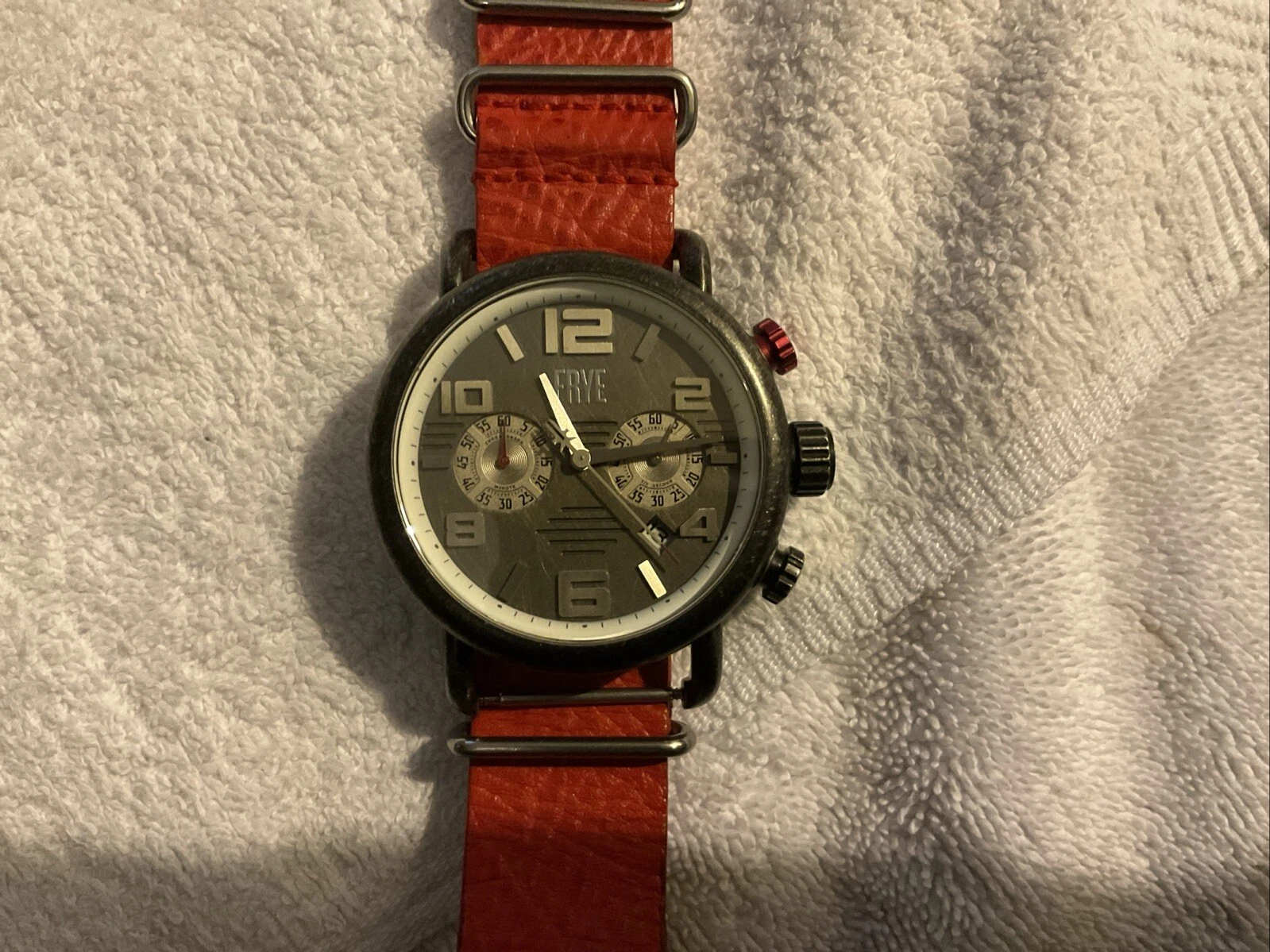 Frye Round Aged Double Men’s Layered Dial Watch Red Leather Strap FR0003-02