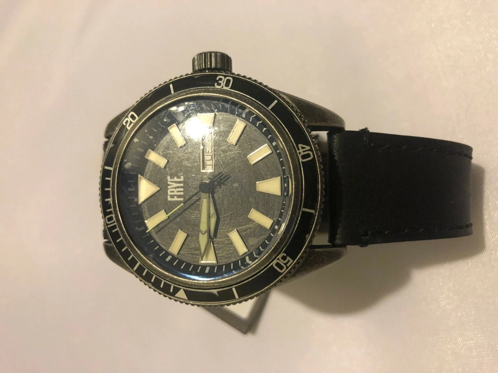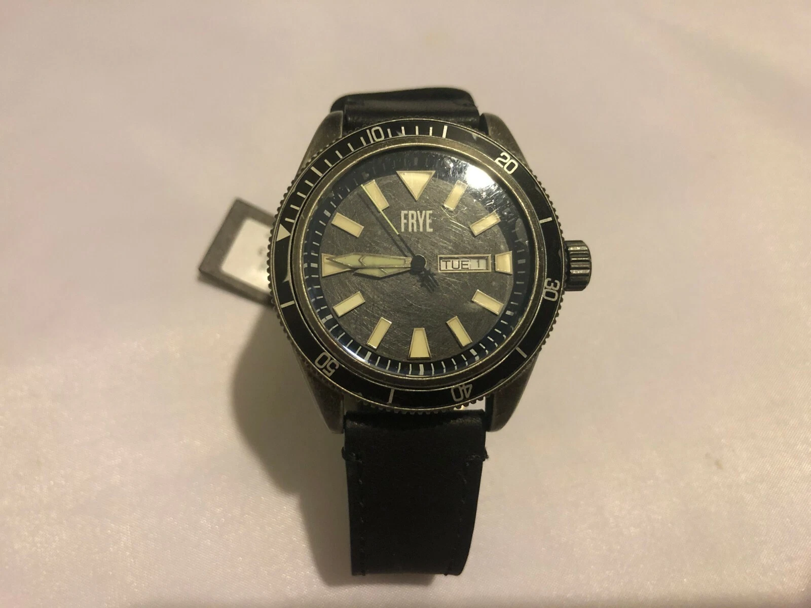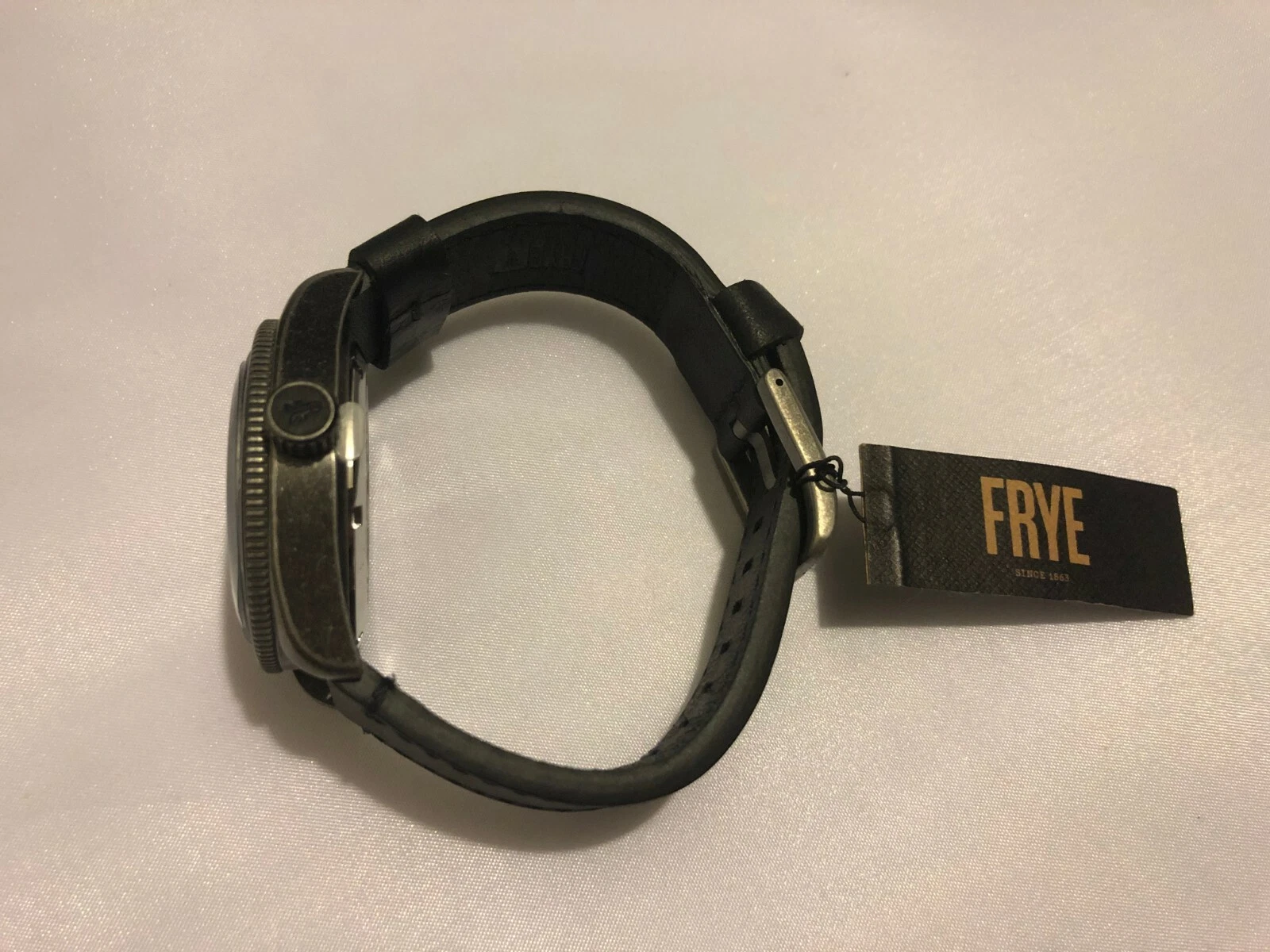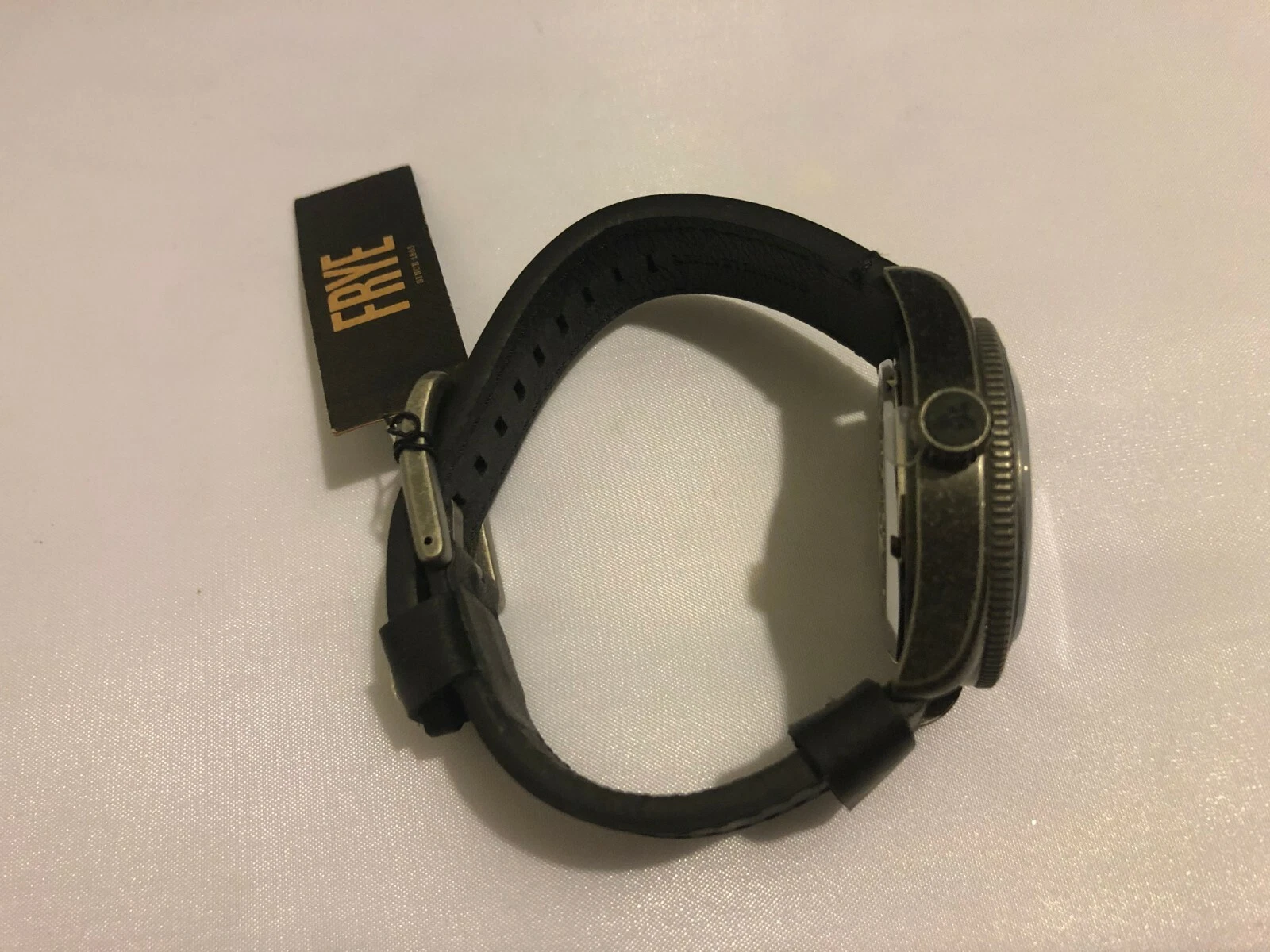 Frye Campus Watch With 44mm Distressed Face & Bezel Black Leather Band