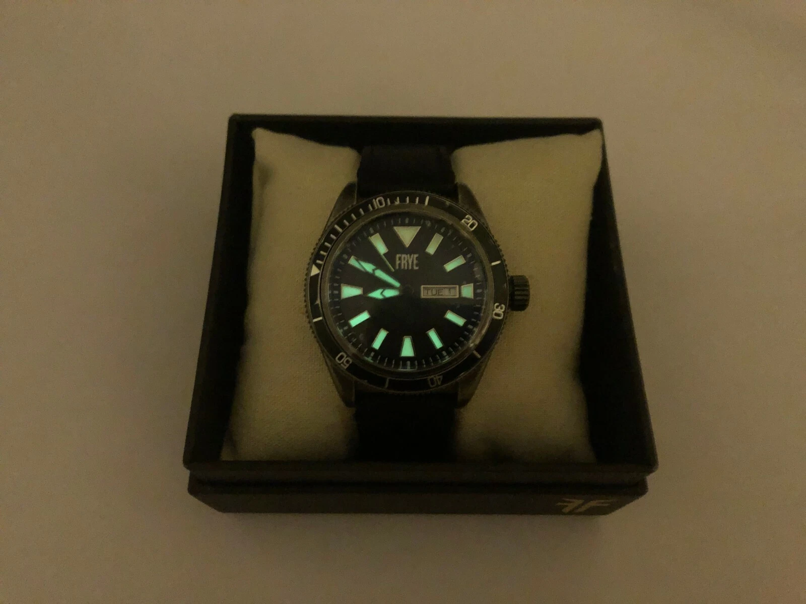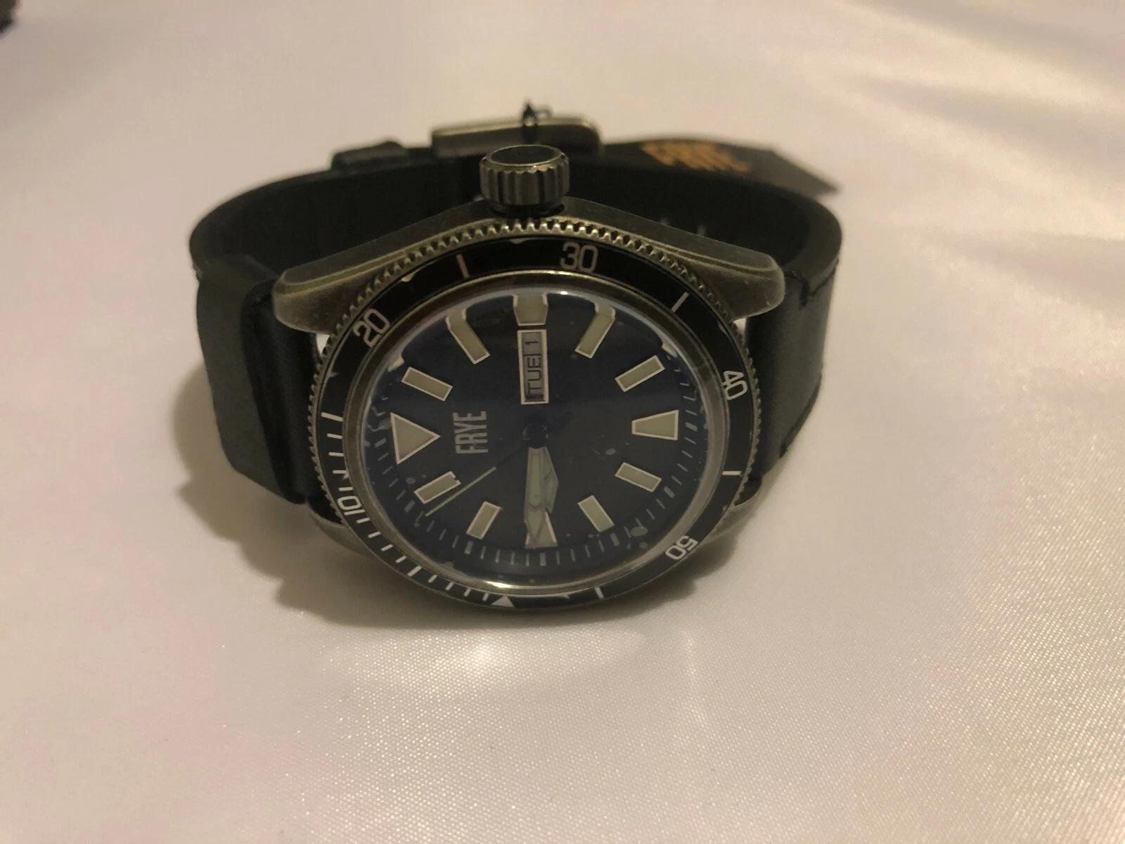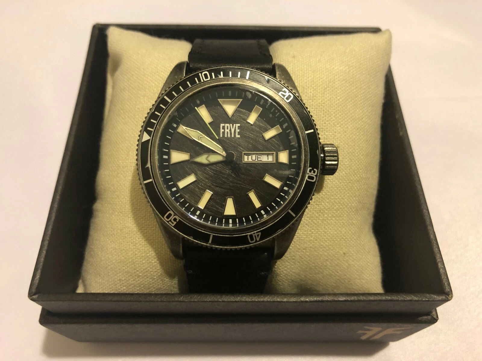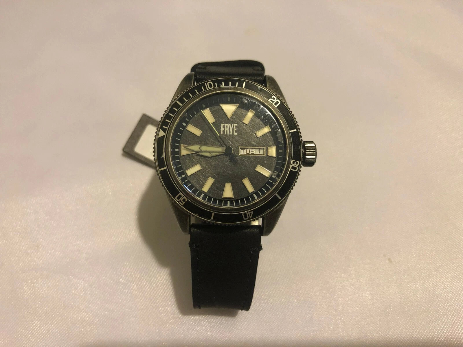 Frye Campus Watch With 44mm Distressed Face & Bezel Black Leather Band