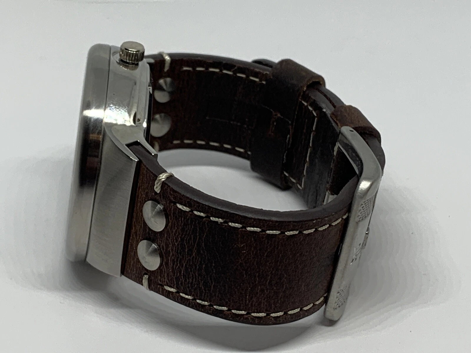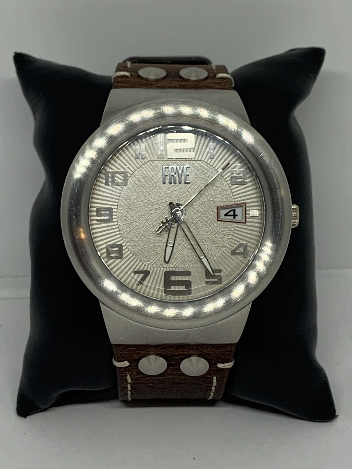 Frye Harness 46mm Cream Hydraulic Dial Brown Leather Men's Watch Fr00004-02 SD