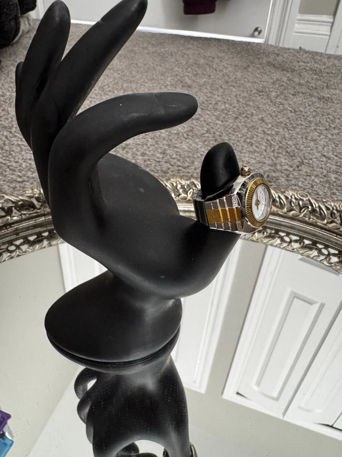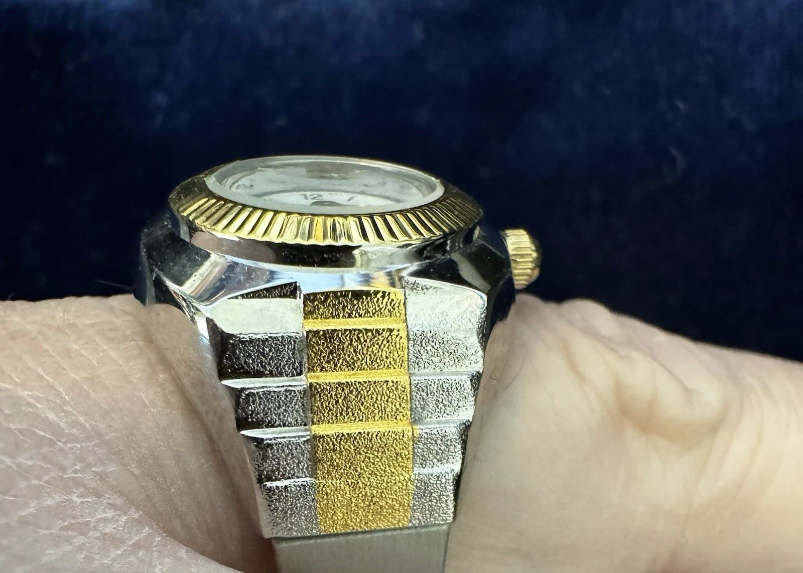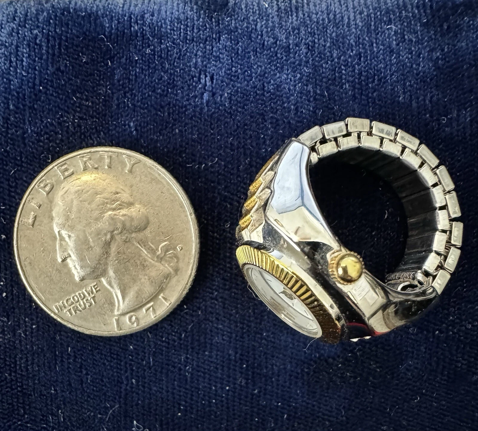 Futura Quartz Gold And Silver Tone Watch Ring Sporty Stretchy Band