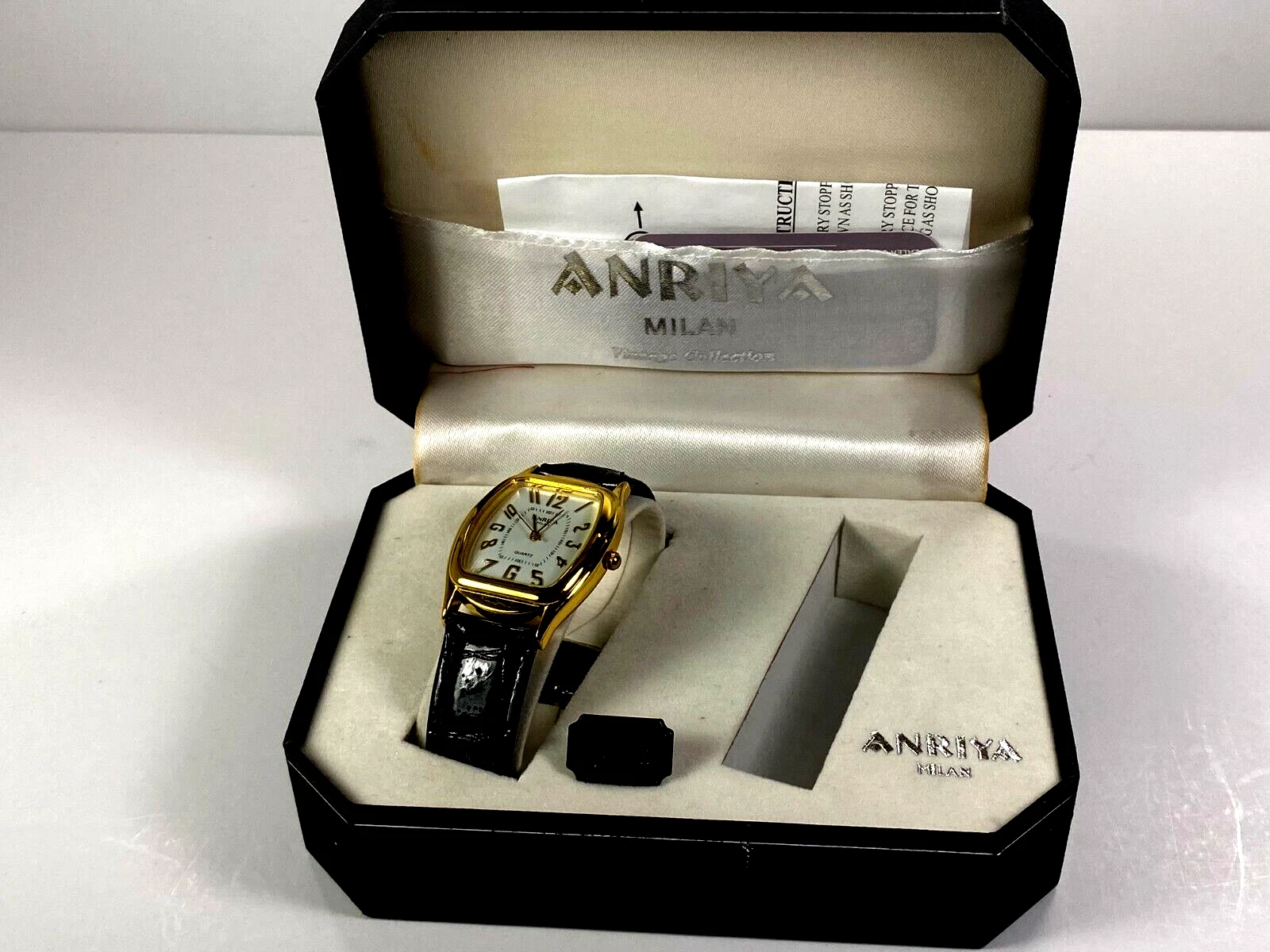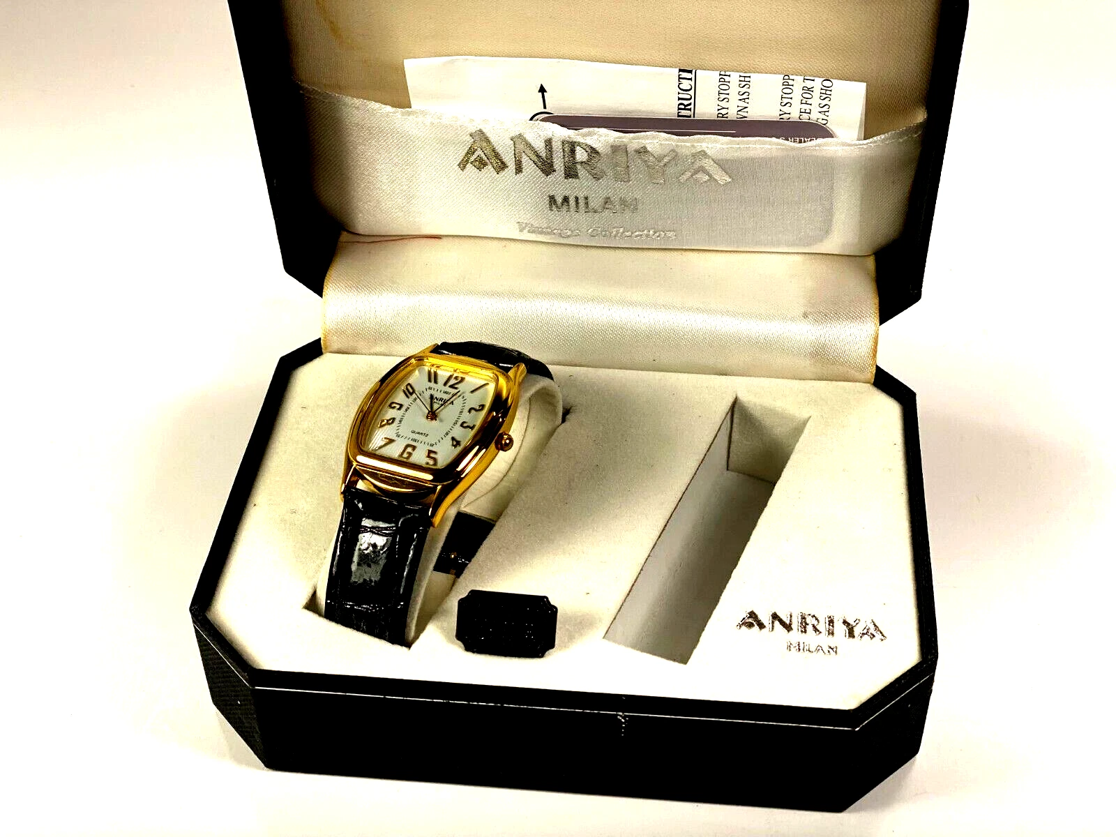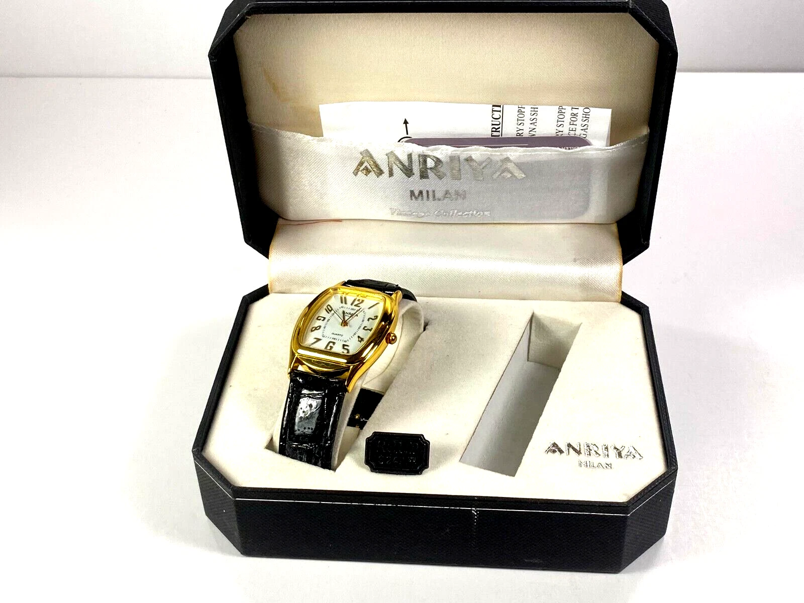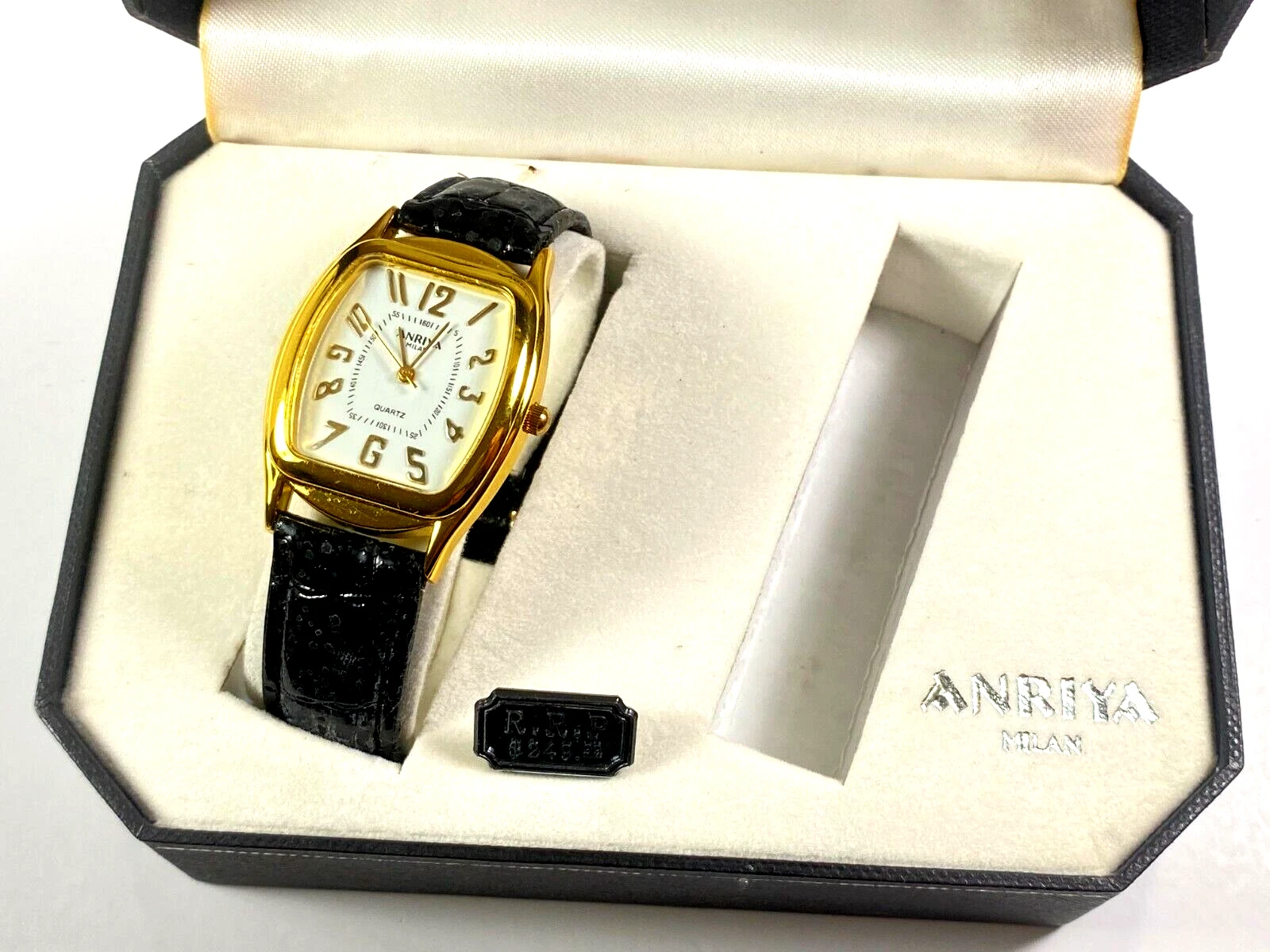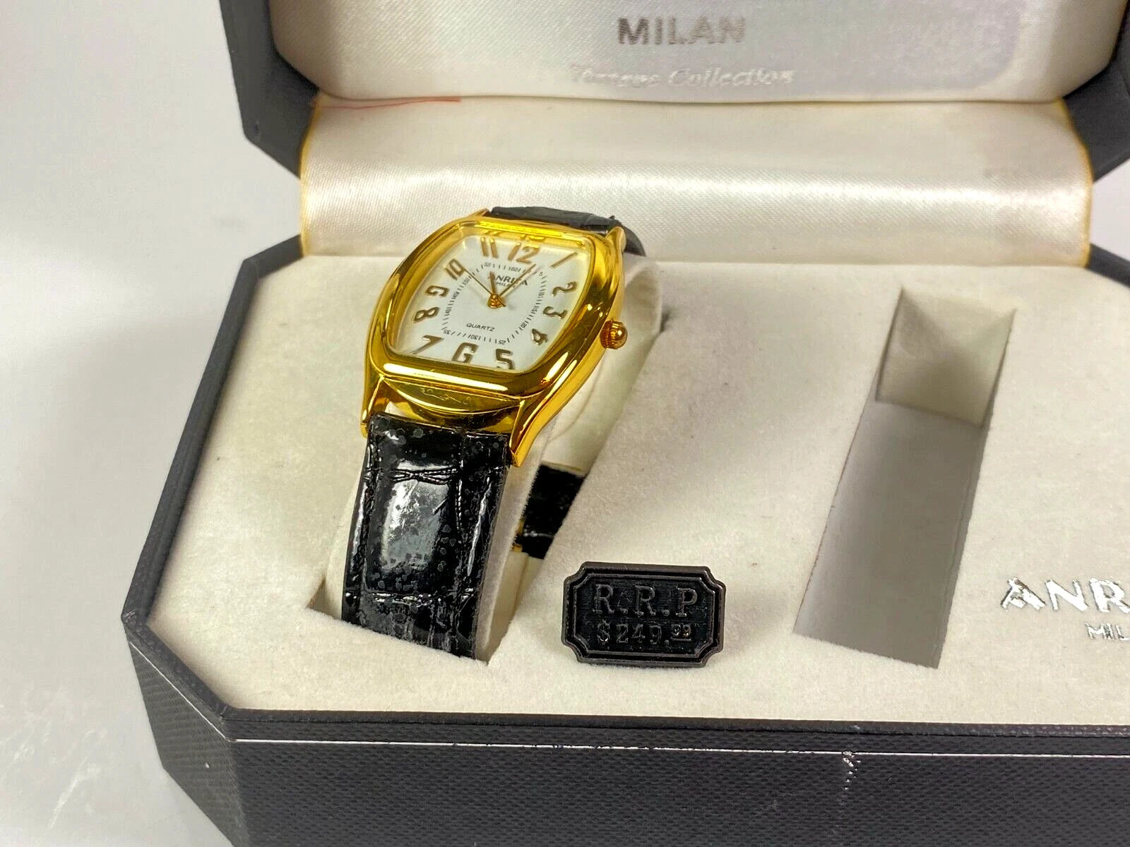 Anriya Milan Collection Men's Gold Wristwatch with Textured Black Band