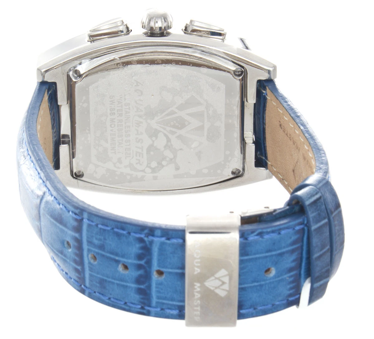 Aqua Master Men's Steel Case Leather Band Blue Diamond Watch W#35