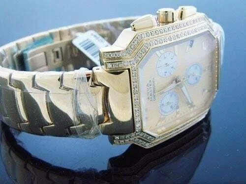 SWISS MOVT AQUA MASTER SS BAND 1.75CT BIG DIAMONDS YELLOW GOLD TONE CASE