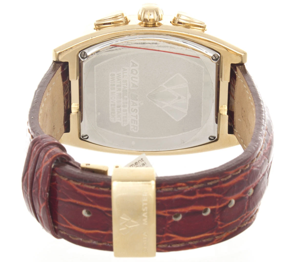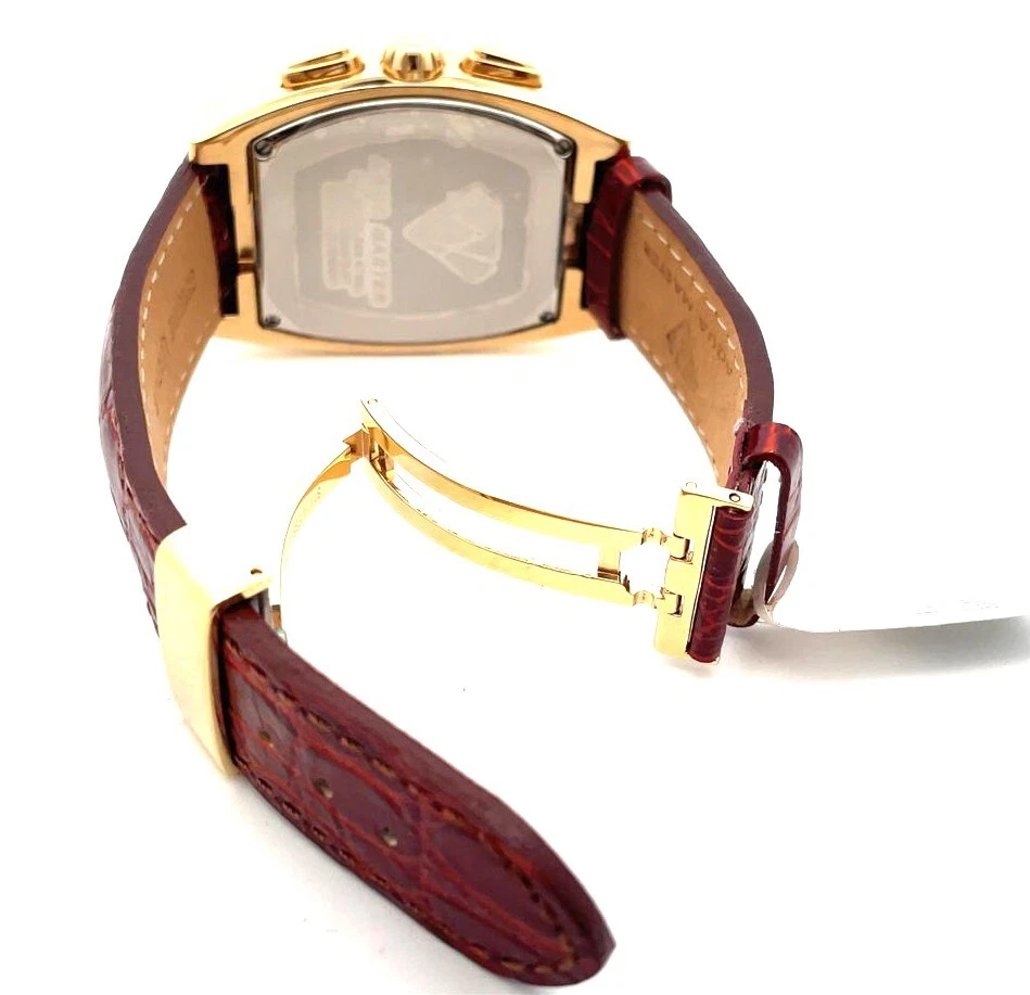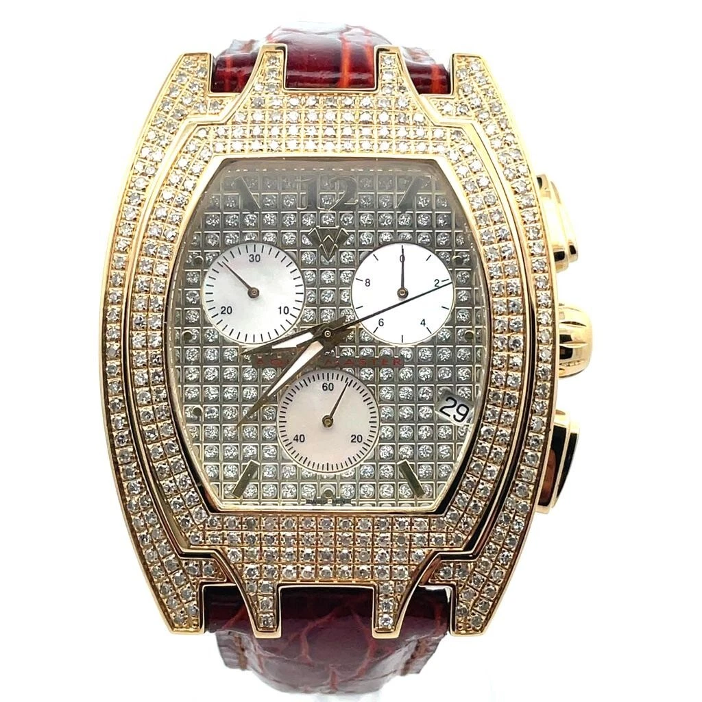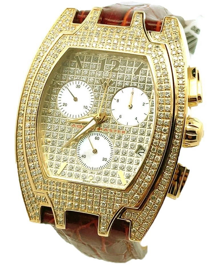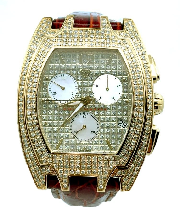 Aqua Master Men's Golden Dial Burgundy Leather Band 3.5ct Diamond Watch #W35