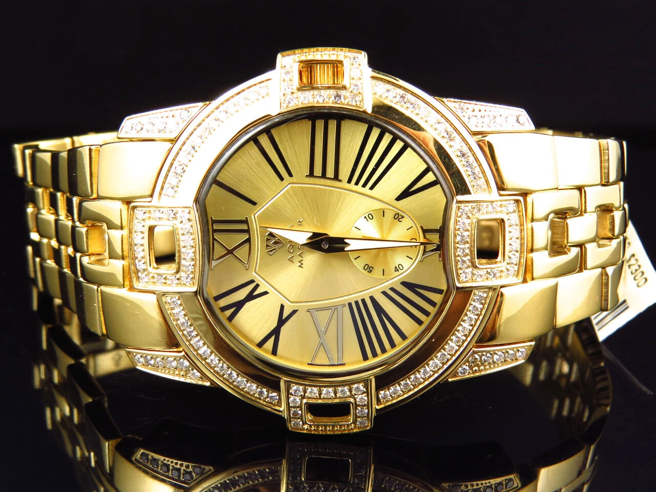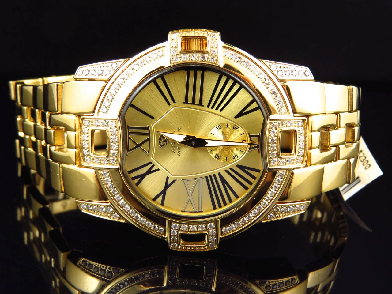 Aqua Master Joe Rodeo 43mm Swiss Gold Multi Link Diamond Watch W#349 1.75 Ct