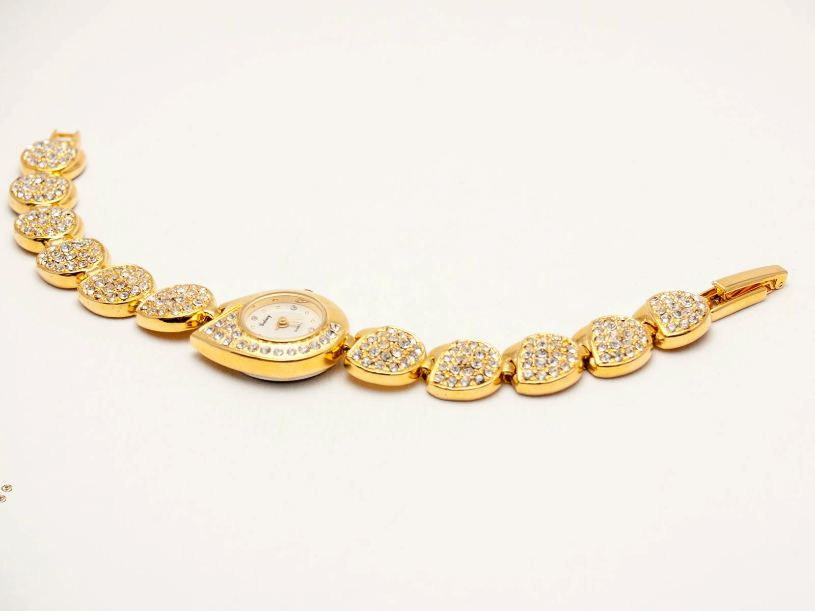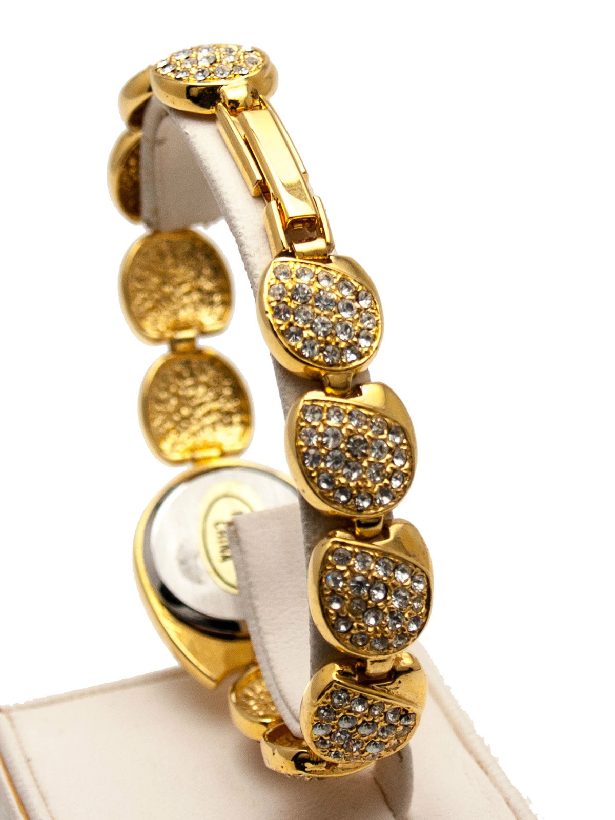 GALAXY: WOMEN'S GOLD FINISH FULL RHINESTONES ROUND CASE CONE LINKS ANALOGE WATCH